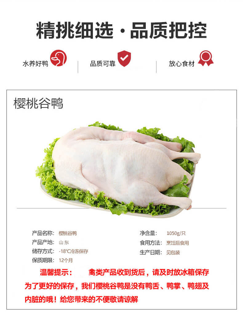 淘鲜拾光 水养樱桃谷鸭 烤鸭煲汤食材1050g*2