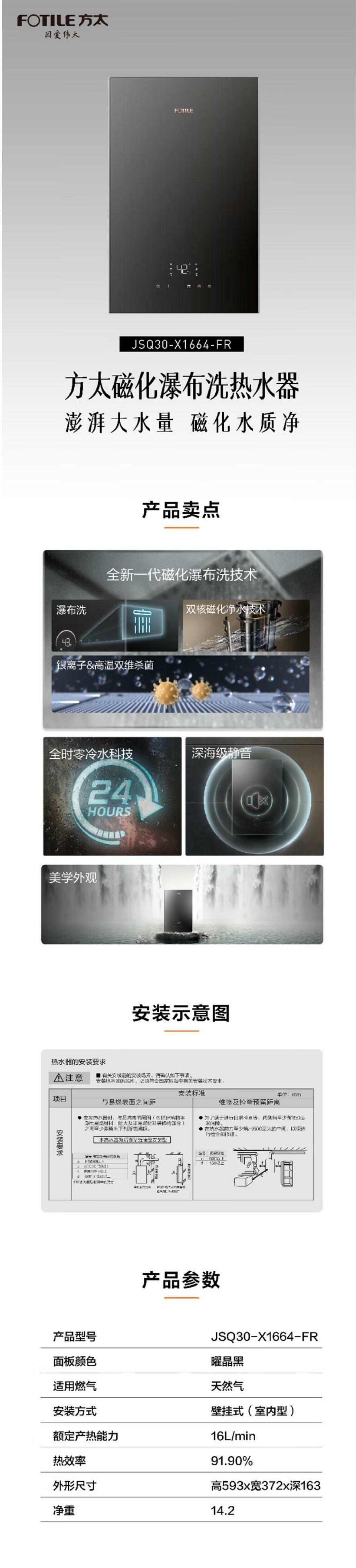 方太/燃气热水器/X1664/零冷水恒温家用大水量防冻16L磁化净水 燃气热水器