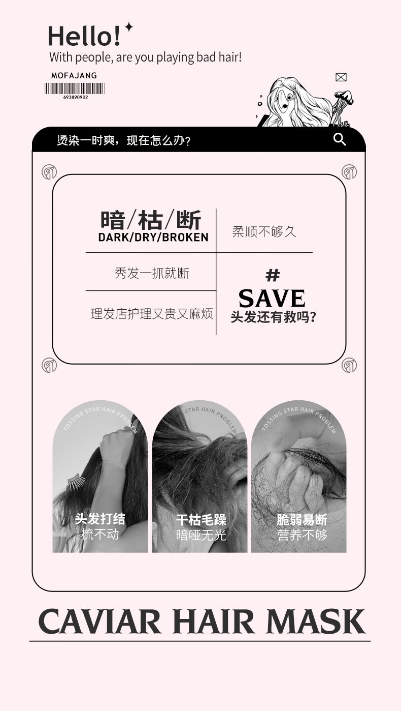 三个魔发匠鱼子酱发膜500ml免蒸修护干枯受损发质改善毛躁护发素 柔顺 鱼子酱发膜【工厂直发】