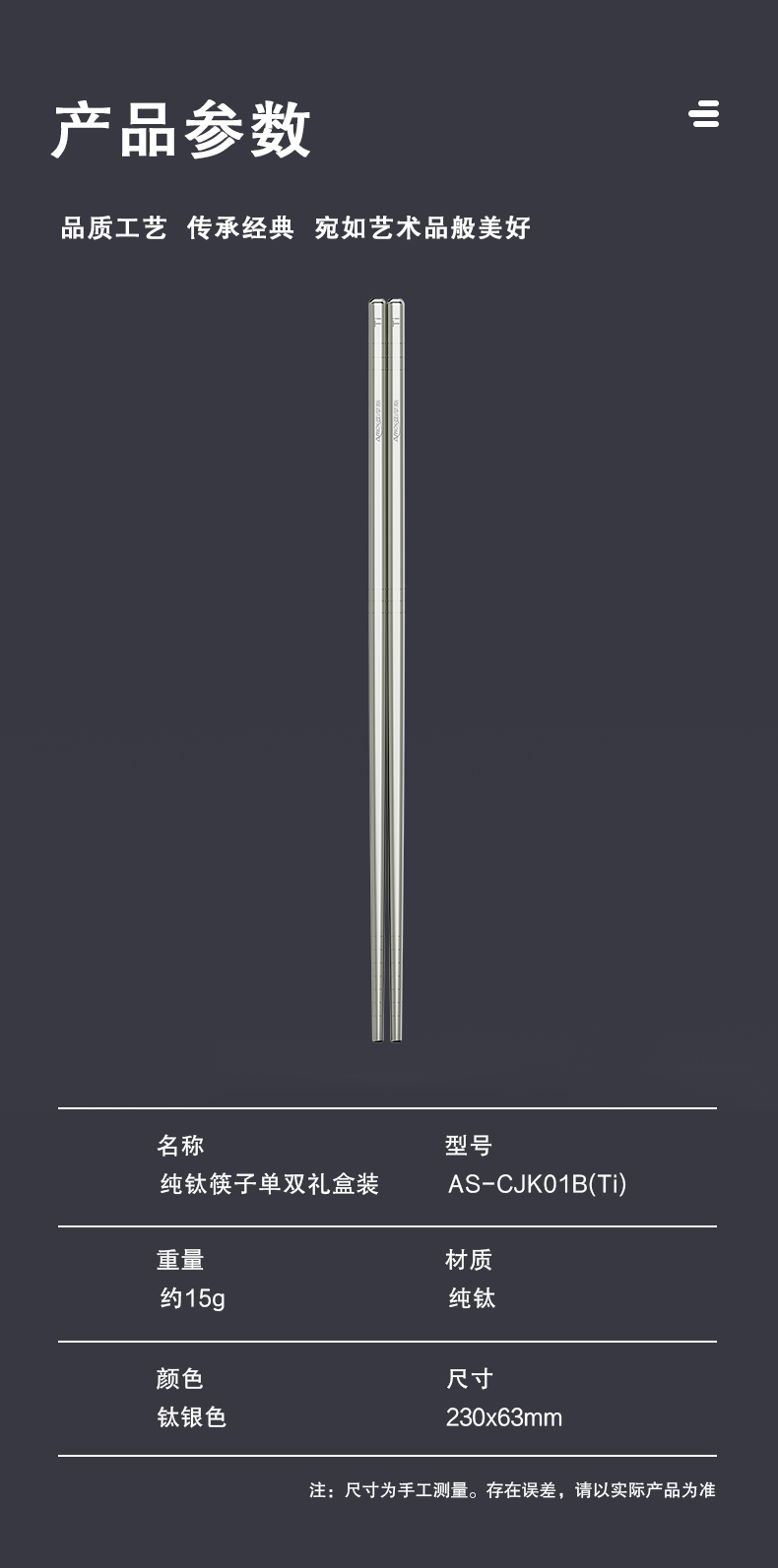 【轻重适中】亚摩斯纯钛筷子单双礼盒装