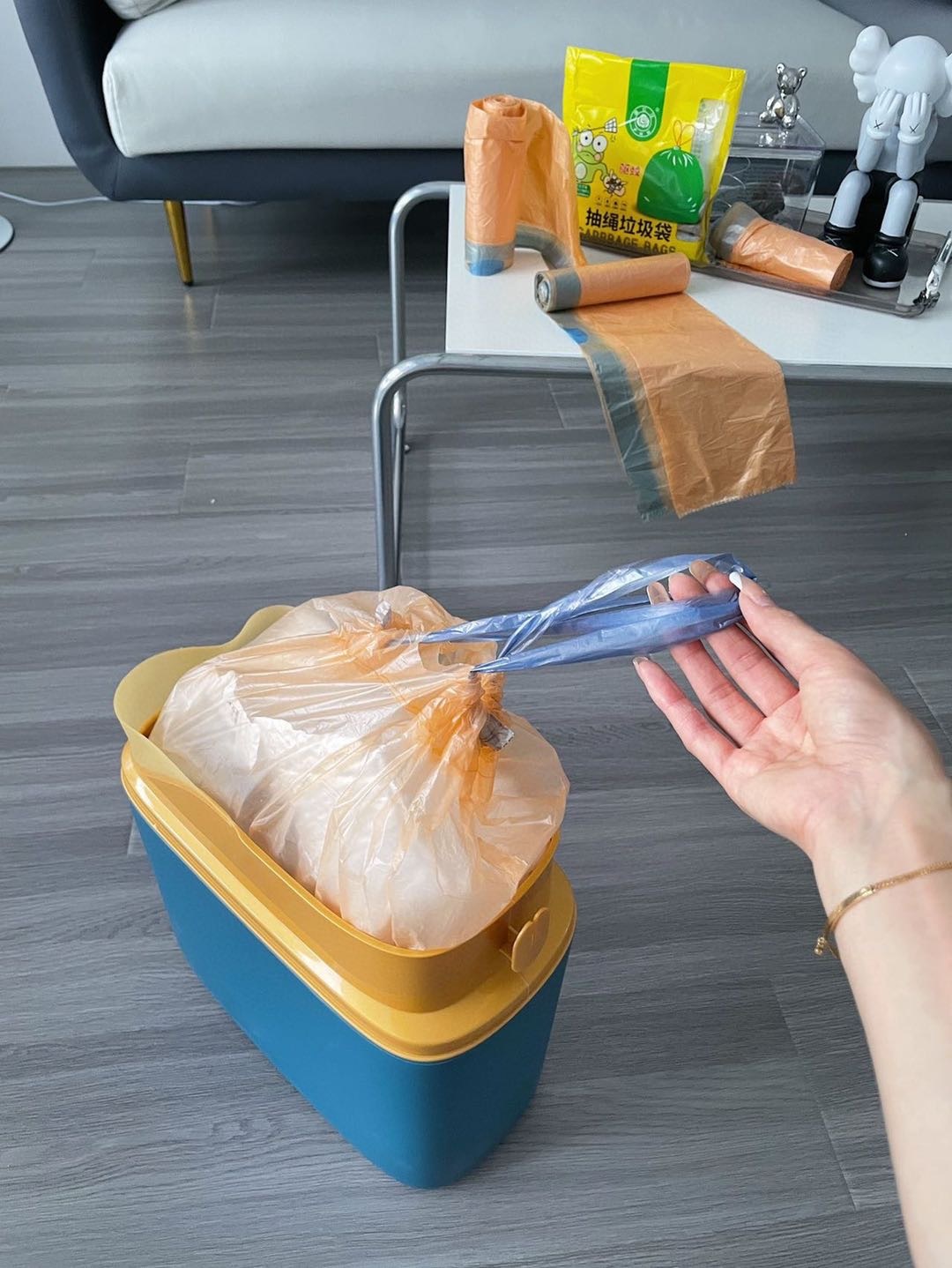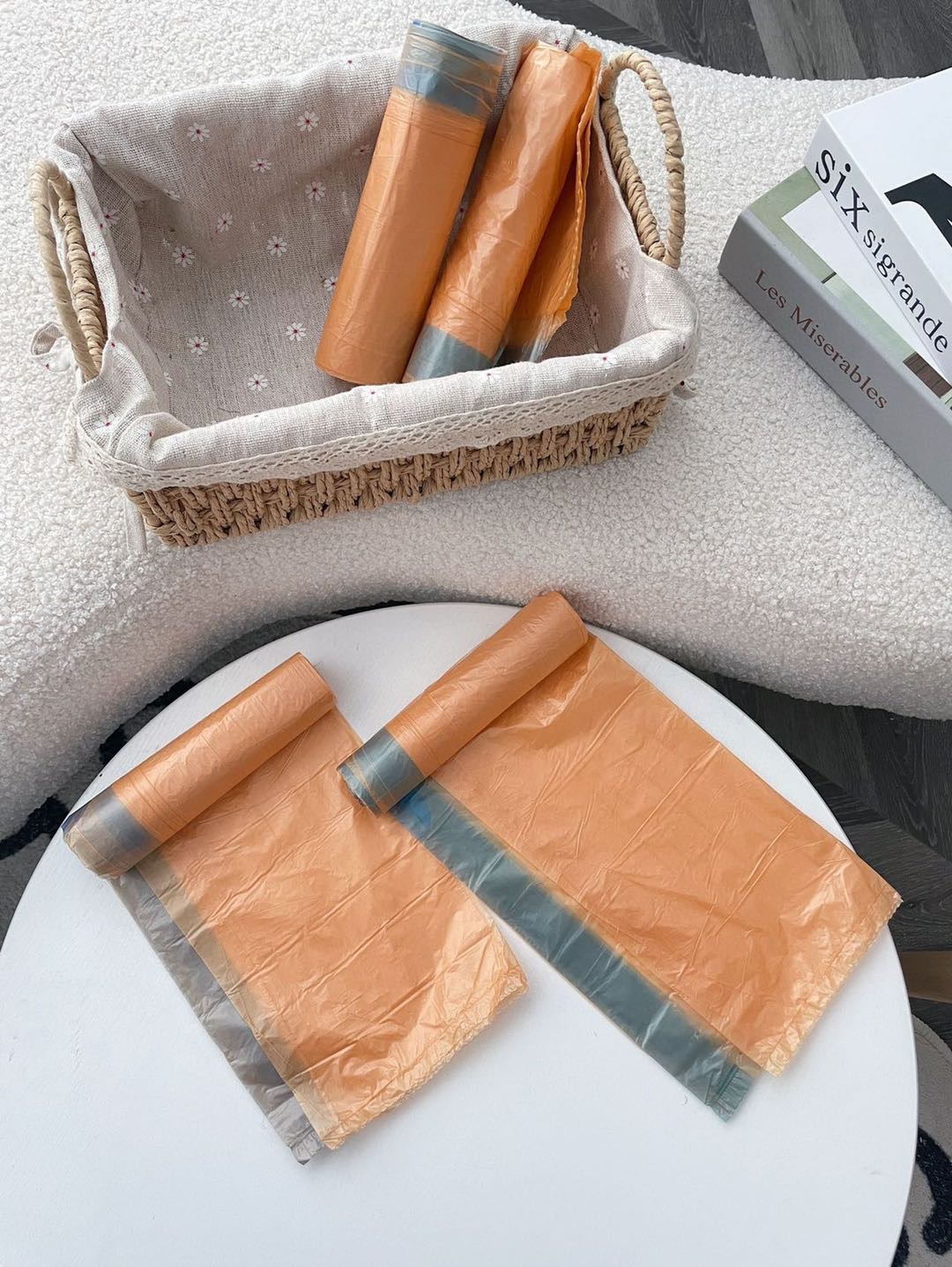 〔品名〕:抽绳垃圾袋 〔品牌〕:番红花® 〔规格〕:45X50CM(75只) 〔包装〕:1袋五卷/一卷15只(共75包) 〔材质〕:PE材质(聚乙烯) 〔用途〕:厨余垃圾/可回收垃圾/有害垃圾/其他垃圾