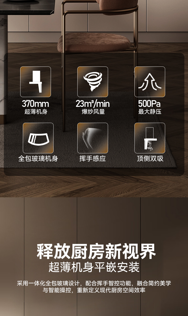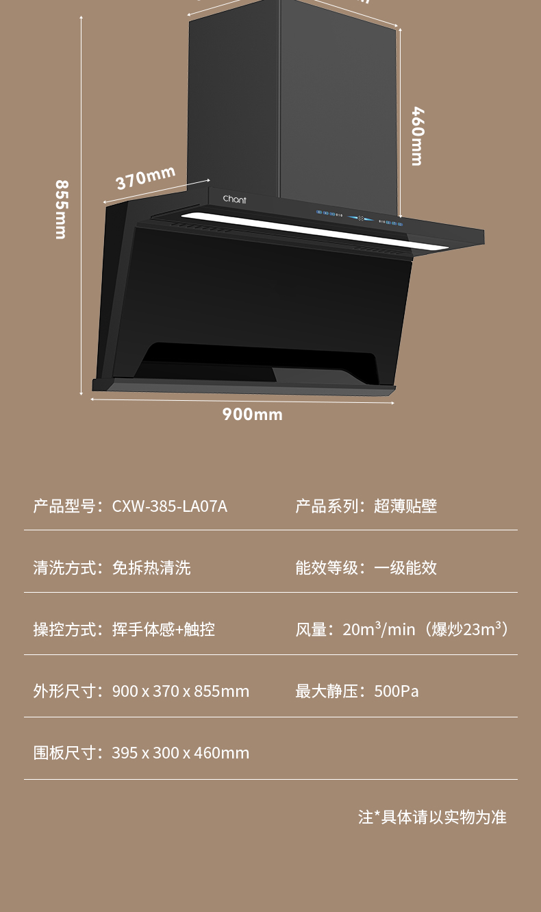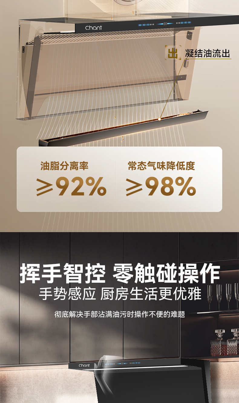 【焕新智选】创尔特(Chant)侧吸家用抽油烟机 大风量排烟机智能挥手感应自动清洗吸油烟机LA07A