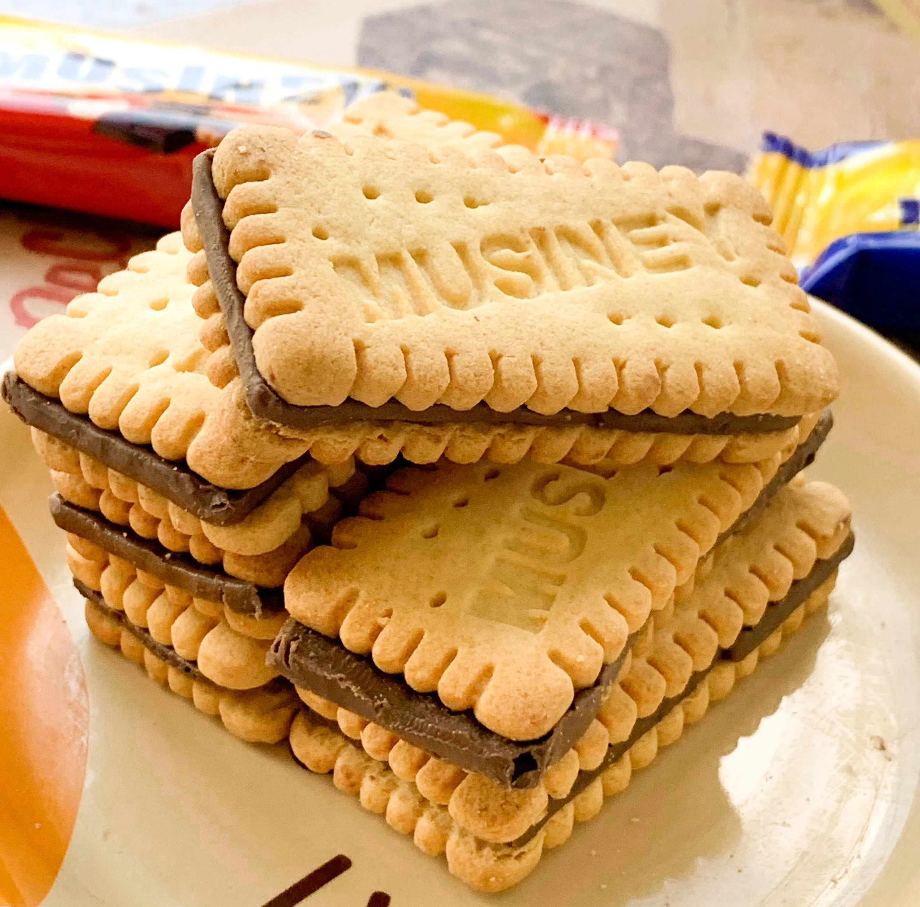 【慕丝妮 巧克力块饼干】一整块巧克力的夹心小饼干🍫39.9元3袋!👉多层口感 酥脆香醇✨巧克力党速速集合🥳真可可脂✅巧克力和饼干中和的恰到好处 巧克力夹心入口即化!