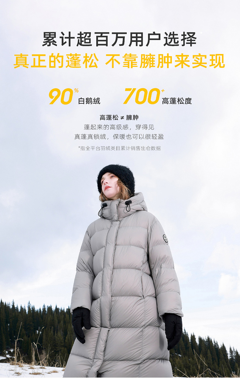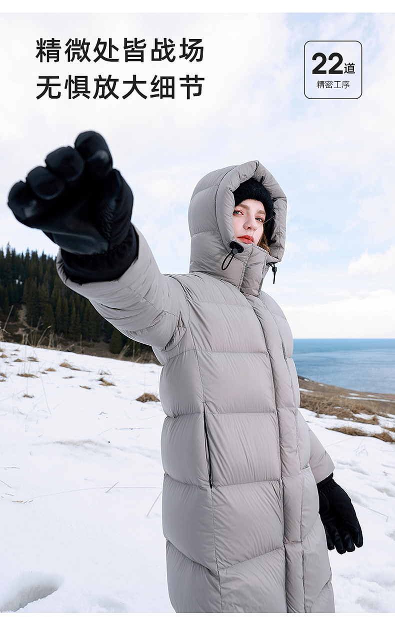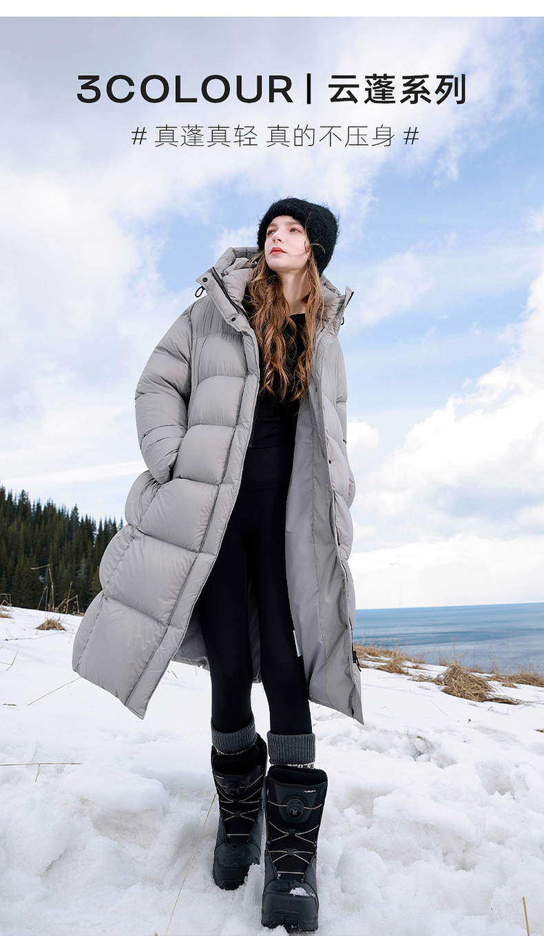 【高蓬高充绒】三彩2025冬季新款防水蓄热90白鹅绒羽绒服长款M