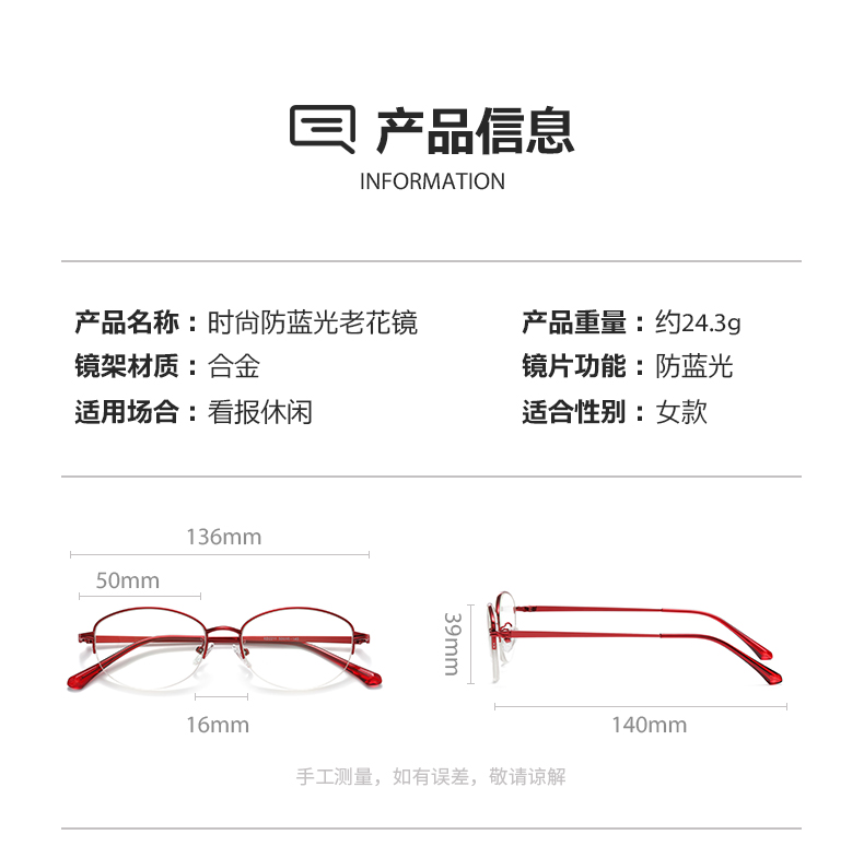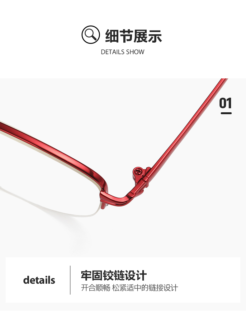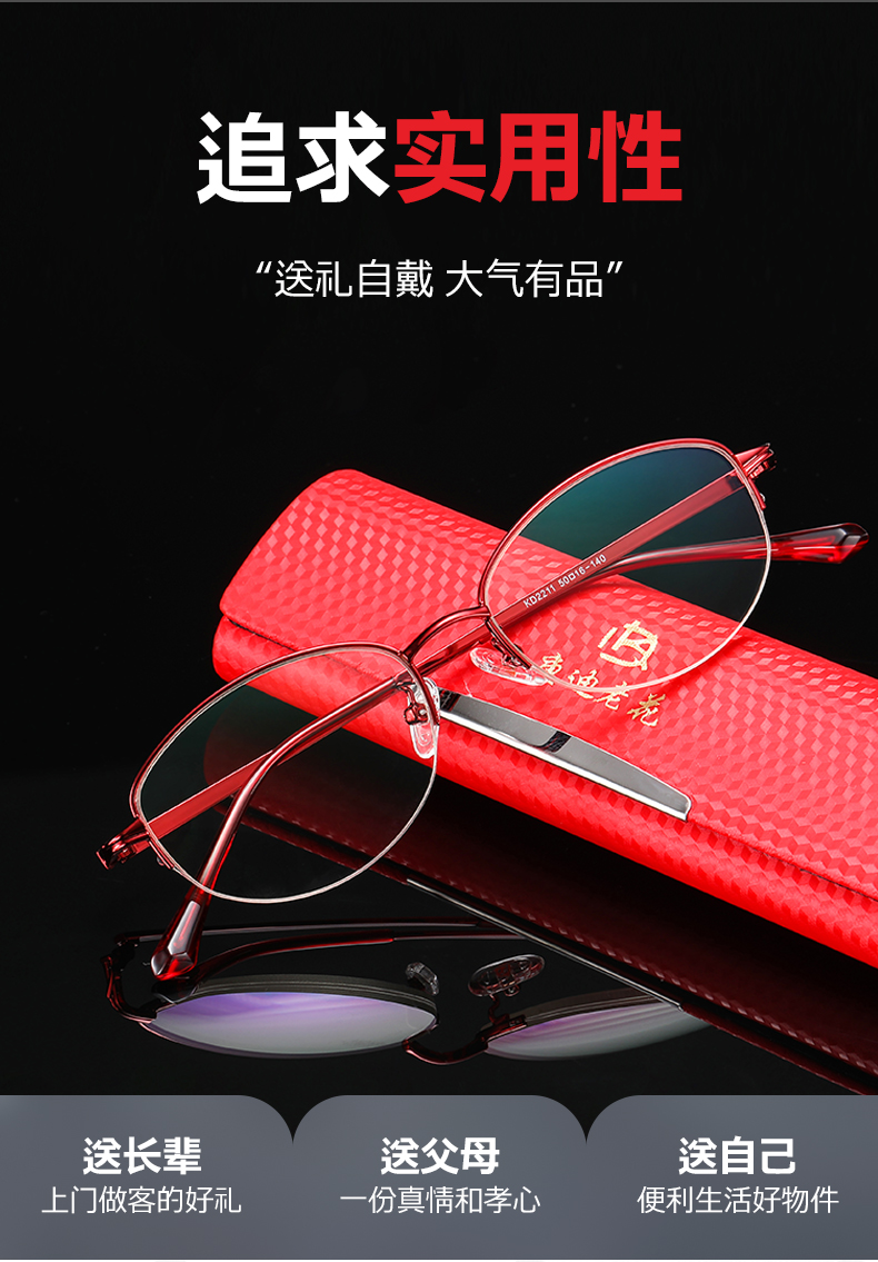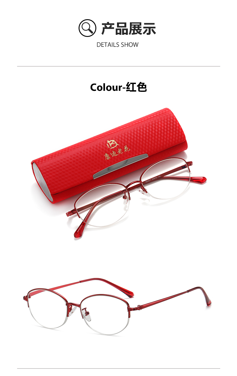 【时尚简约】康迪 高档时尚防蓝光紫外线半框老花镜KD2211 (女款)红色/紫色 整体线条流畅舒适
