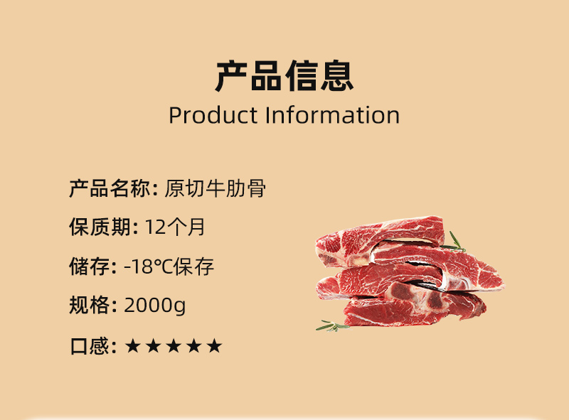 【大块原切】青草家 进口牛肋骨 4斤 肉质鲜美