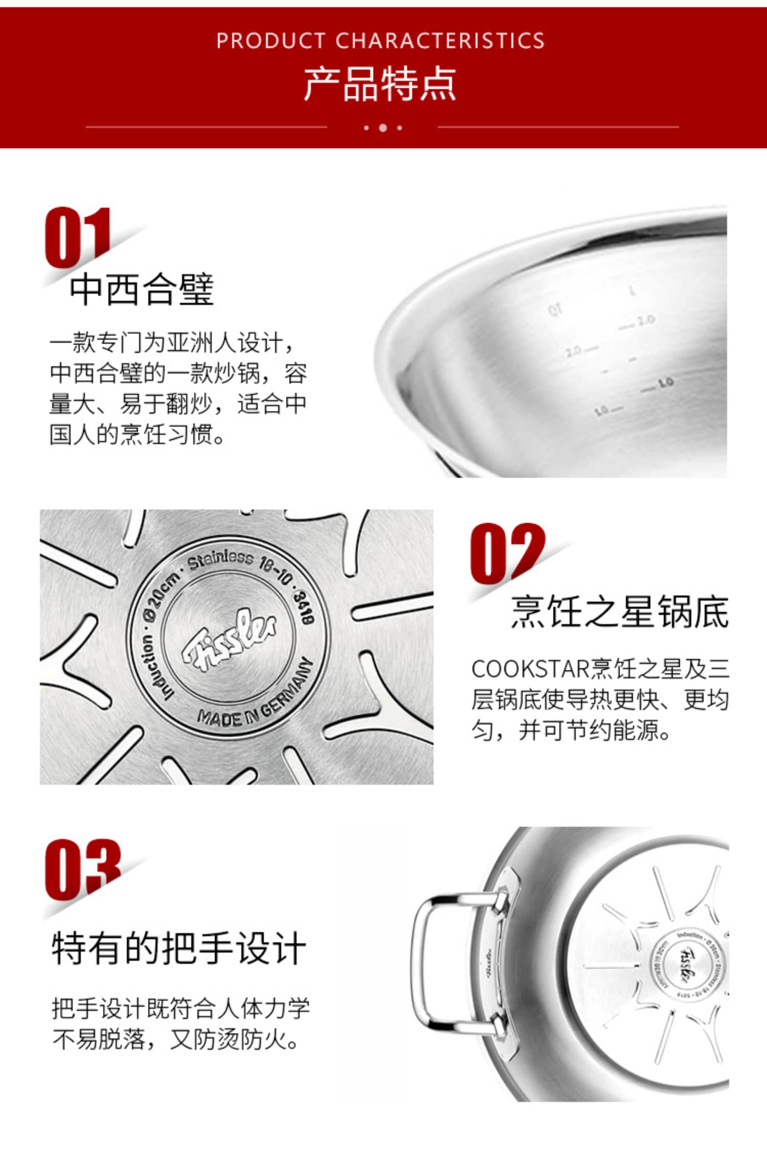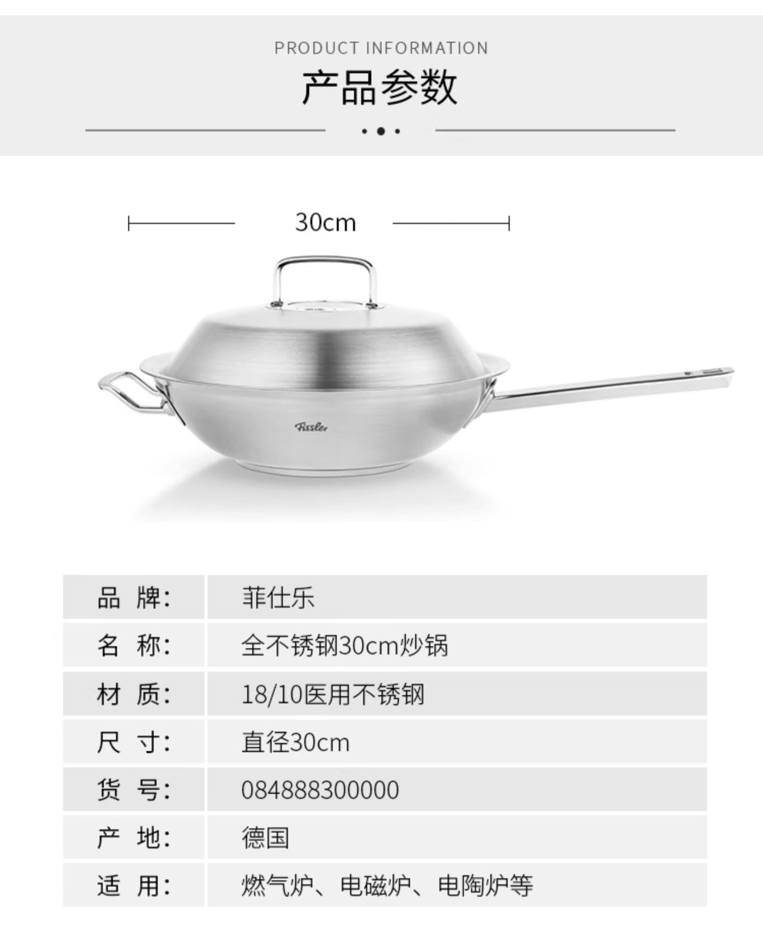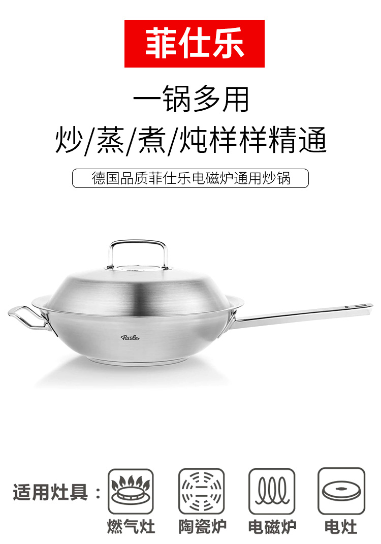 德国进口菲仕乐(Fissler)雅阁系列炒锅30cm+不锈钢锅盖