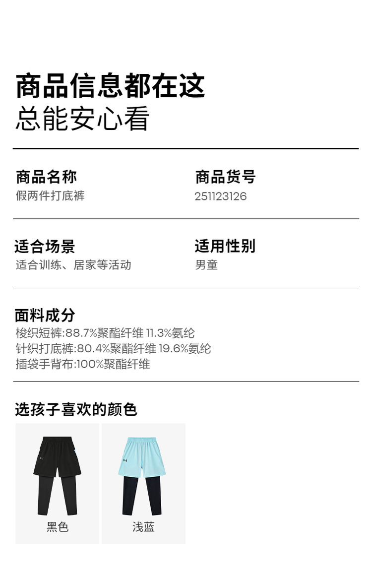 【12月-特惠福利】Under Armour安德玛童装运动假两件裤251123126