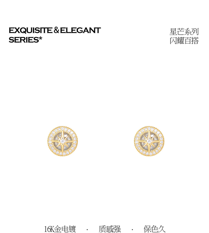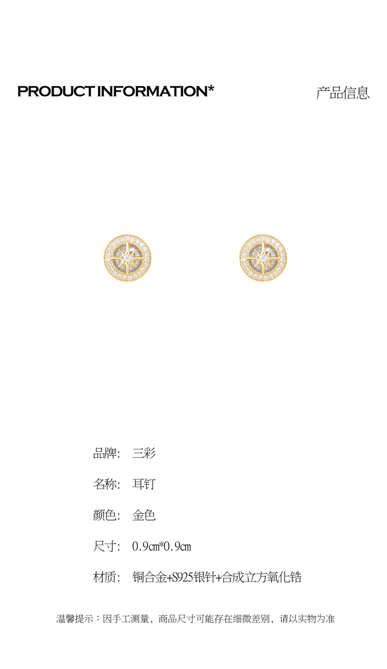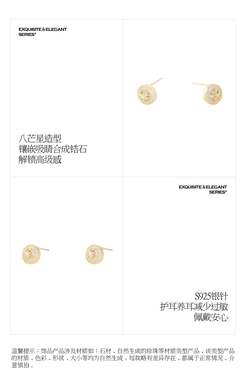 三彩2026新款八芒星锆石小耳钉S925银针小众设计感轻奢极简通勤女