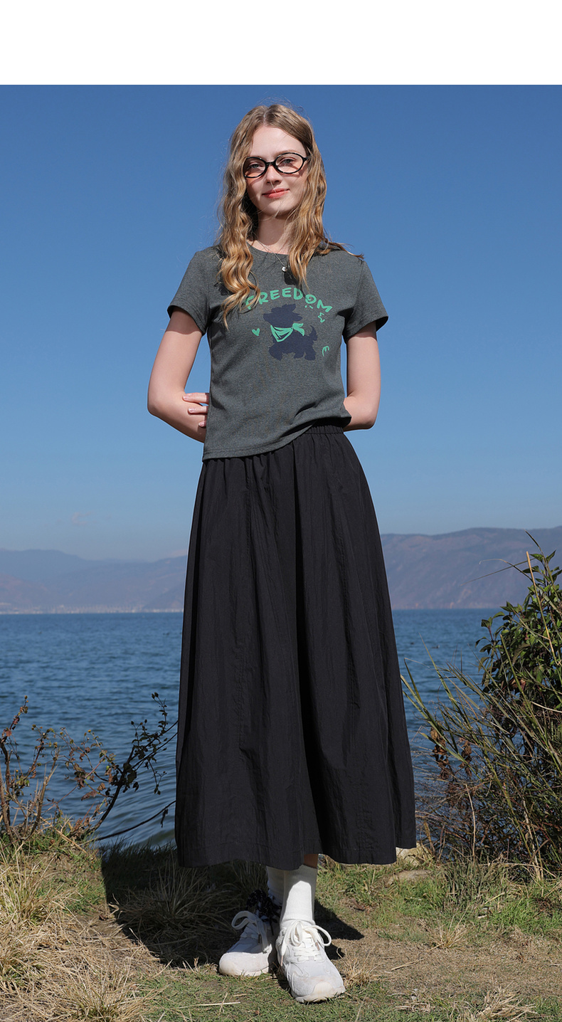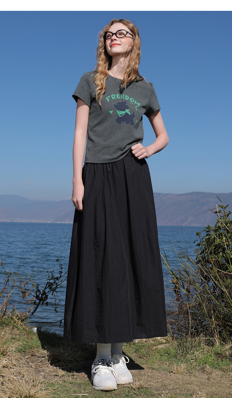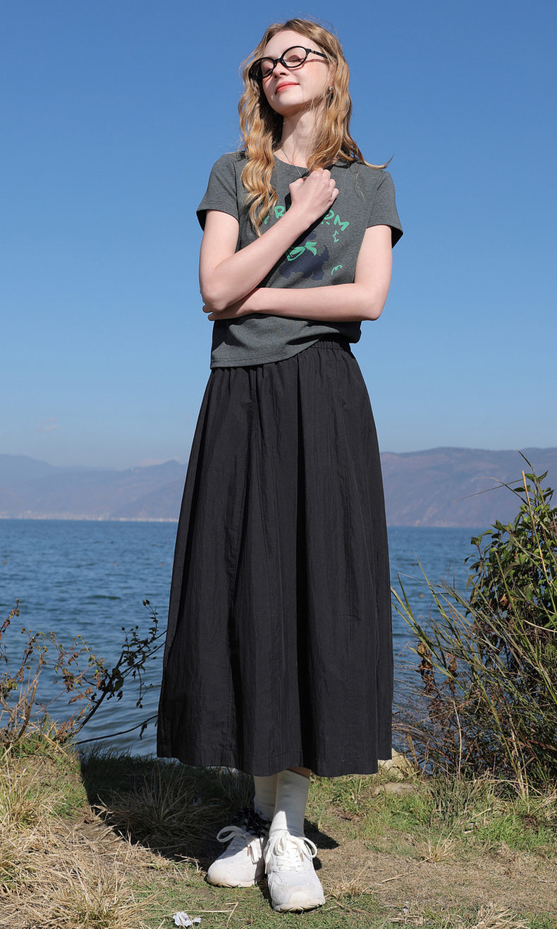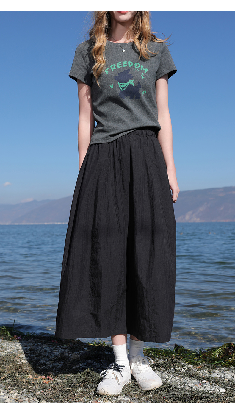 三彩2026春季新款设计感高腰半身裙A字裙长裙显瘦韩系气球裙M