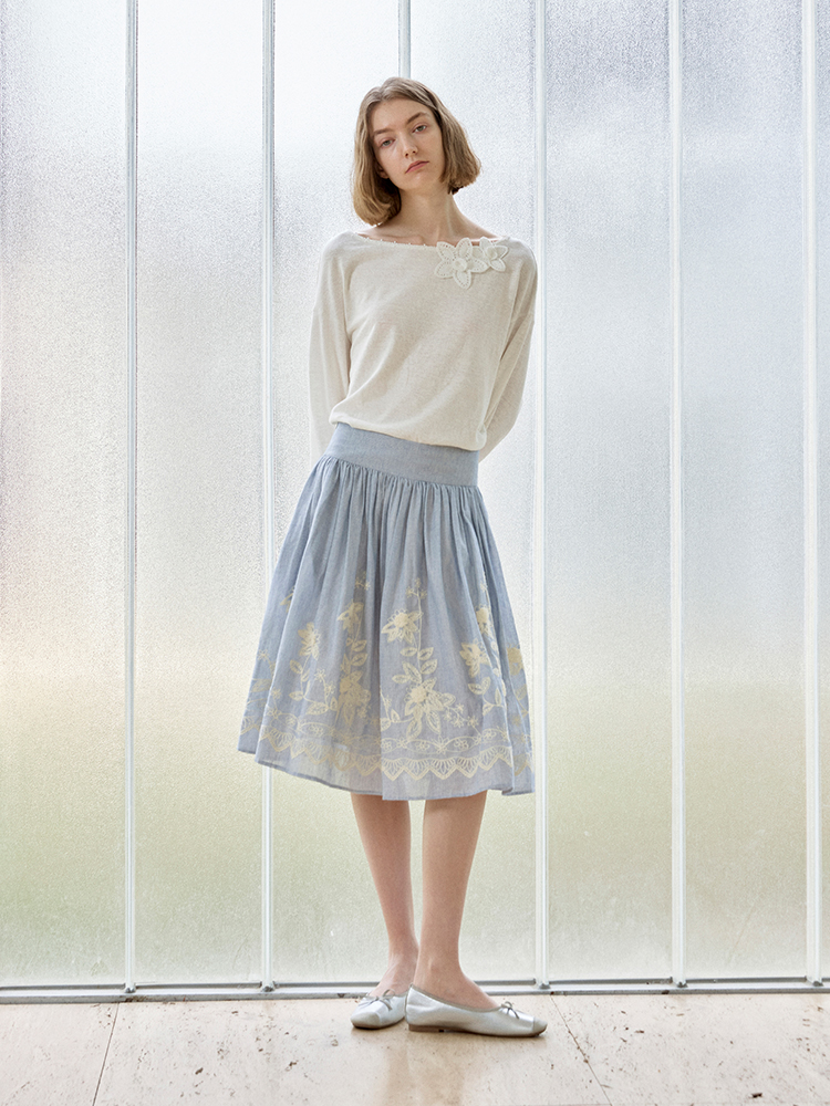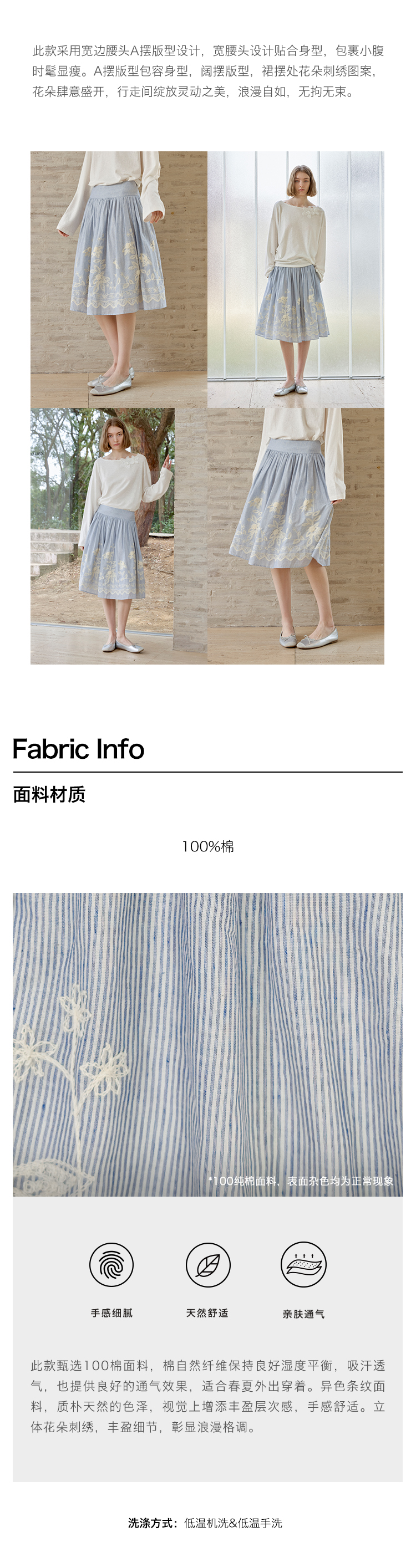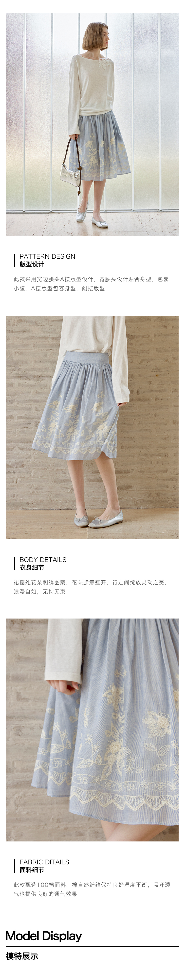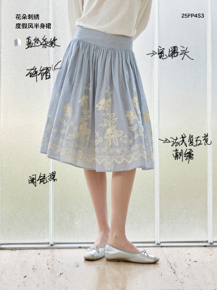 ForPoem 现货 25/SS原创设计100棉花朵刺绣度假风半身裙