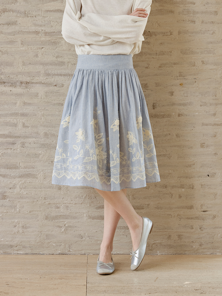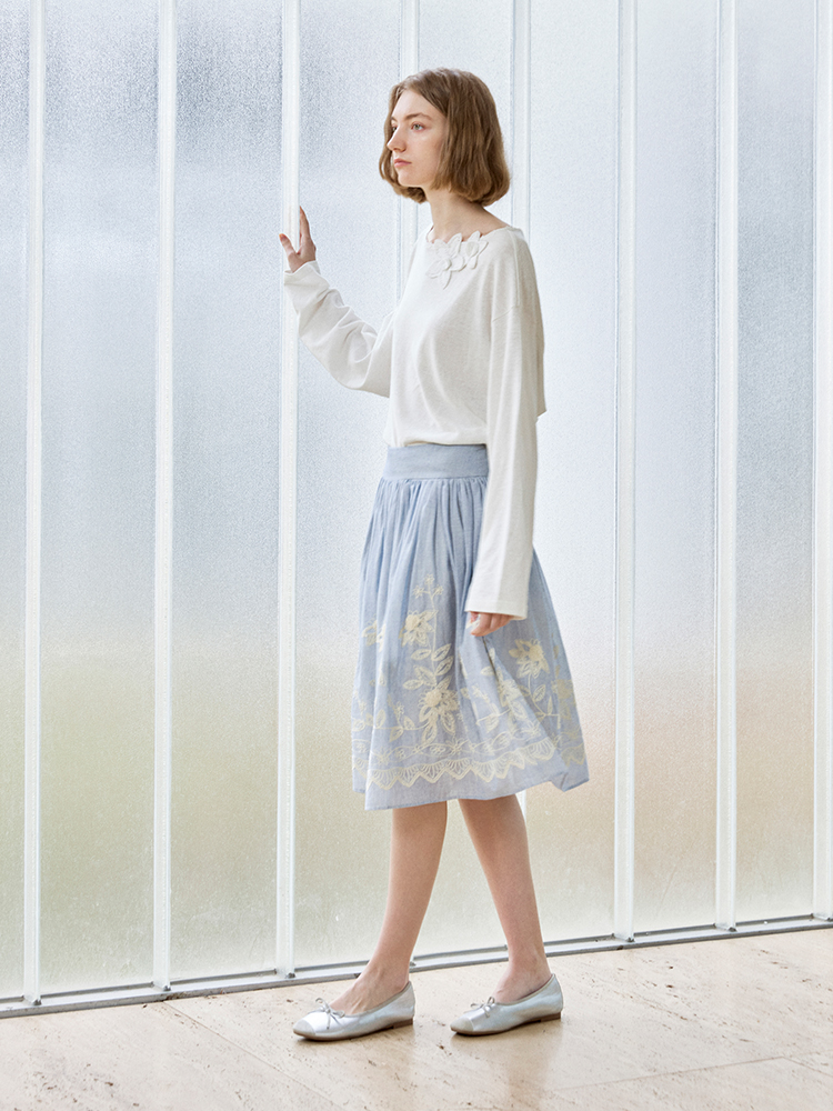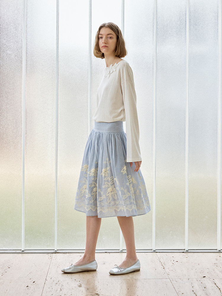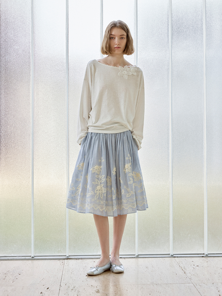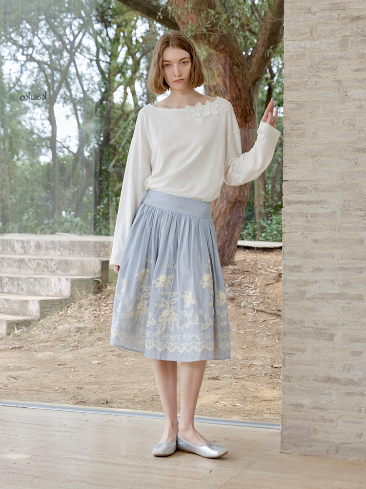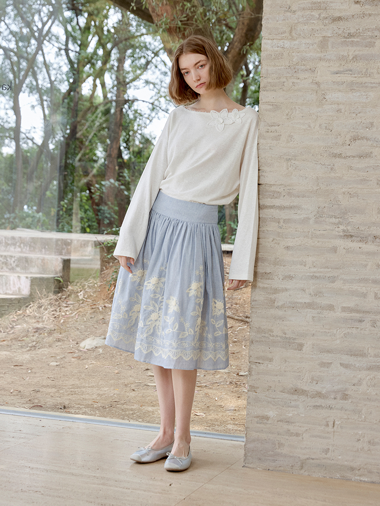 ForPoem 现货 25/SS原创设计100棉花朵刺绣度假风半身裙