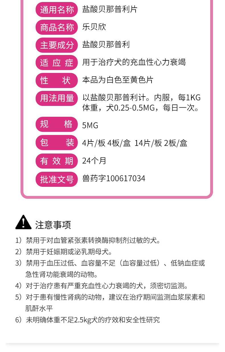 合宠乐贝欣盐酸贝那普利宠物猫狗心力衰竭高血压心肌脏病慢性肾病