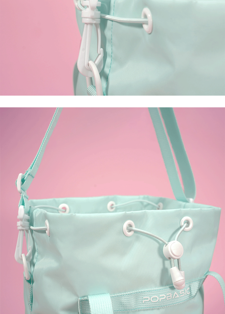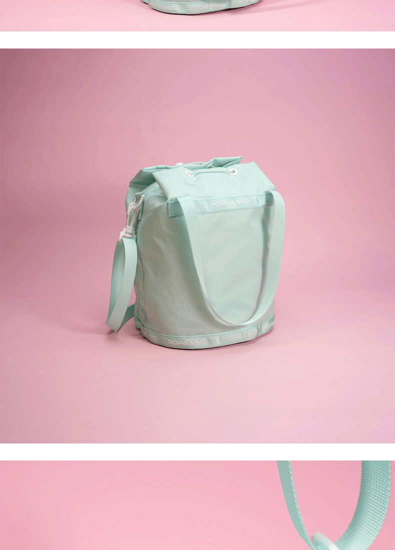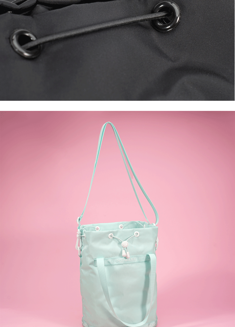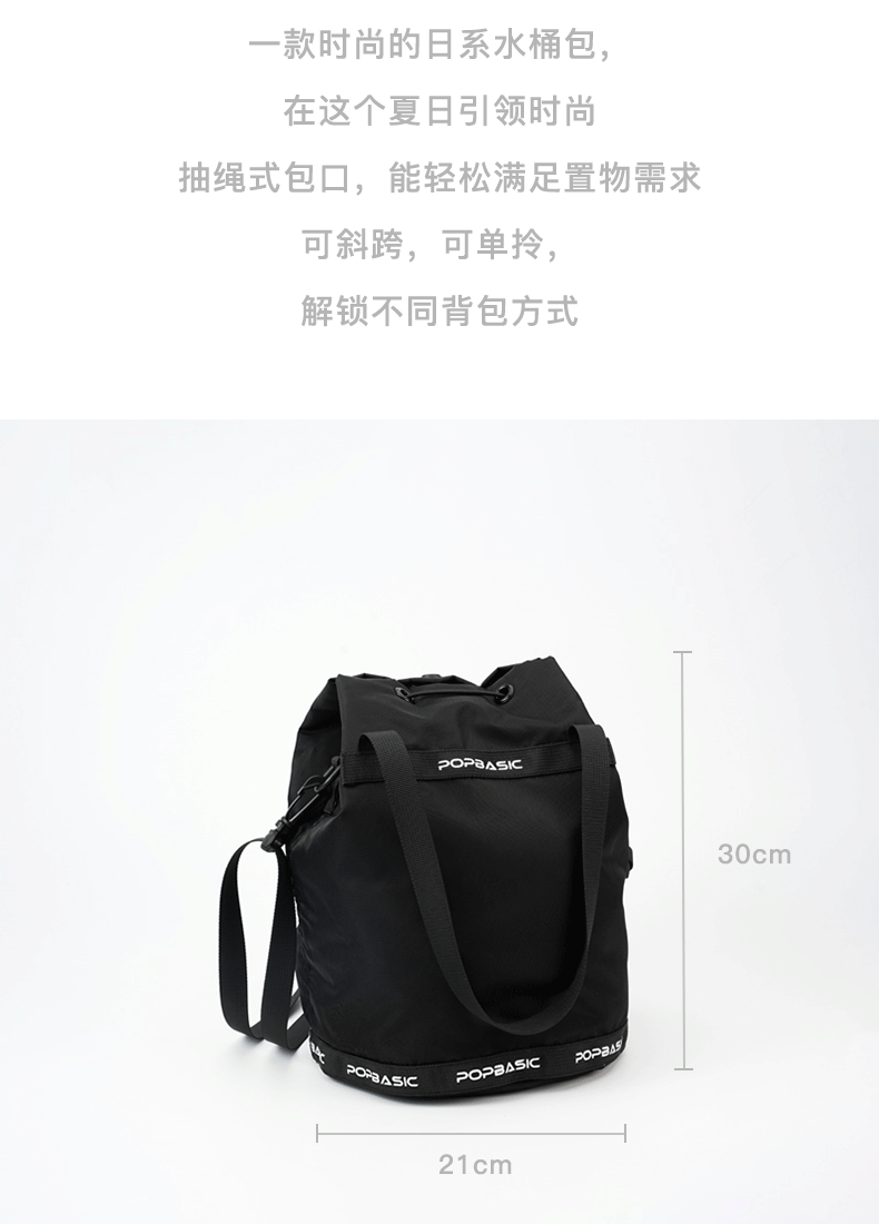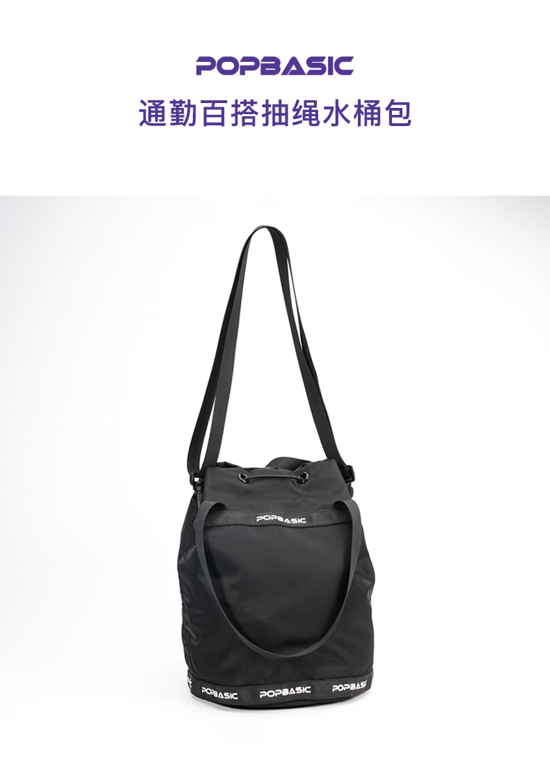 POPBASIC男女皆可水桶包通勤百搭抽绳手铃大容量斜挎单肩包