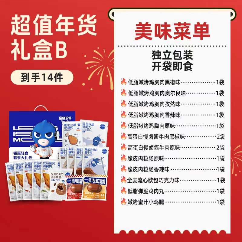 【鲨鱼菲特】鸡肉牛肉代餐减肥年货礼盒装 到手14-20件