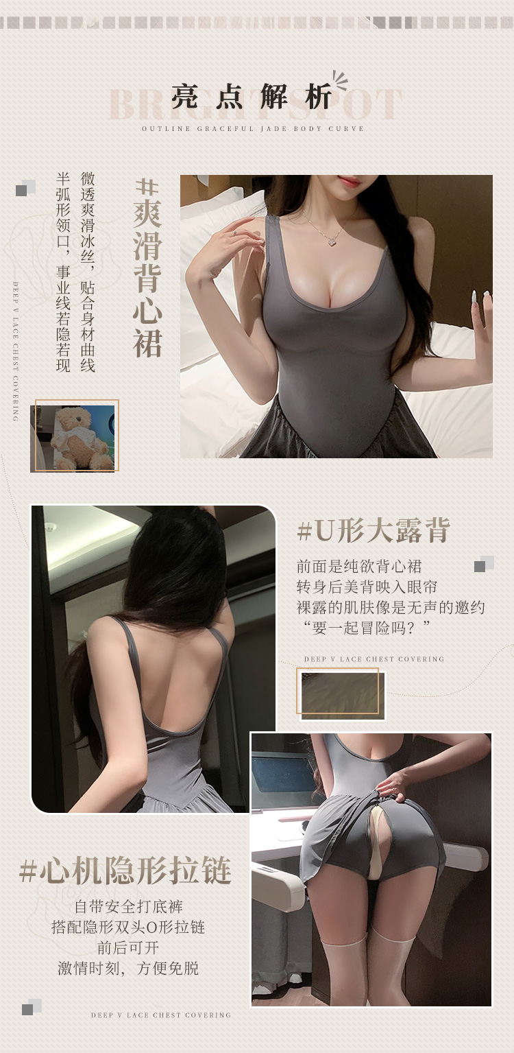 【情趣内衣】霏慕 日常外穿拉链开裆打野裙7841