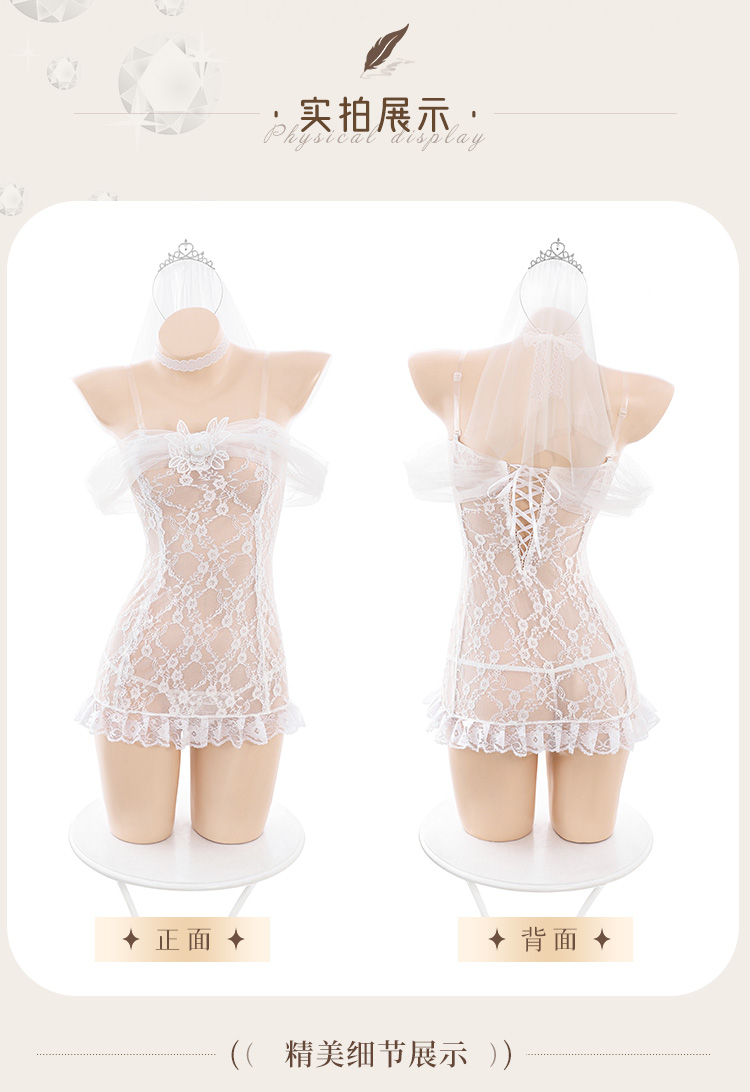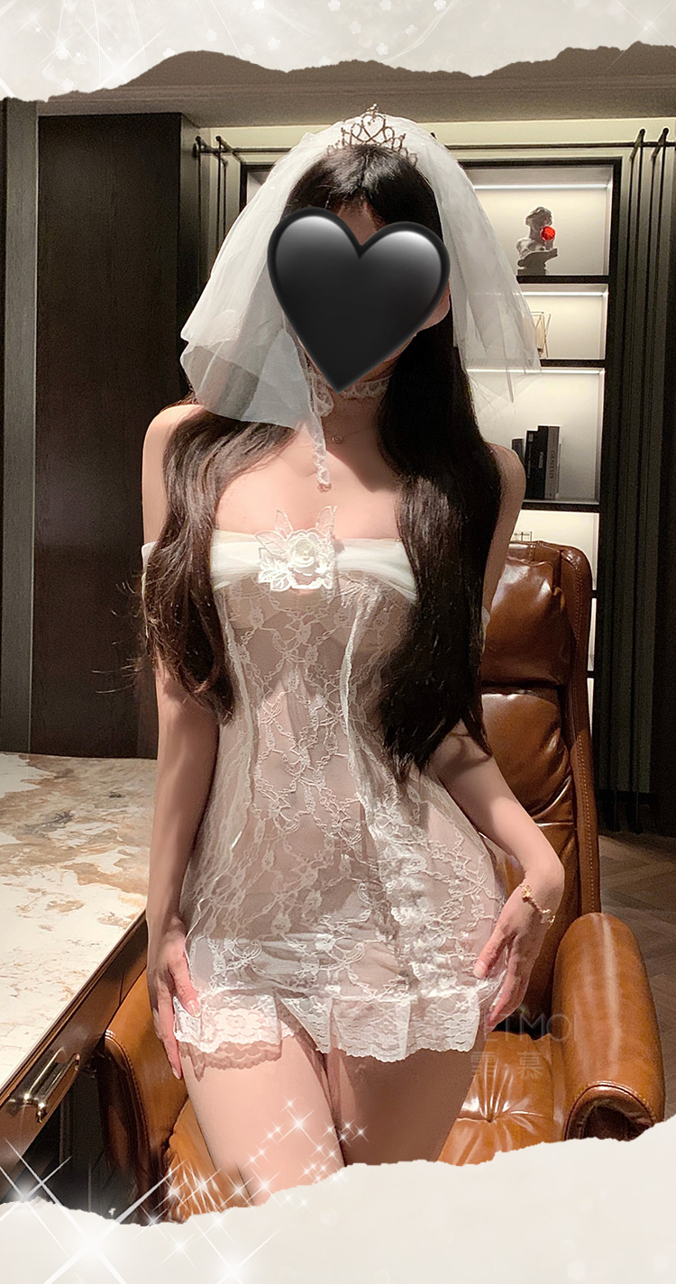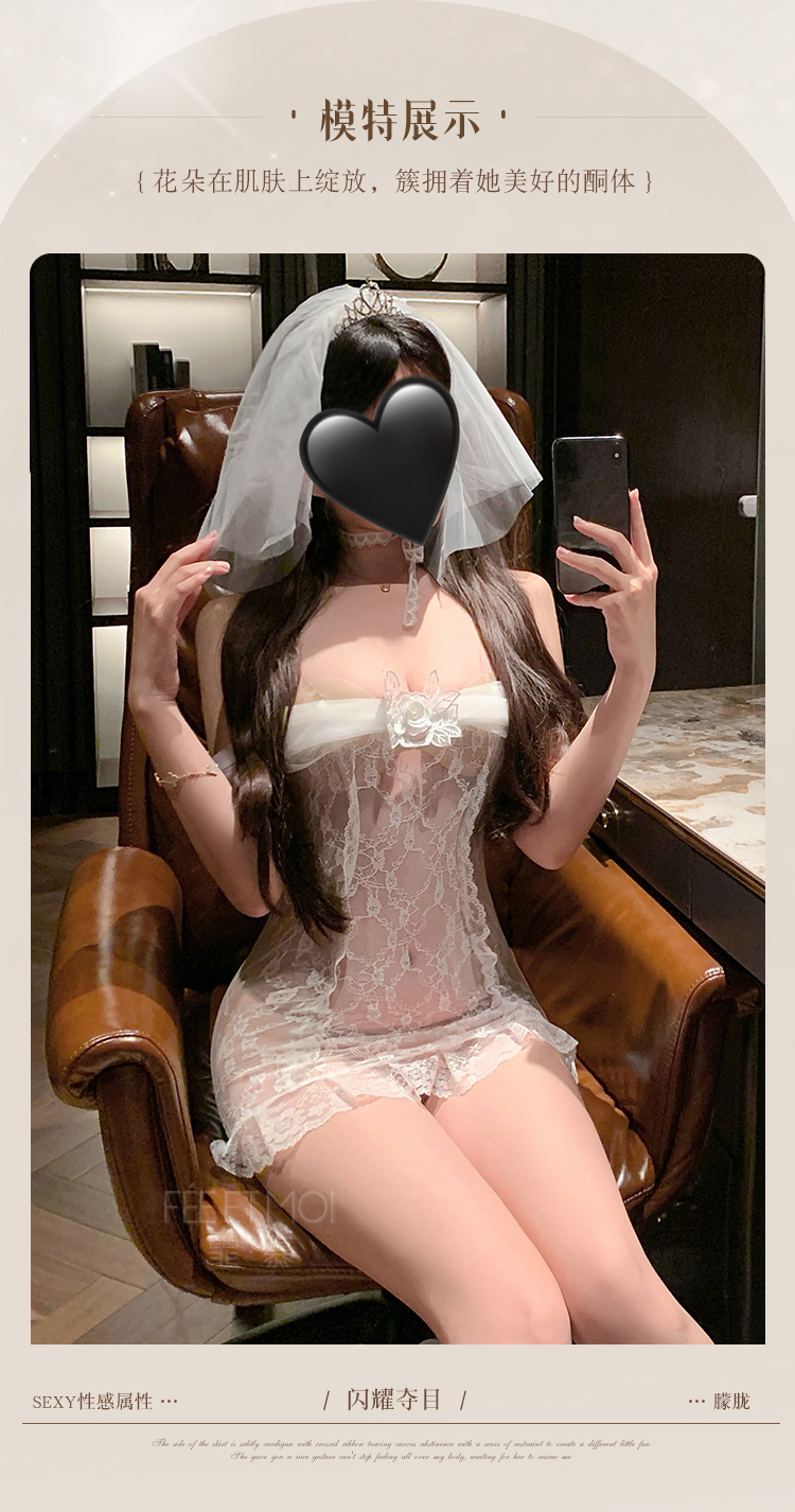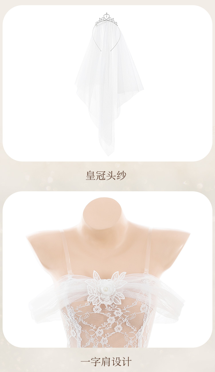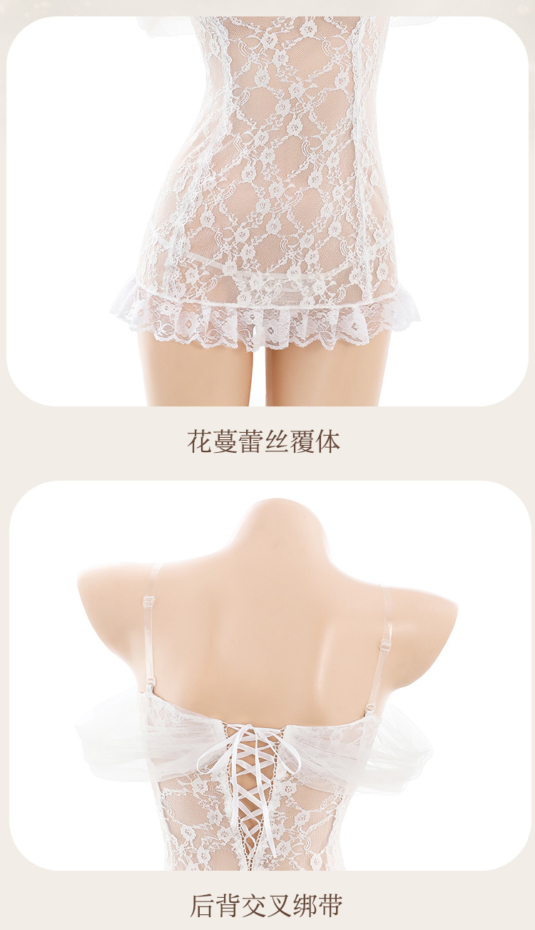 【情趣内衣】霏慕 一字透纱花蔓蕾丝新娘装6634