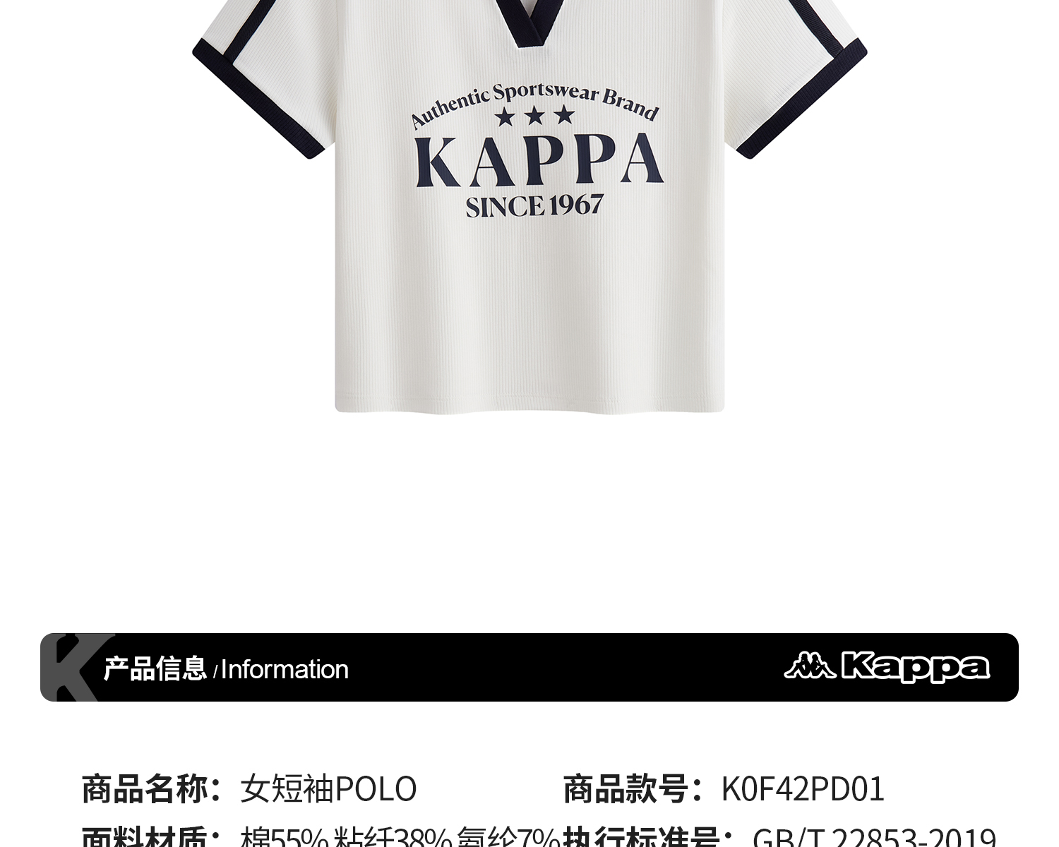 Kappa卡帕背靠背运动短袖t恤女夏季新款休闲短款polo衫半袖衫上衣K0F42PD01