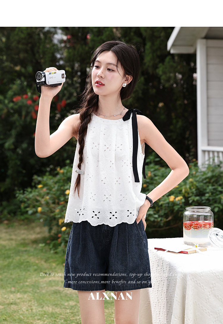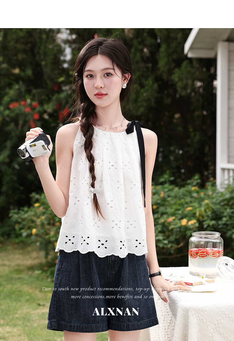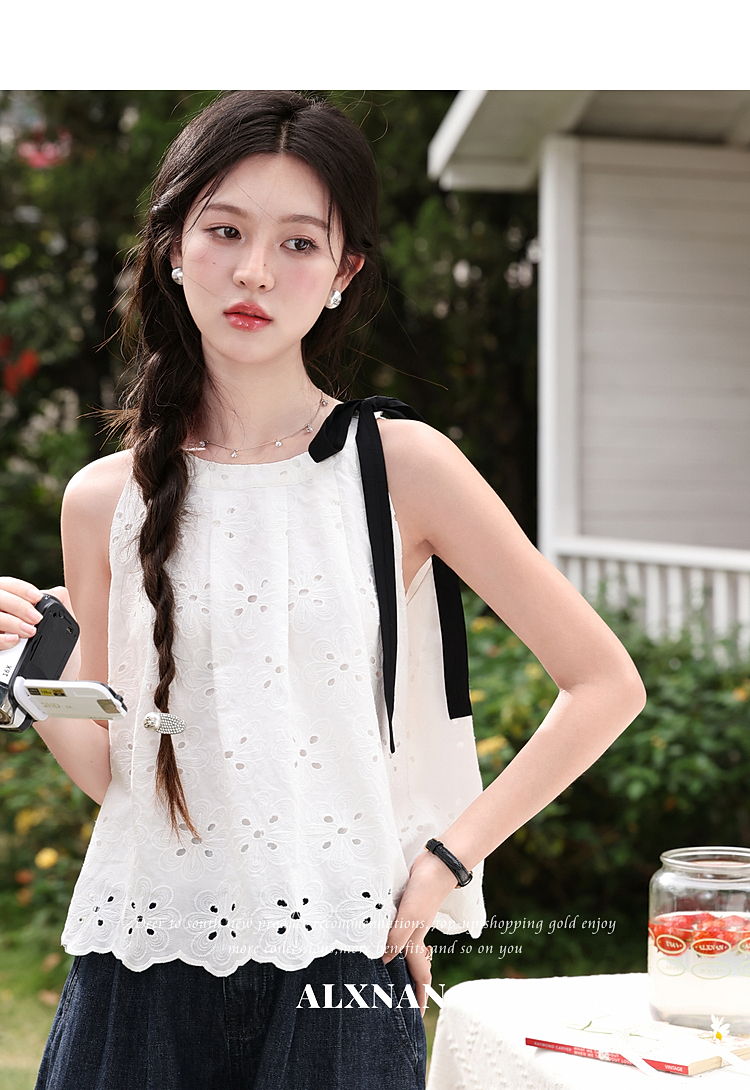 鹿向南【0417/20:00新品前1小时7折限量100件】设计感白色背心女
