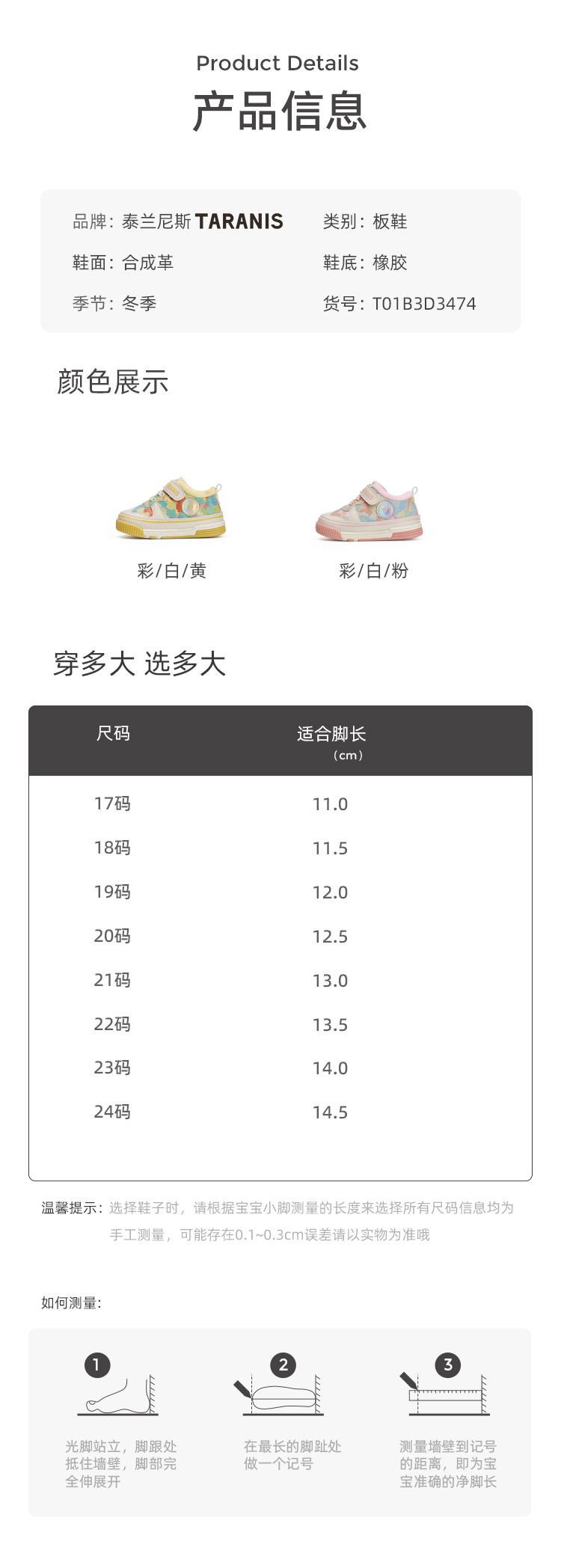 泰兰尼斯婴童段冬款加绒七彩涂鸦叫叫鞋学步鞋T01B3D3474