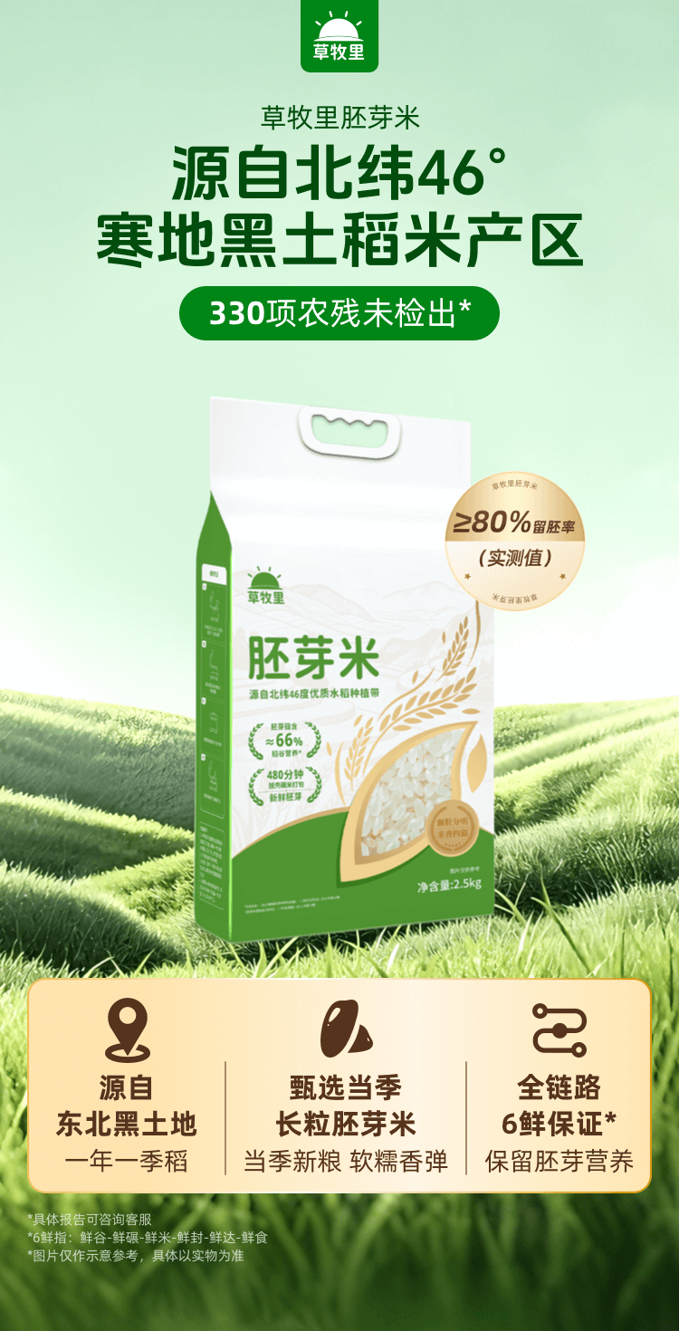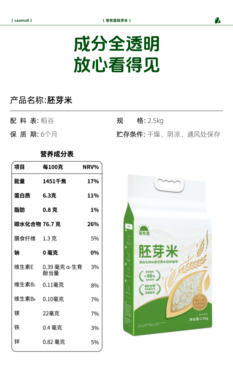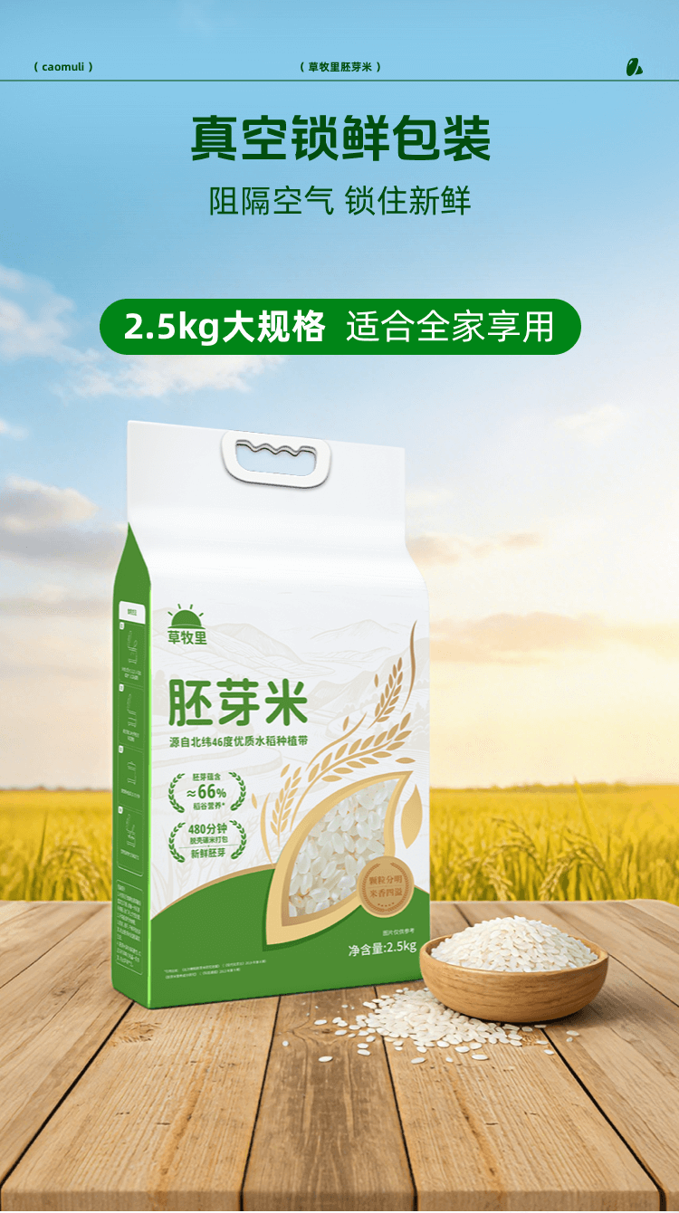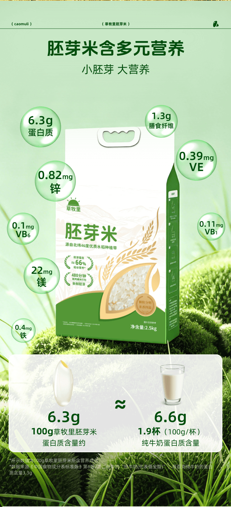 【颗粒饱满】草牧里 胚芽米 2.5kg/袋 新米低温轻碾保留胚芽营养**