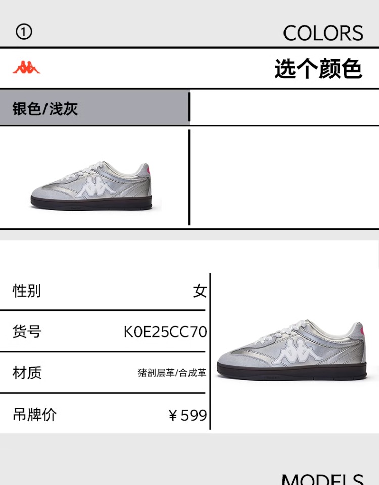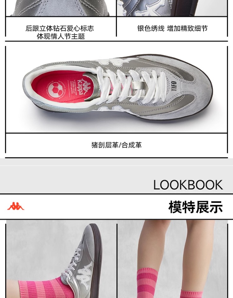 Kappa卡帕情人节德训鞋2024新款女TIFO拼接阿甘K0E25CC70
