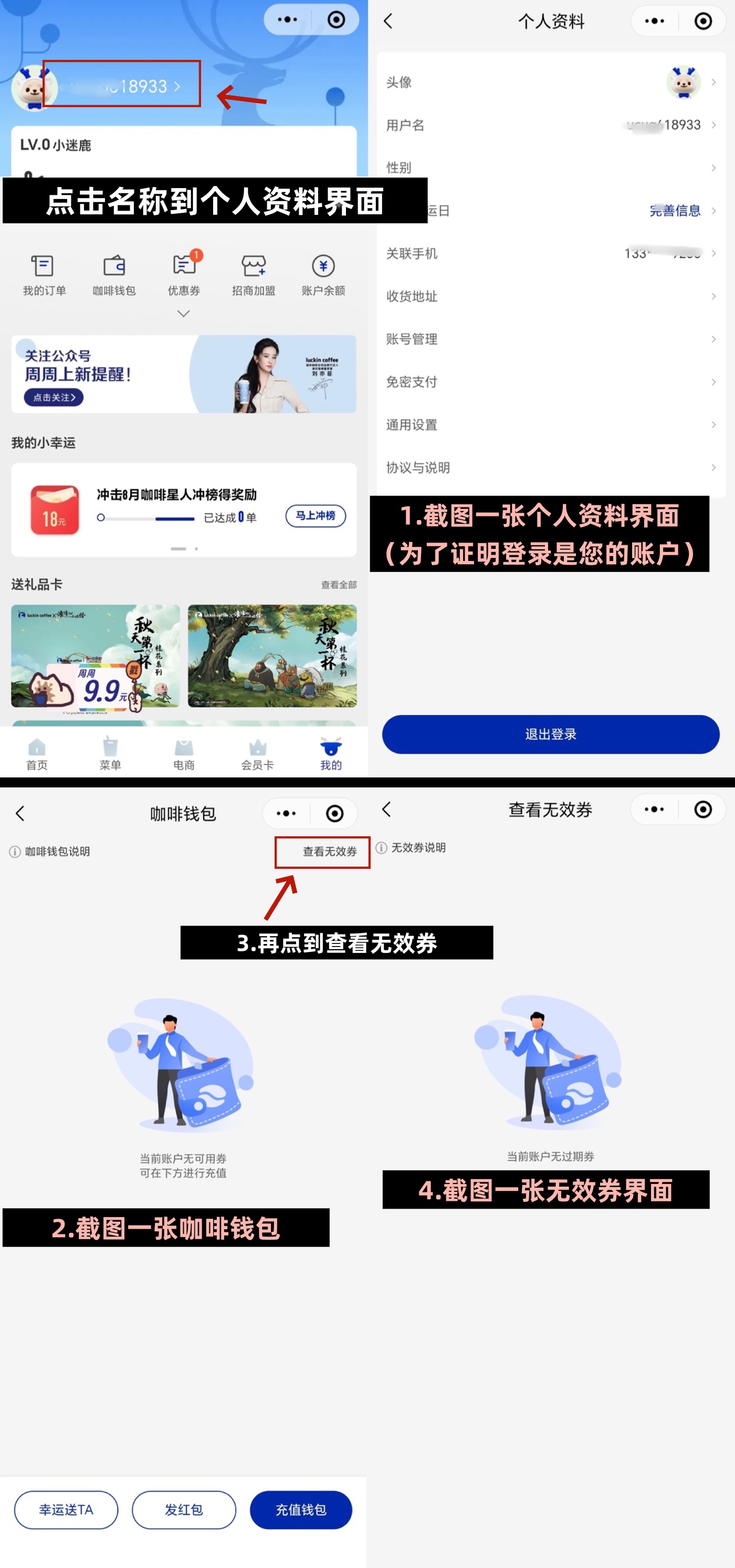 2.截图一张咖啡钱包界面,还有 一张无效券界面