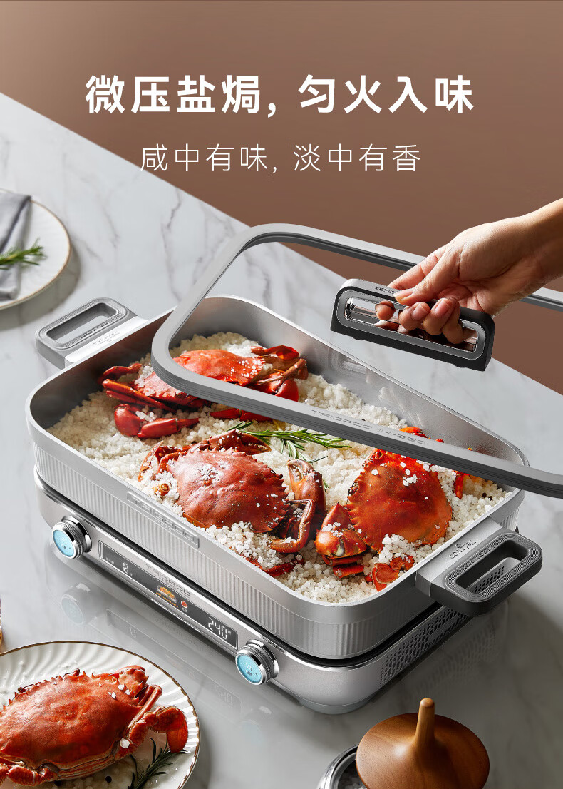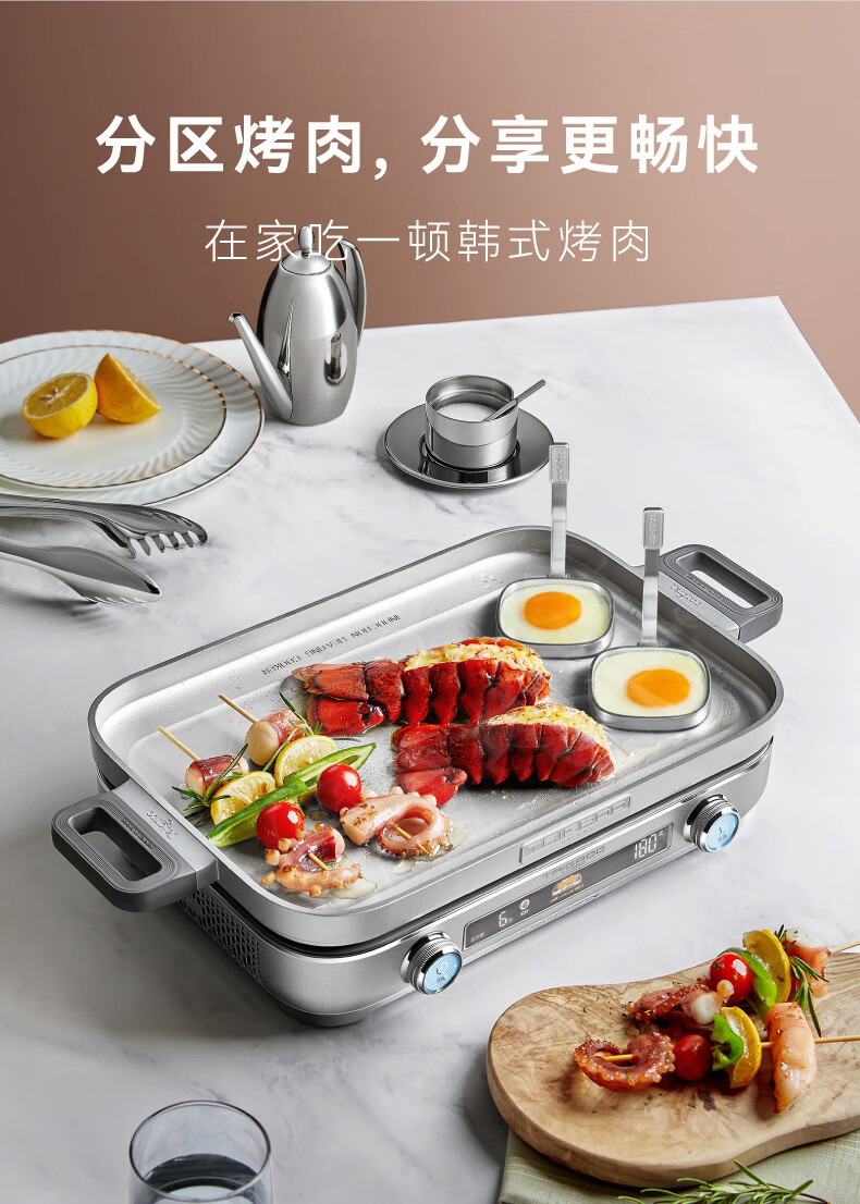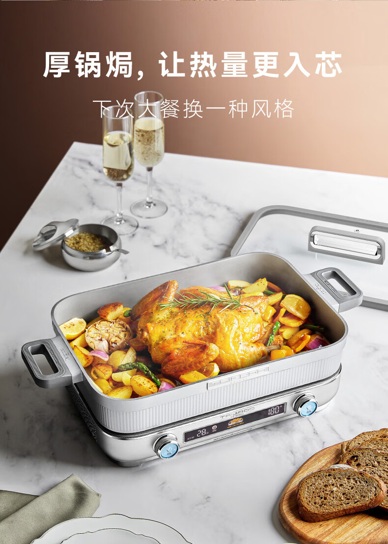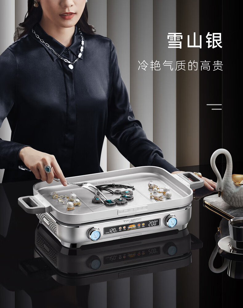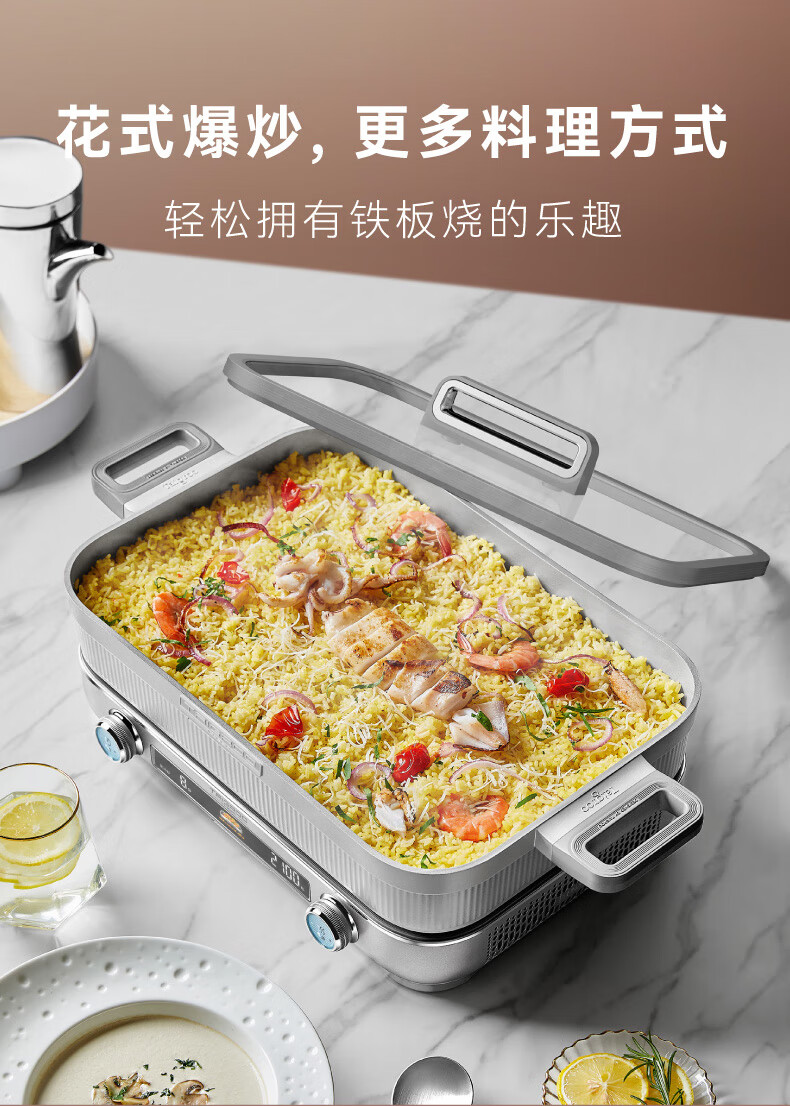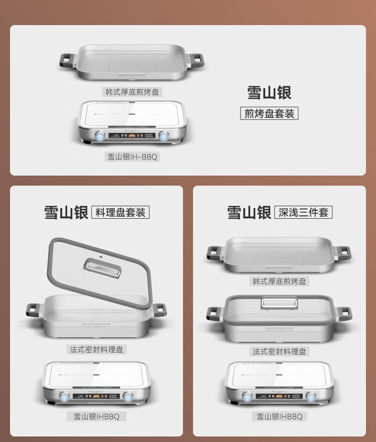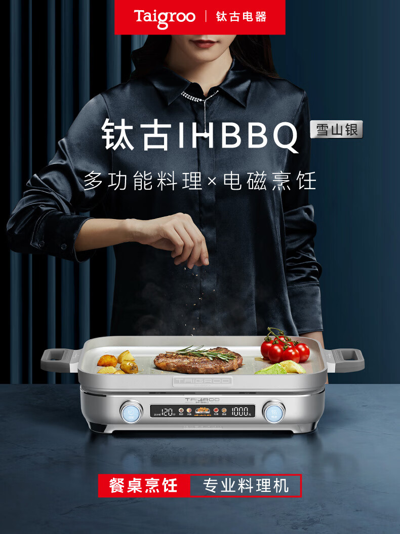 钛古(Taigroo) IHBBQ多功能料理锅机电煮锅韩式烤肉炉电火锅烤盘多用途锅煎炸煮炖多功能锅 雪山银深浅三件套