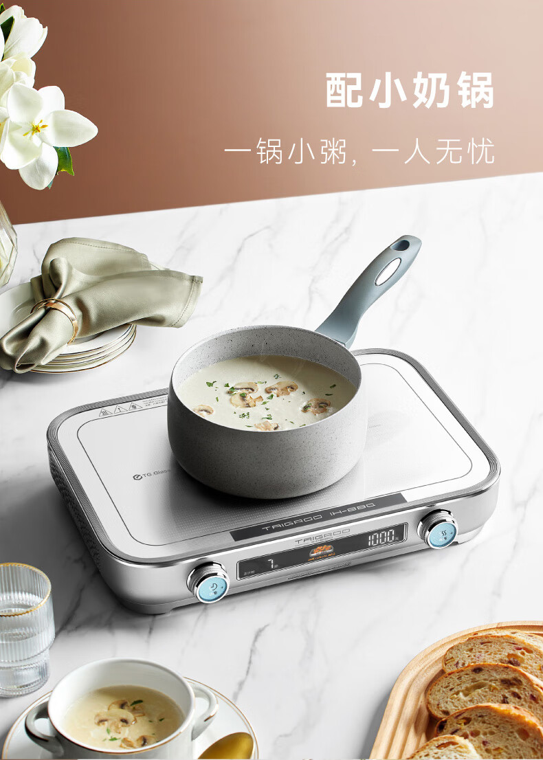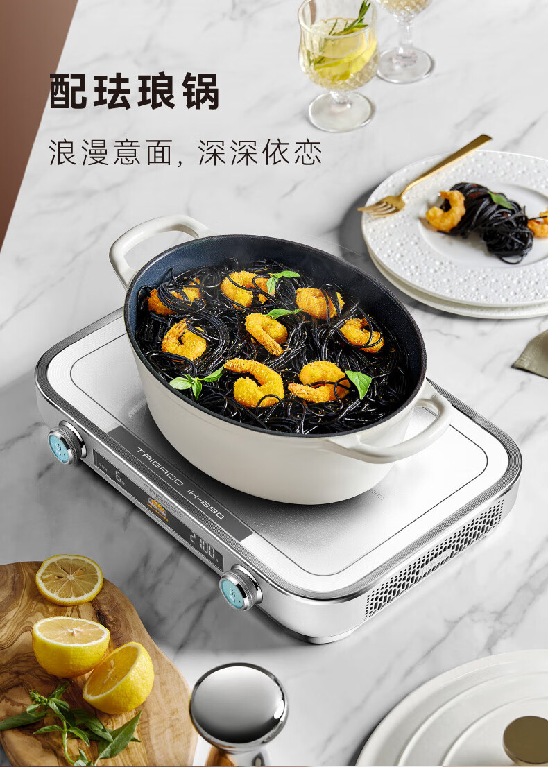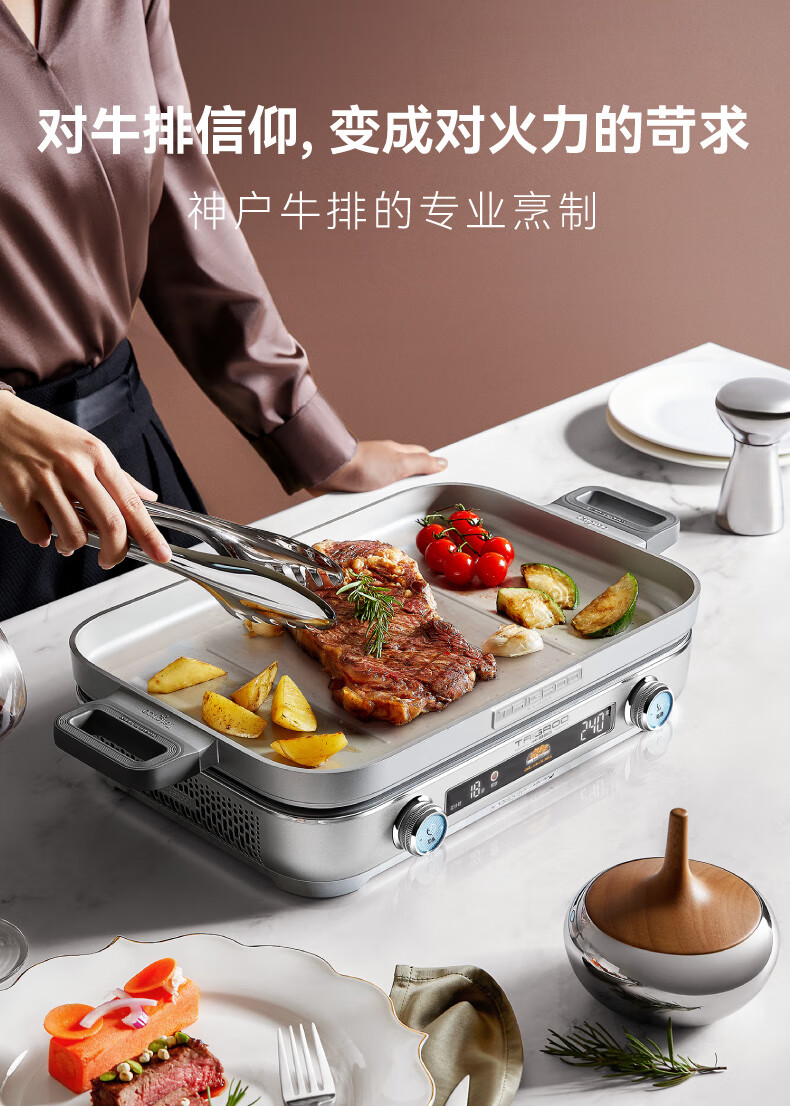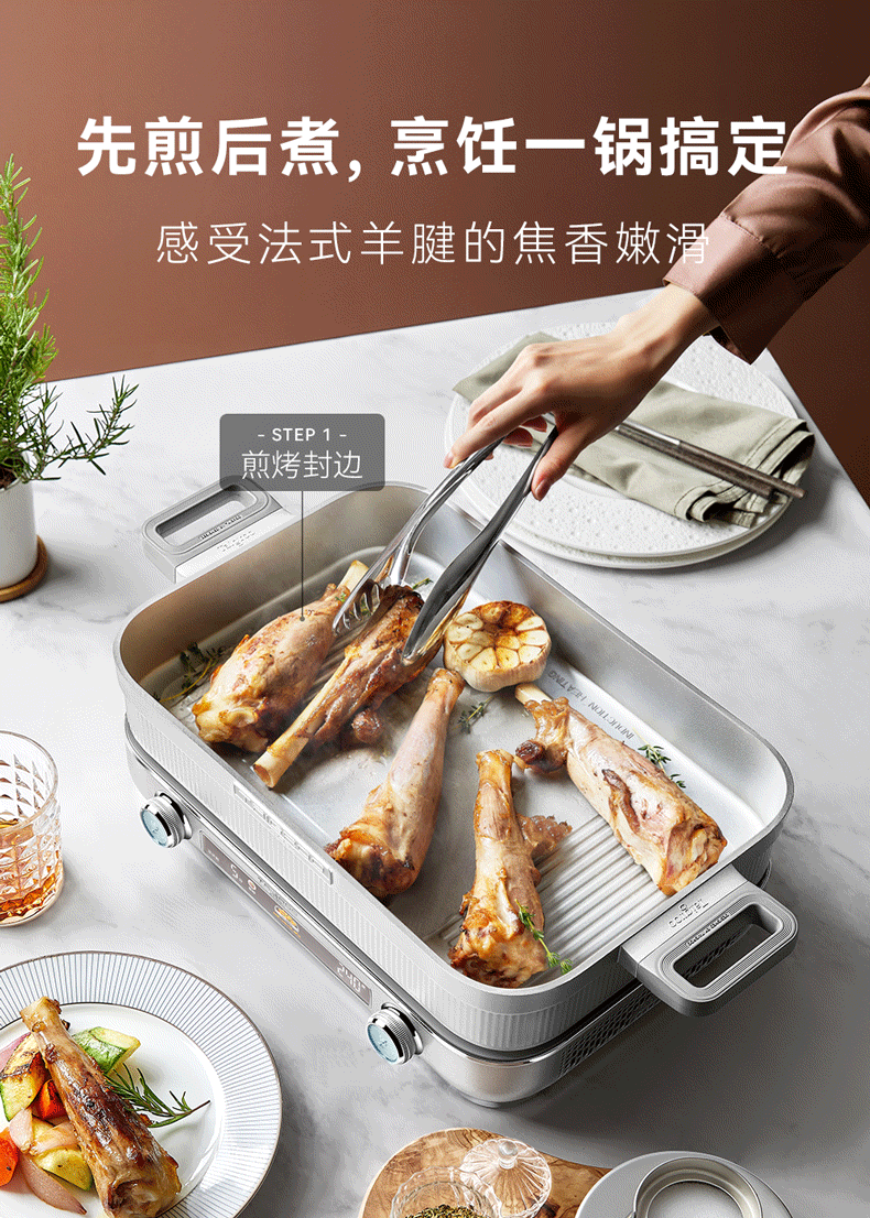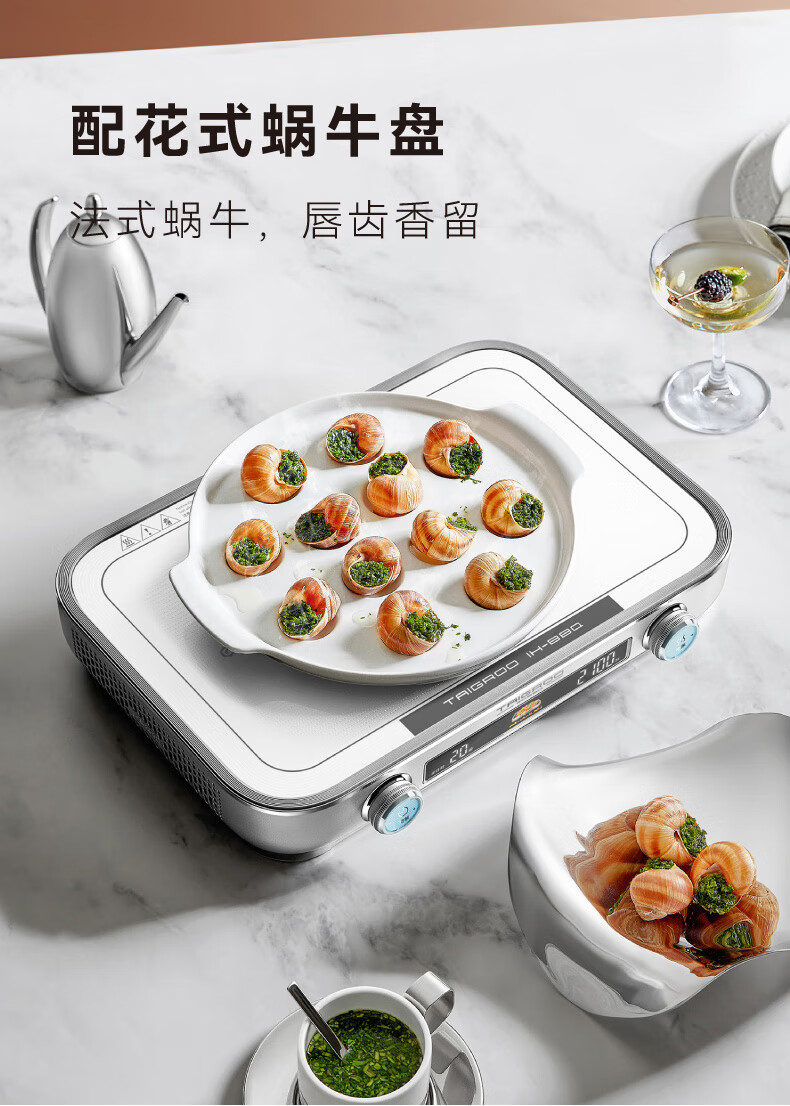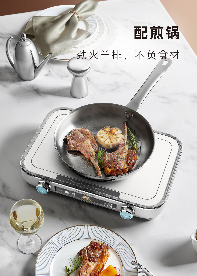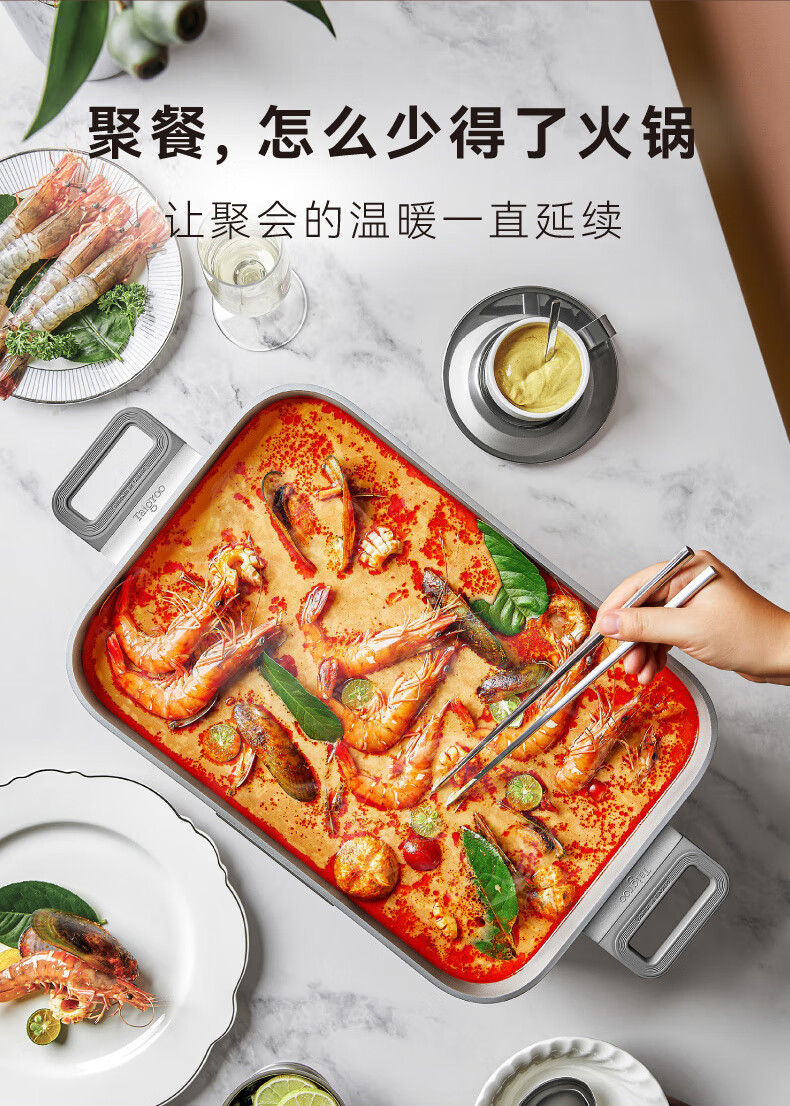 钛古(Taigroo) IHBBQ多功能料理锅机电煮锅韩式烤肉炉电火锅烤盘多用途锅煎炸煮炖多功能锅 雪山银深浅三件套