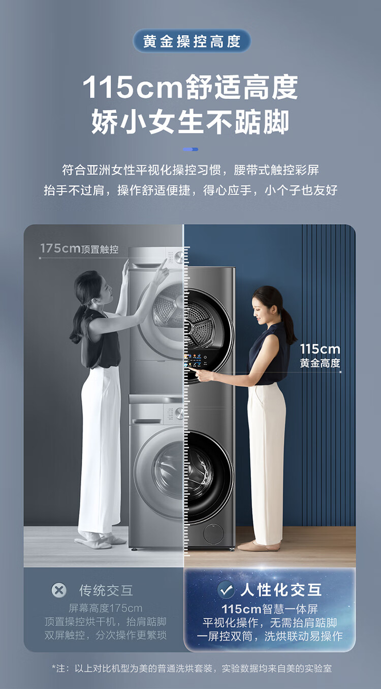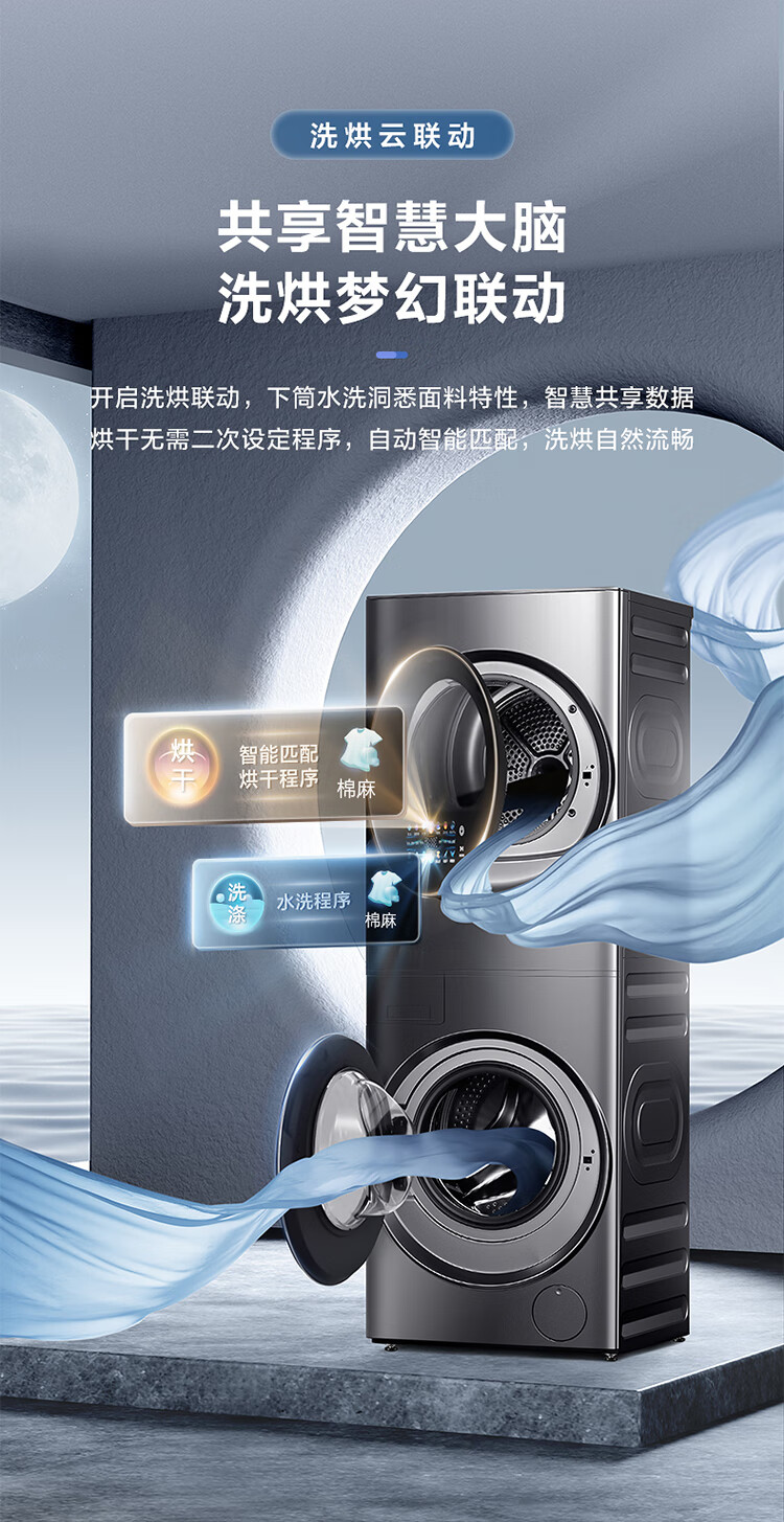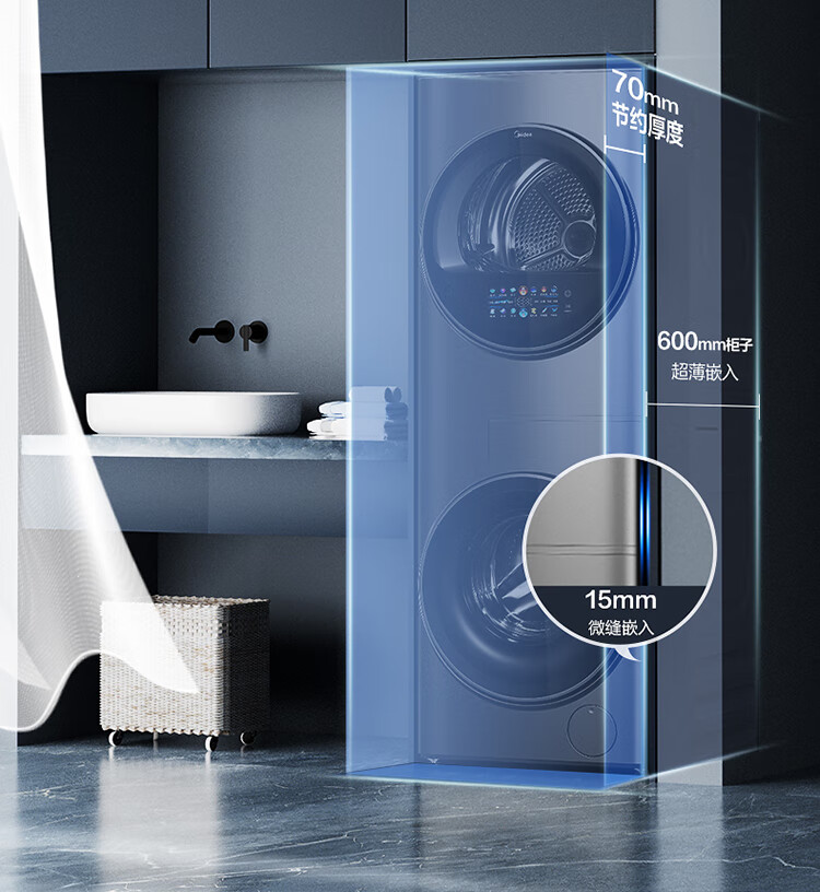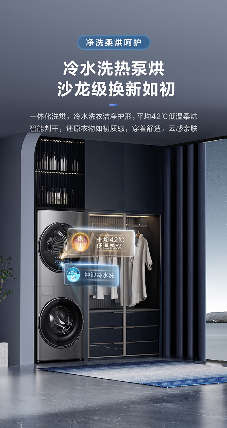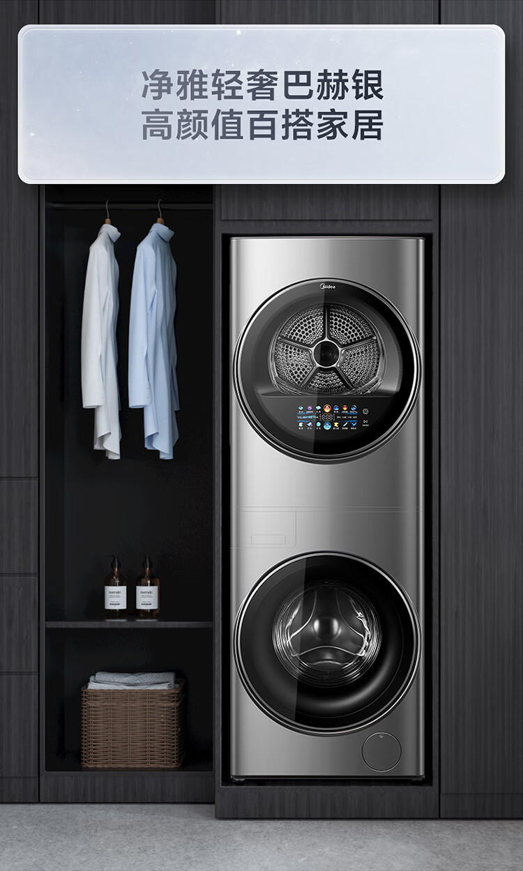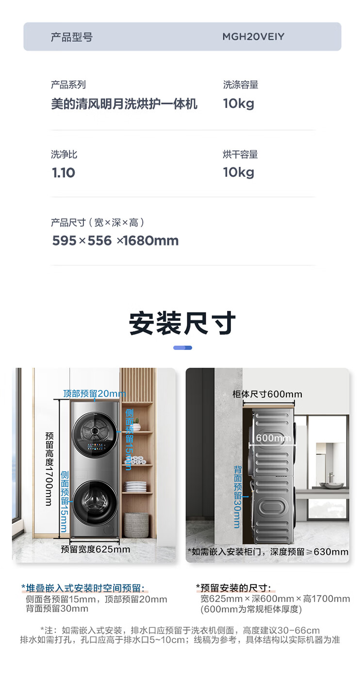 美的(Midea)1.1洗净比 清风明月洗烘护一体式洗烘套装 10KG滚筒洗衣机全自动热泵烘干机 超薄全嵌 MGH20VEIY