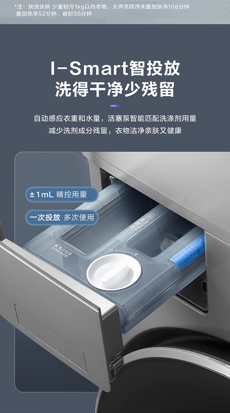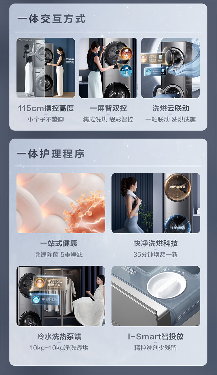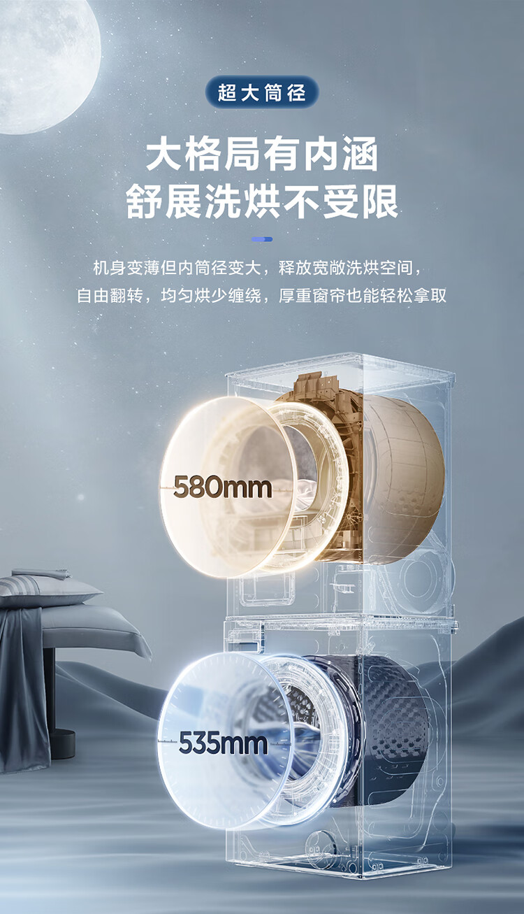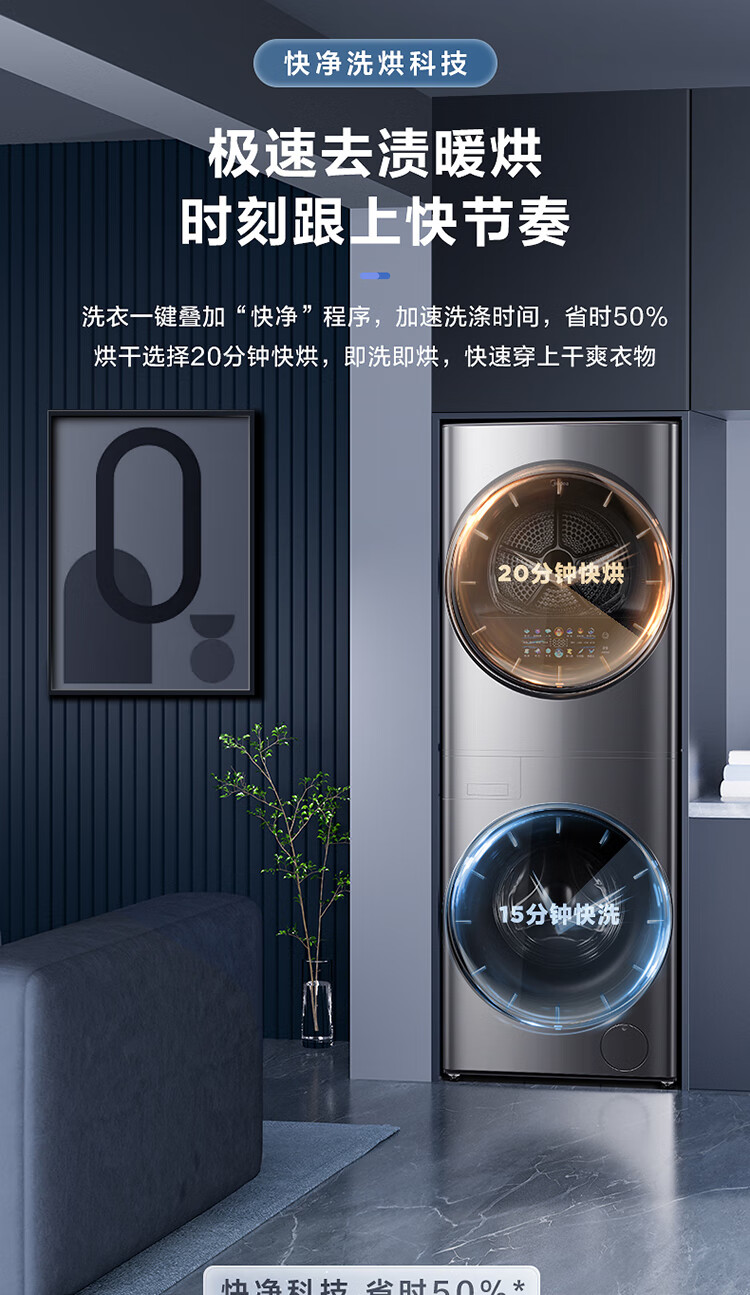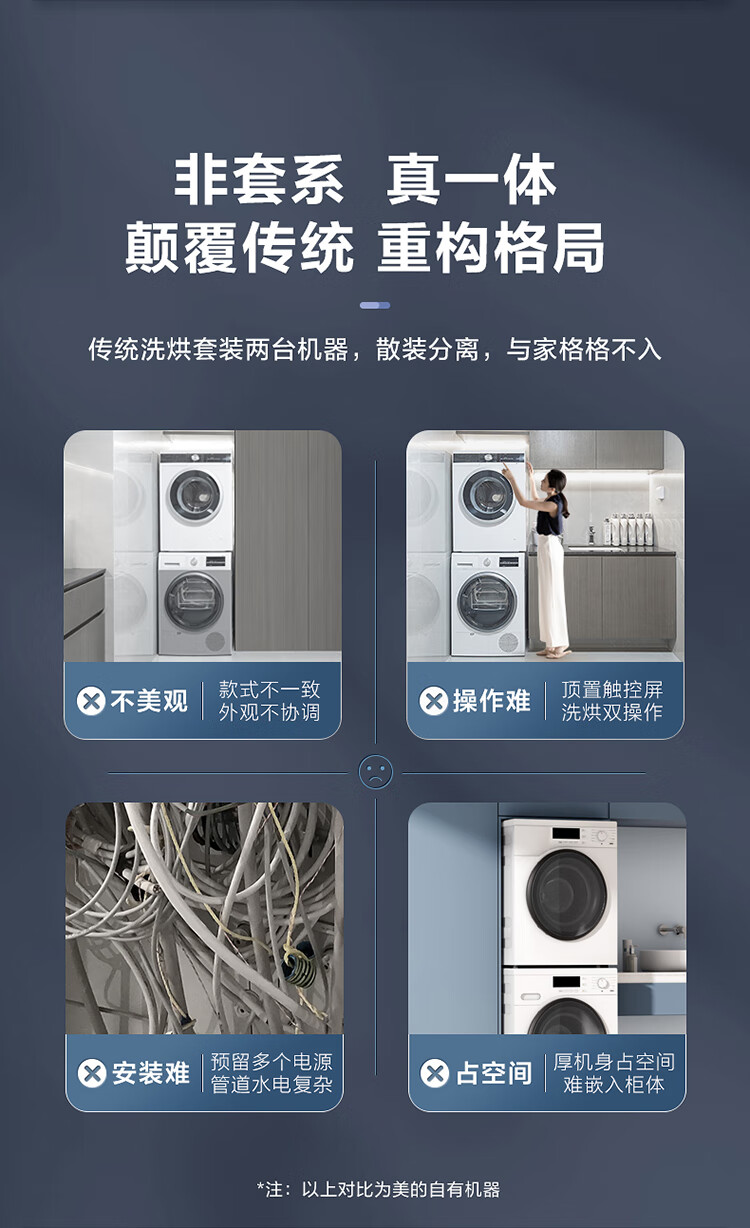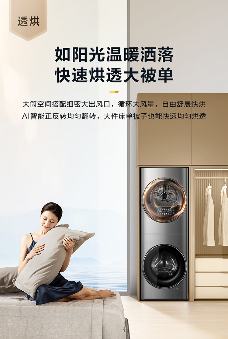 美的(Midea)1.1洗净比 清风明月洗烘护一体式洗烘套装 10KG滚筒洗衣机全自动热泵烘干机 超薄全嵌 MGH20VEIY