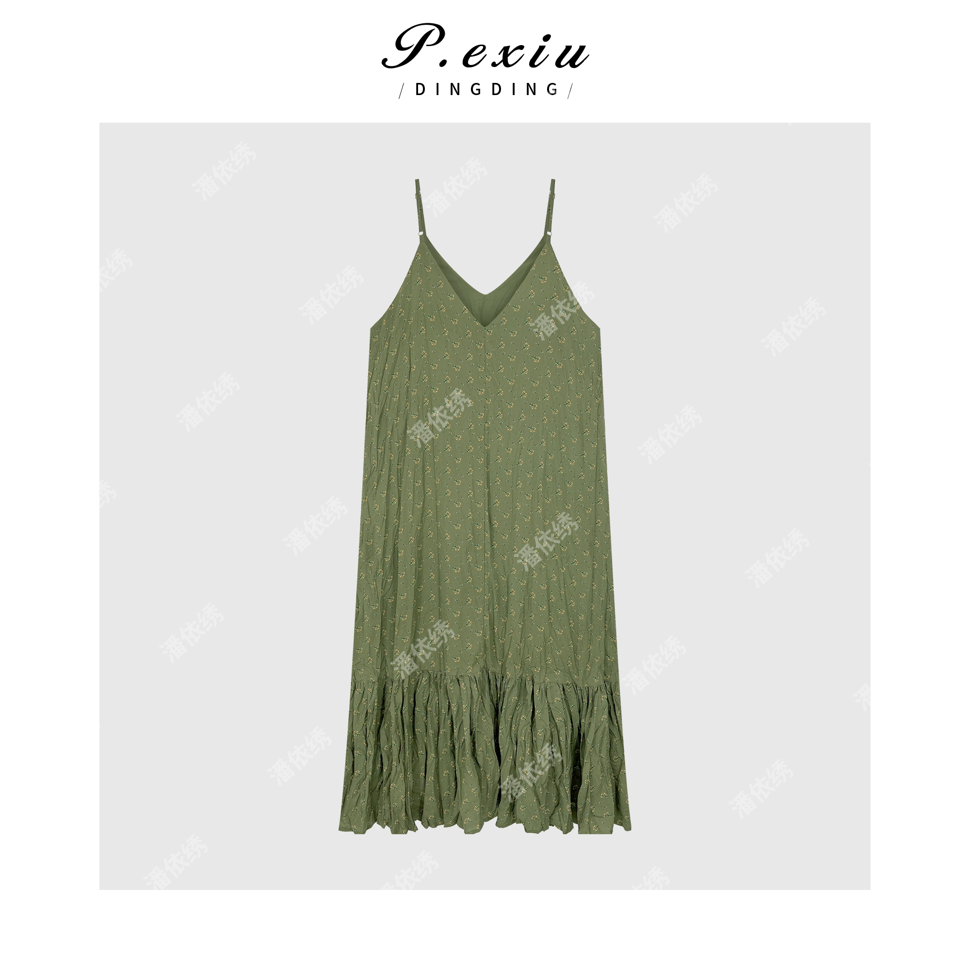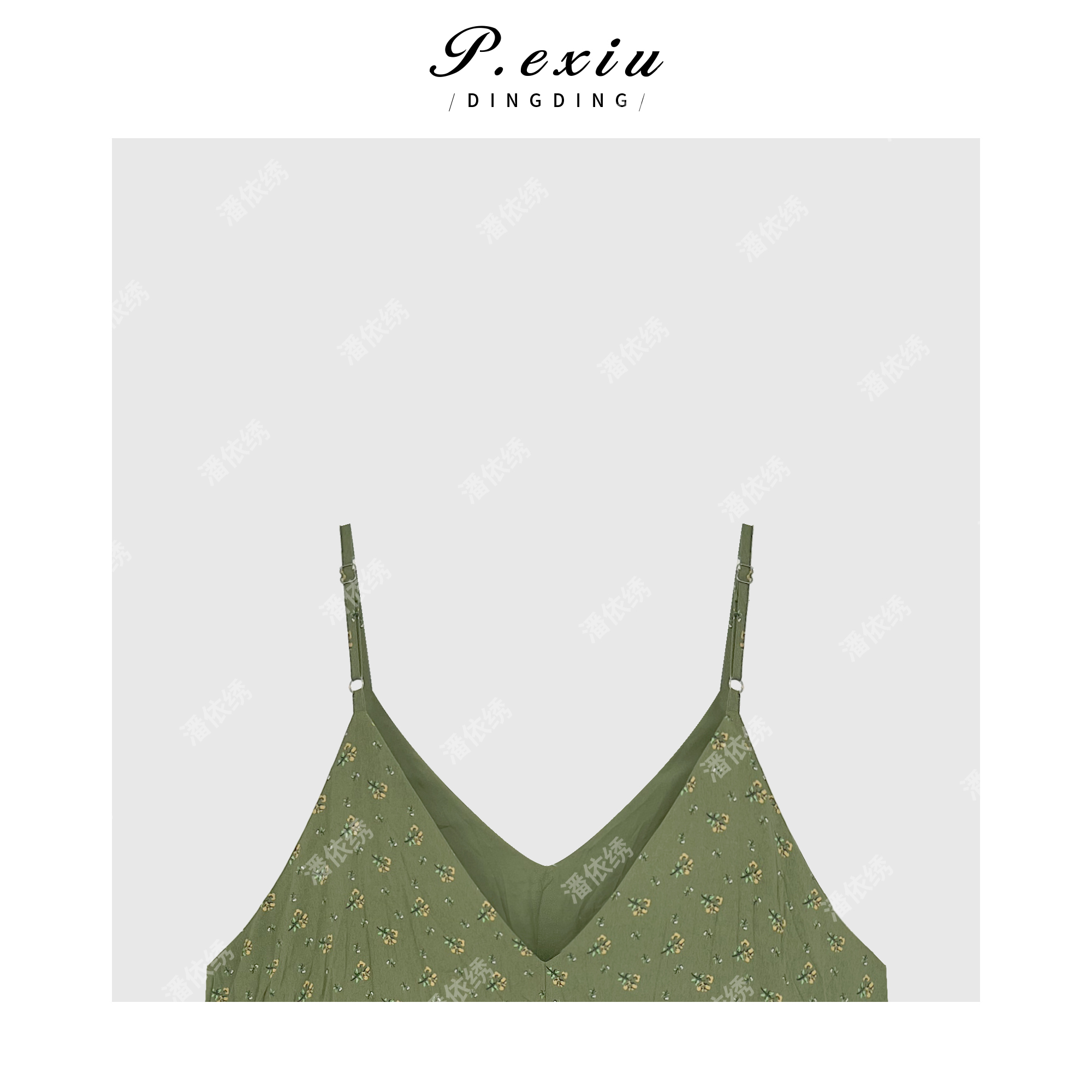 04-3潘依绣丁丁宠粉PanYiXiu/潘依绣【春日摇曳】碎花法式氛围感V领吊带连衣裙SH1713