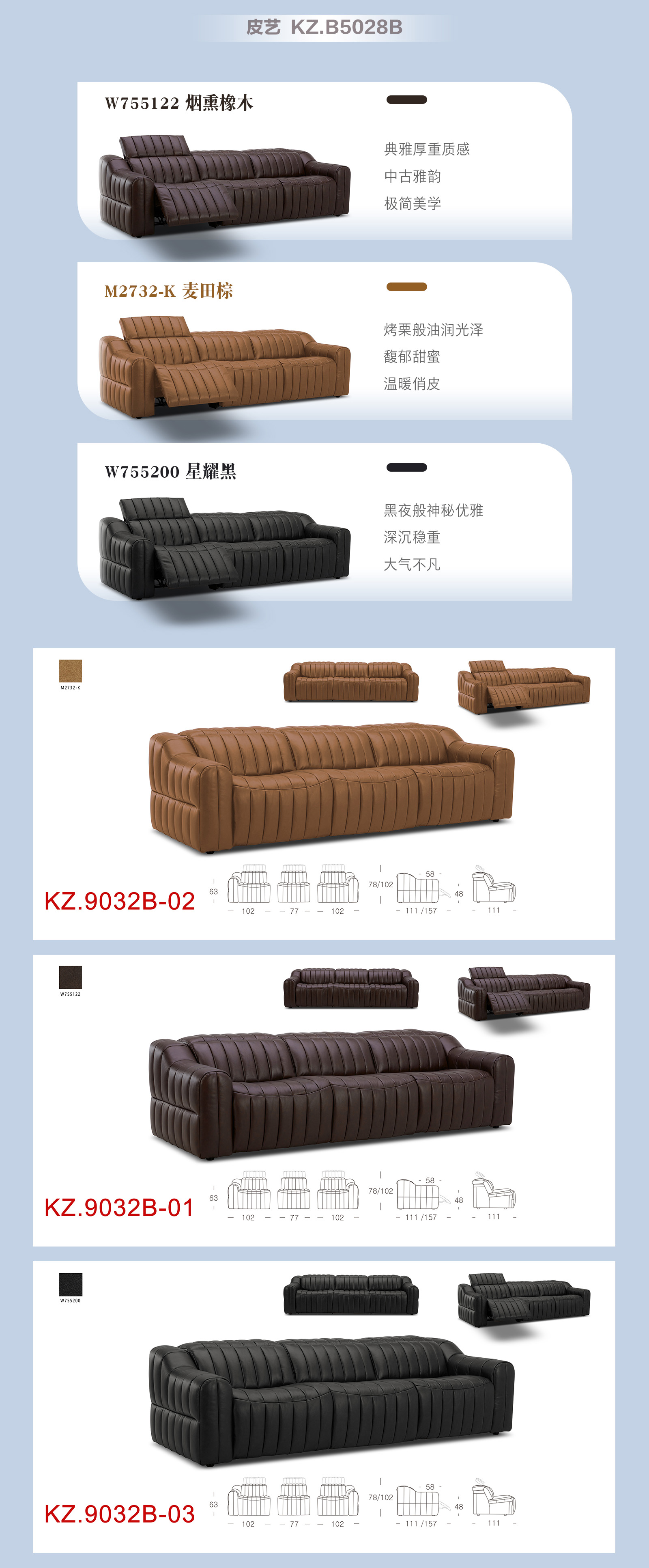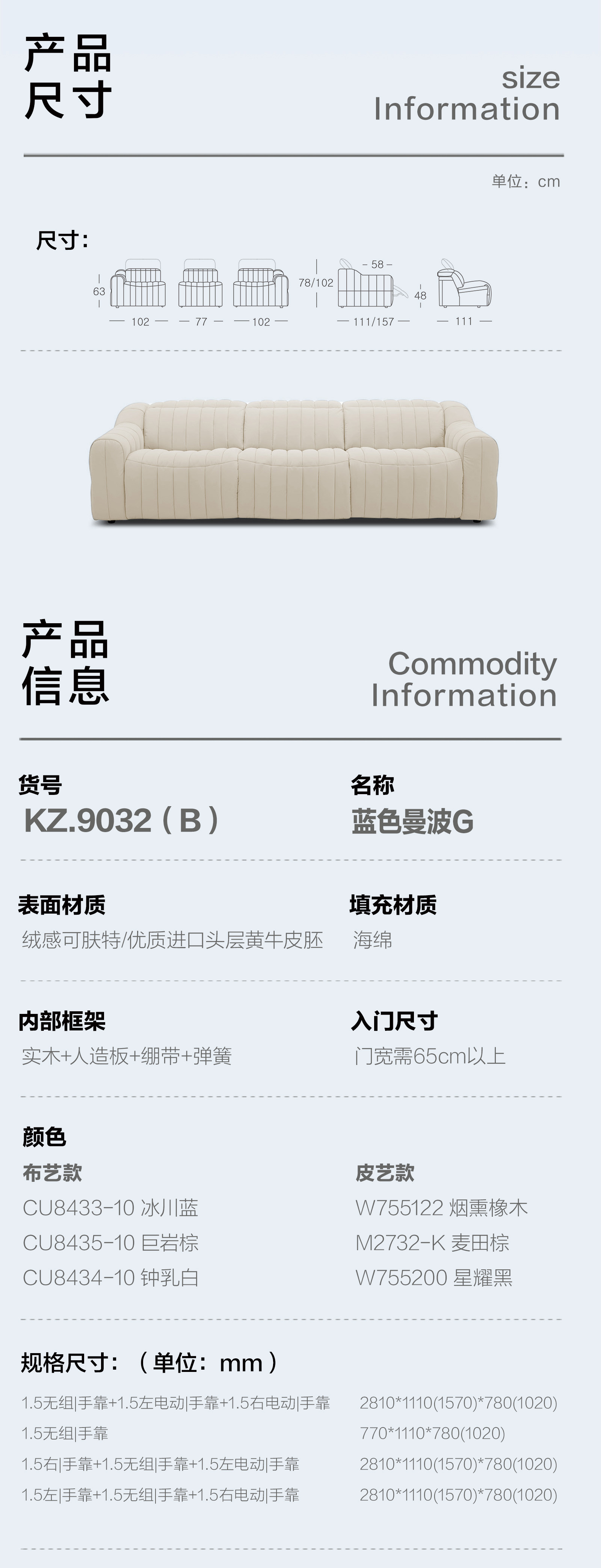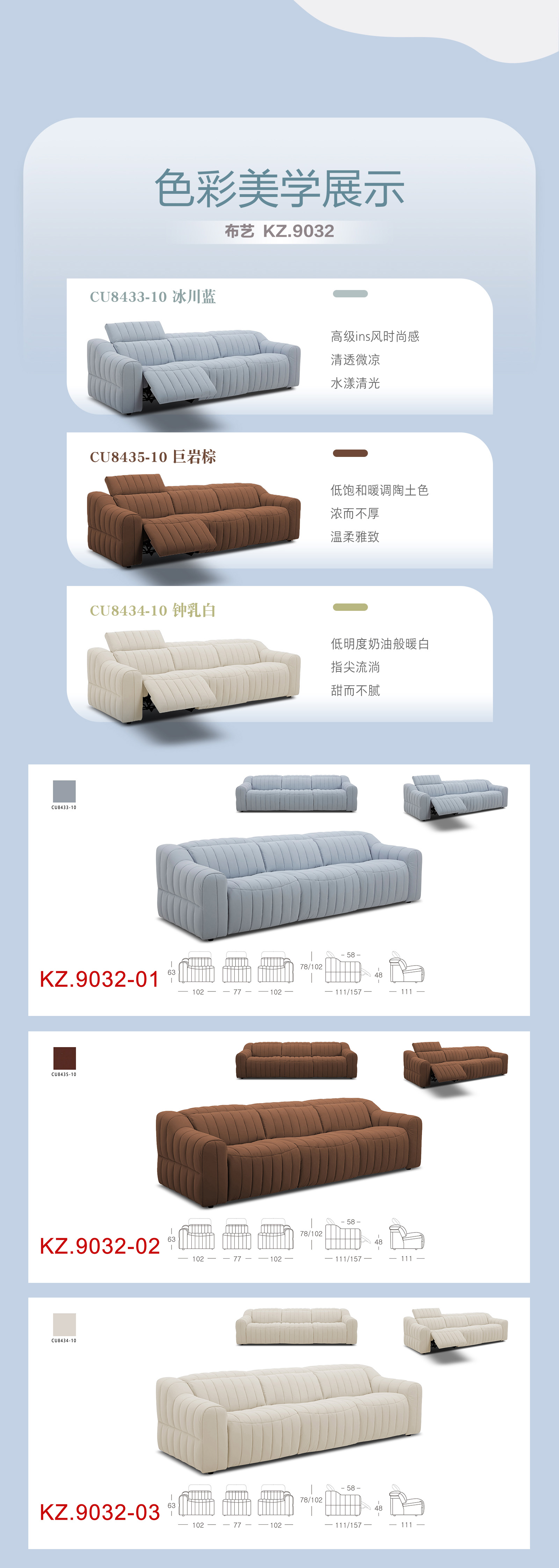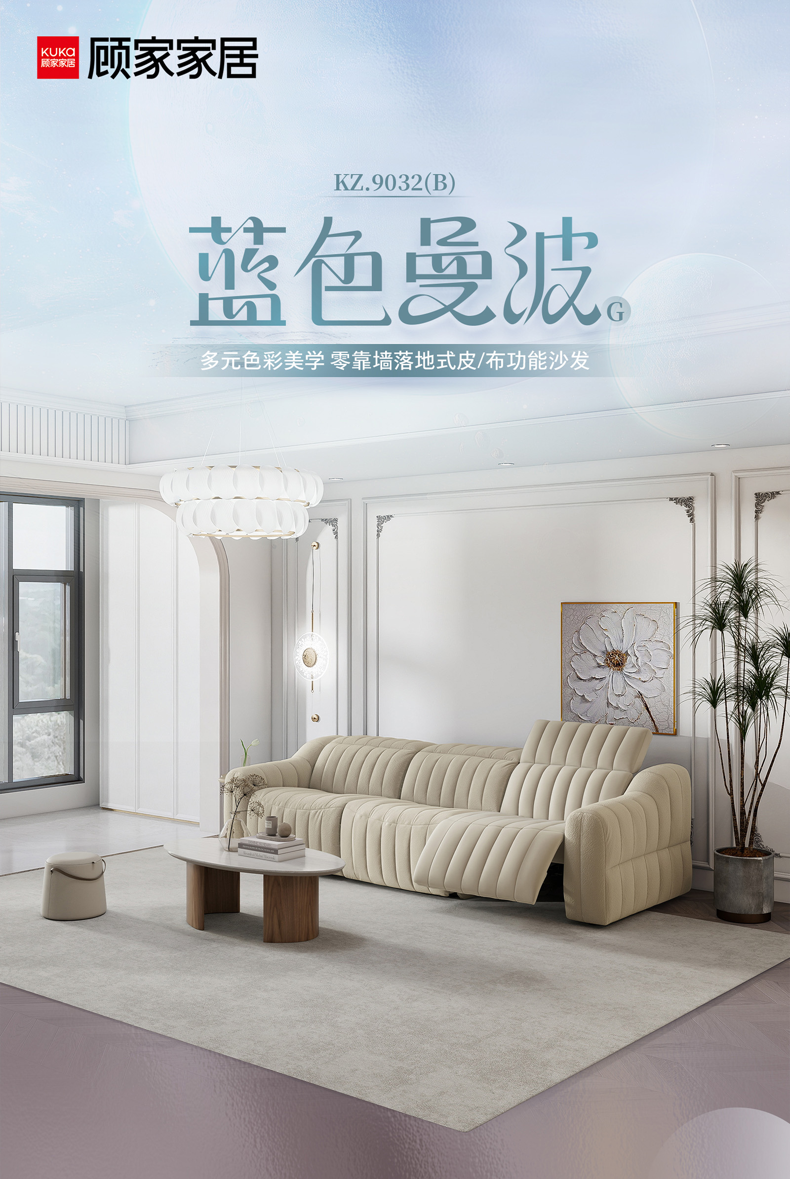 顾家家居整装 现代时尚 皮艺/布艺功能沙发 KZ.9032(B)蓝色曼波