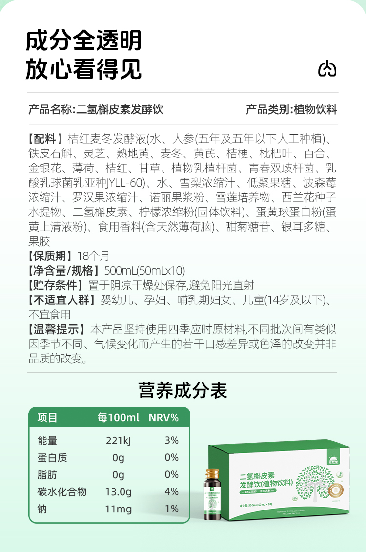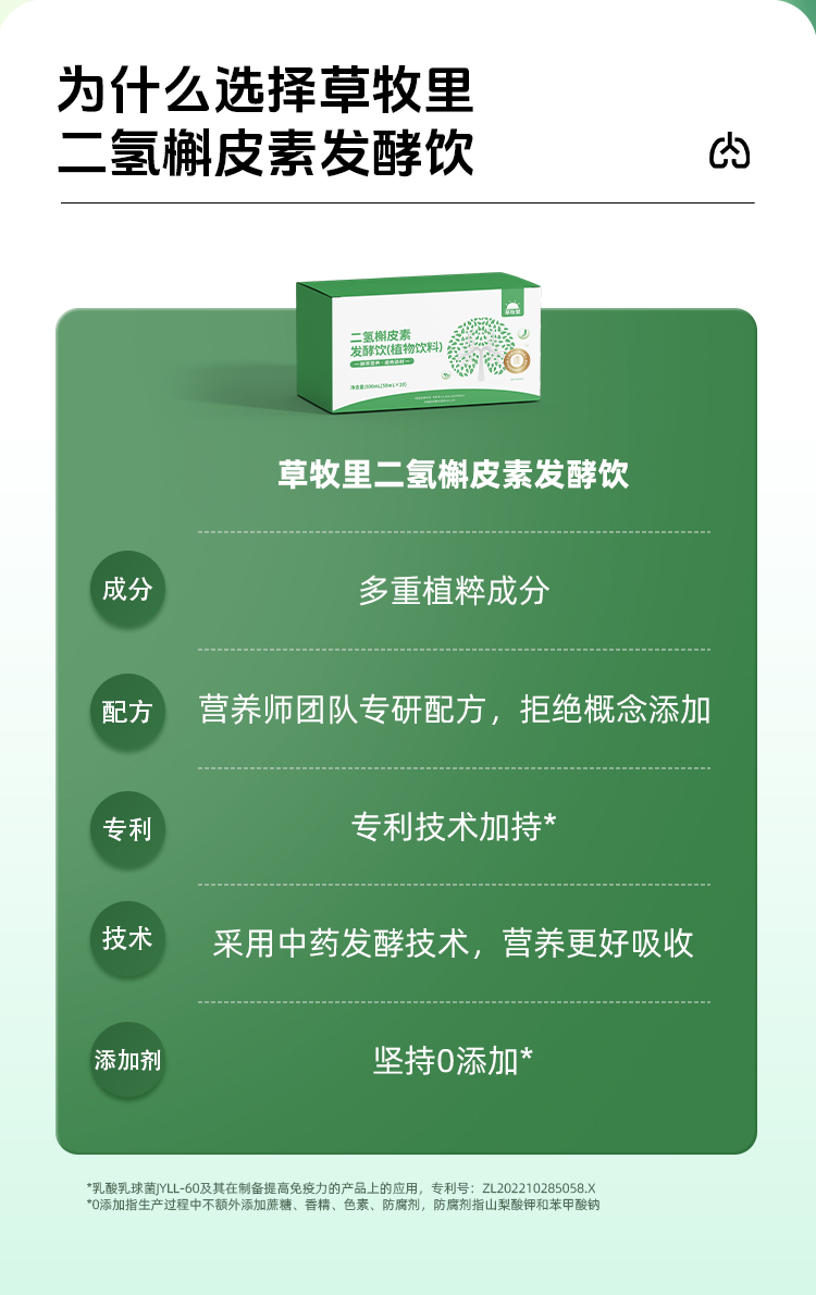 【长效呵护】草牧里 二氢槲皮素发酵饮 500ml(50ml*10)/盒 科学营养配比