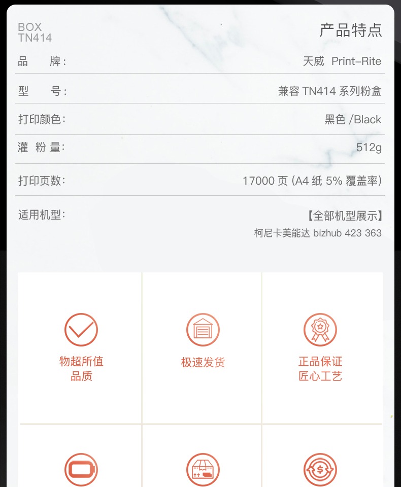 天威TN414适用于柯尼卡美能达复印机TN414打印机KONICA MINOLTA-423粉盒423 363大容量碳粉414墨粉423碳粉盒