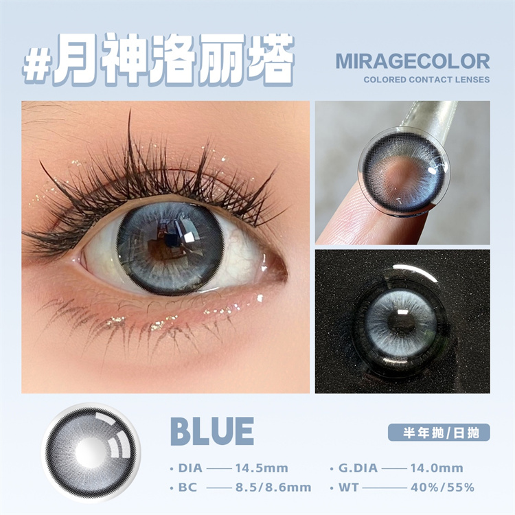 MIRAGE COLOR黎雾 月神洛丽塔 半年抛直径14.5mm混血美瞳 蓝色