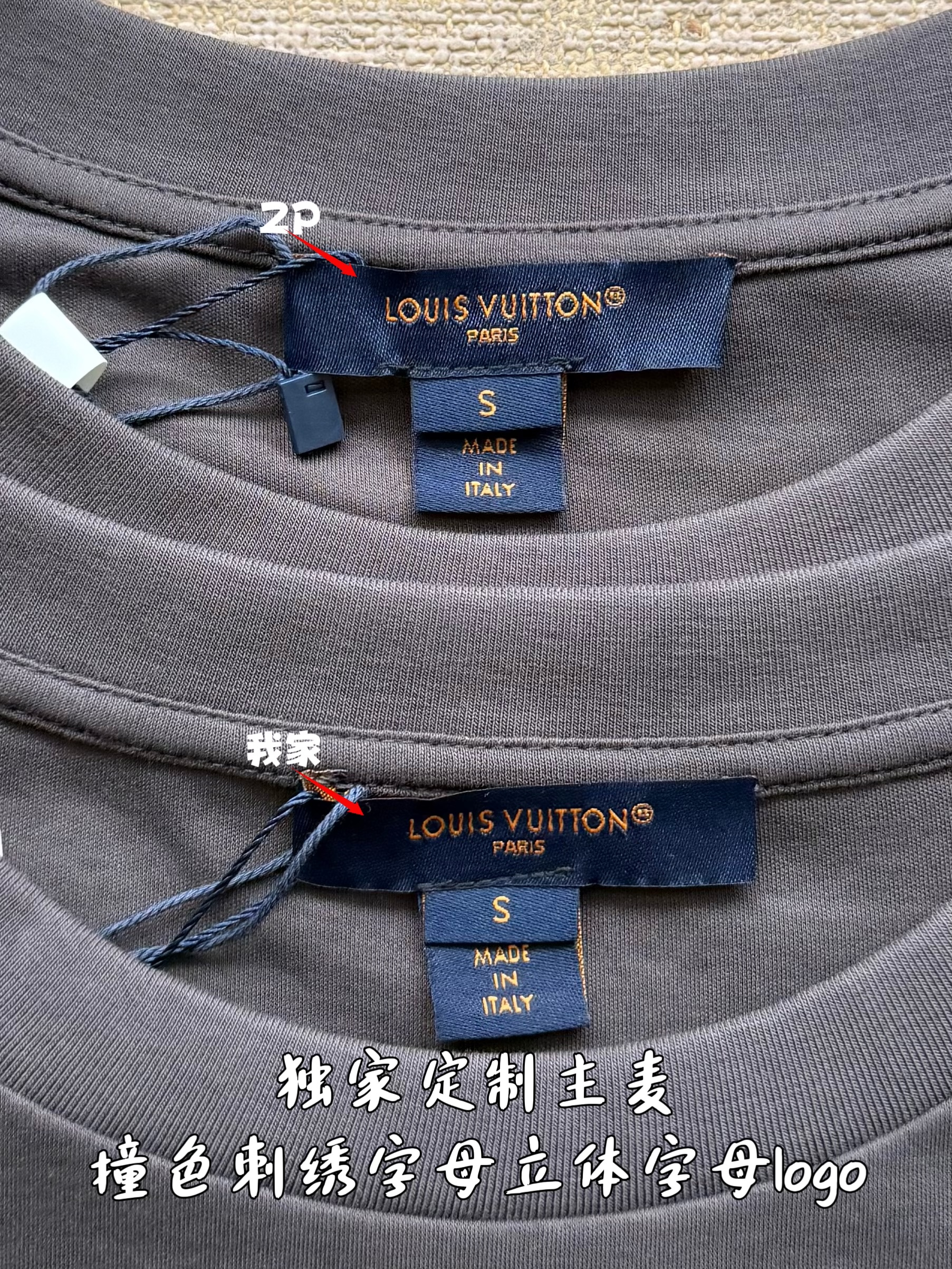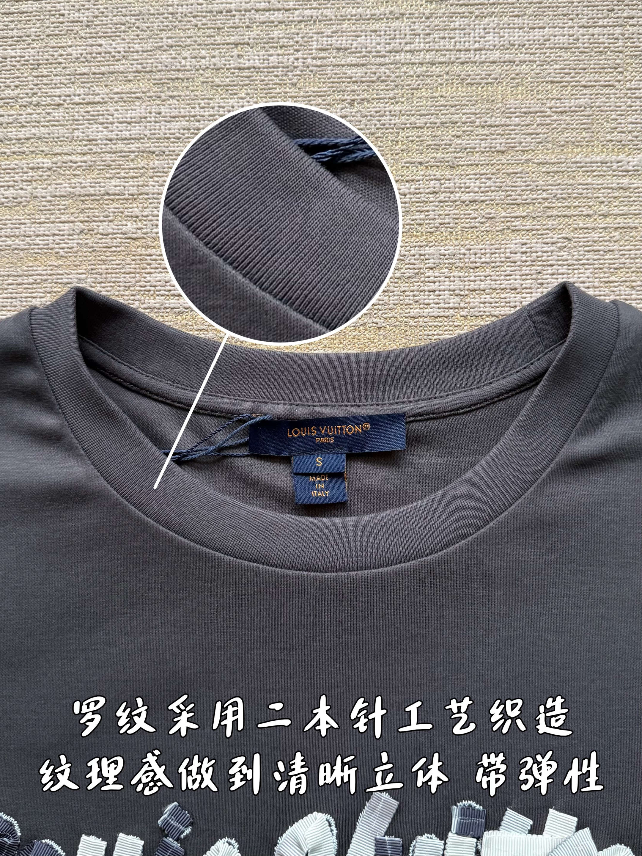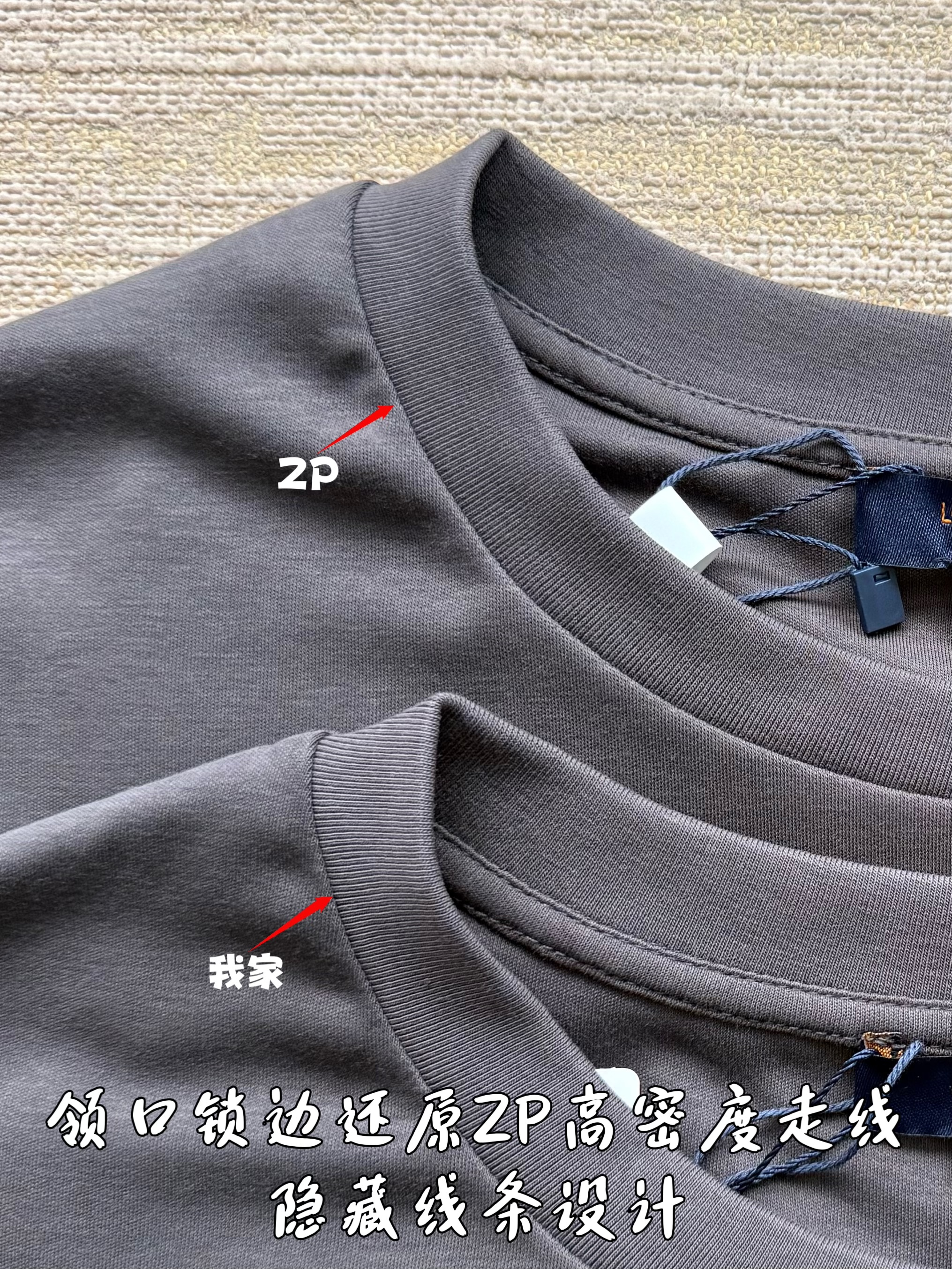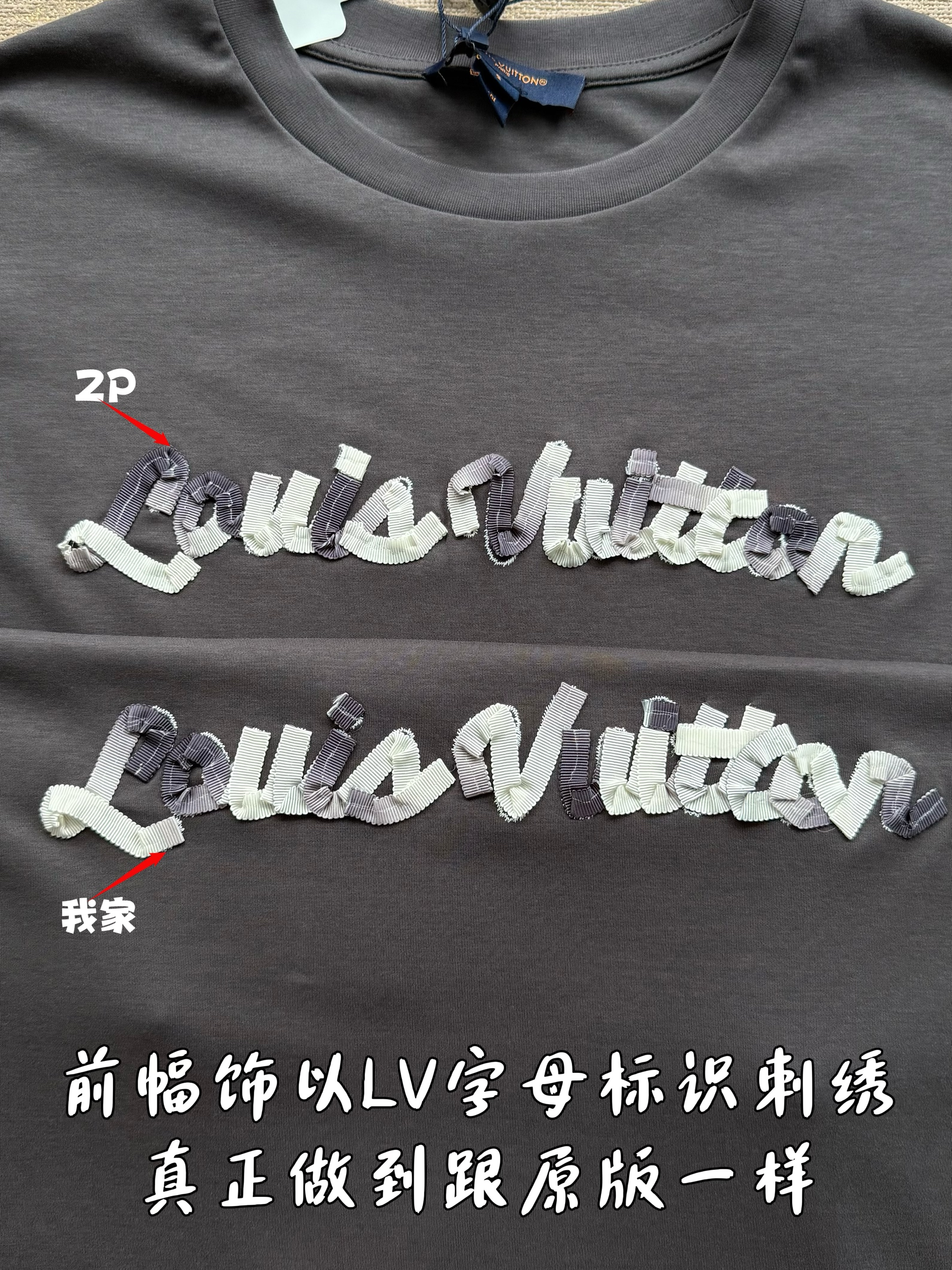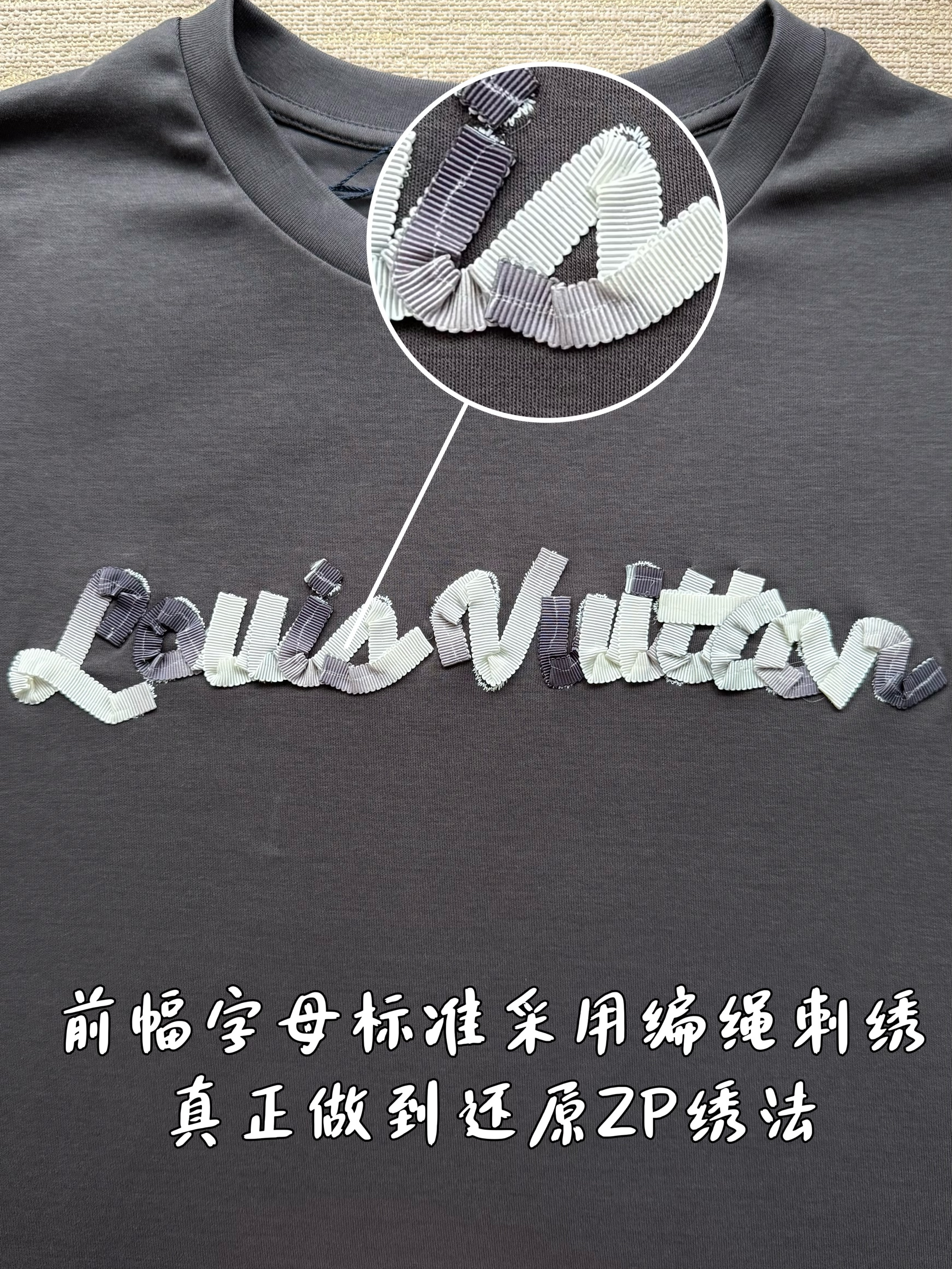 整件衣服11300购买ZP拆解打造,采用定制灰色棉质平纹针织面料,做到100%全棉进口纱线,意大利制造,前幅饰以LV刺绣字母标识提花,定织标志性罗纹领口,超紧密度局部编织,袖口 下摆双层锁边高密度走线,