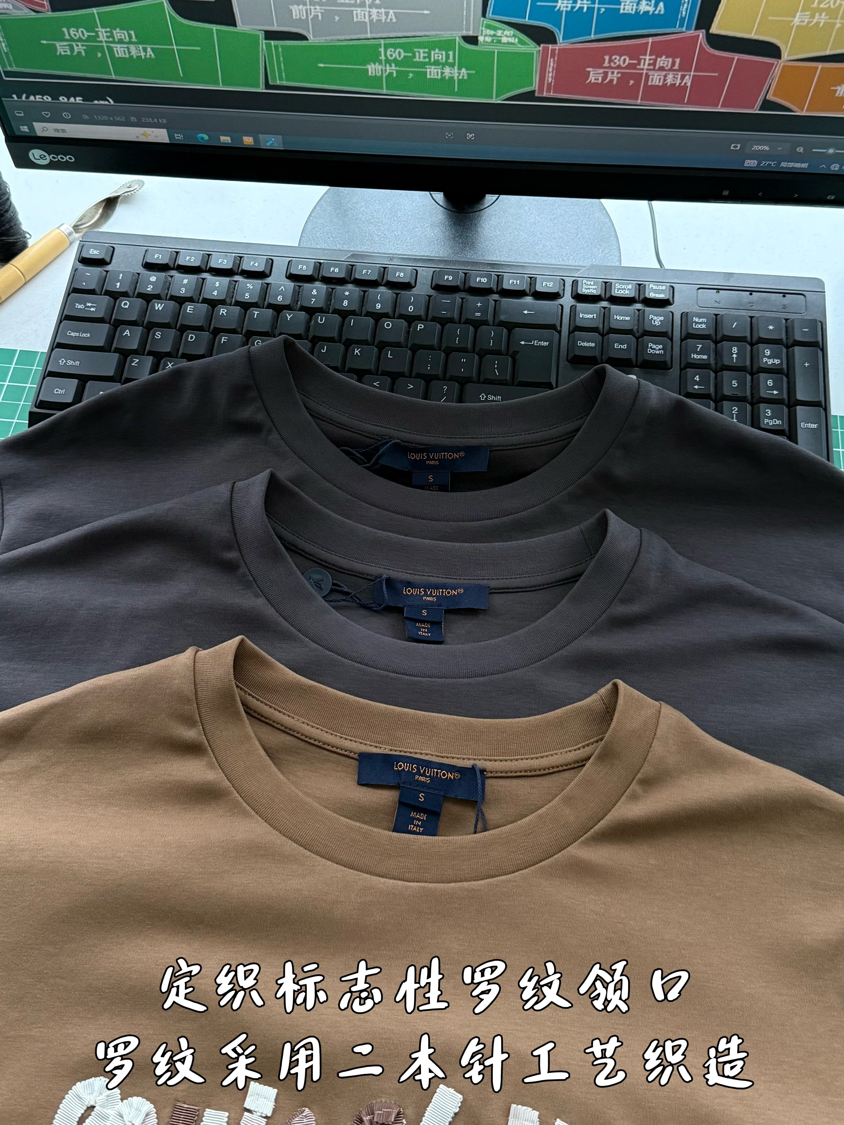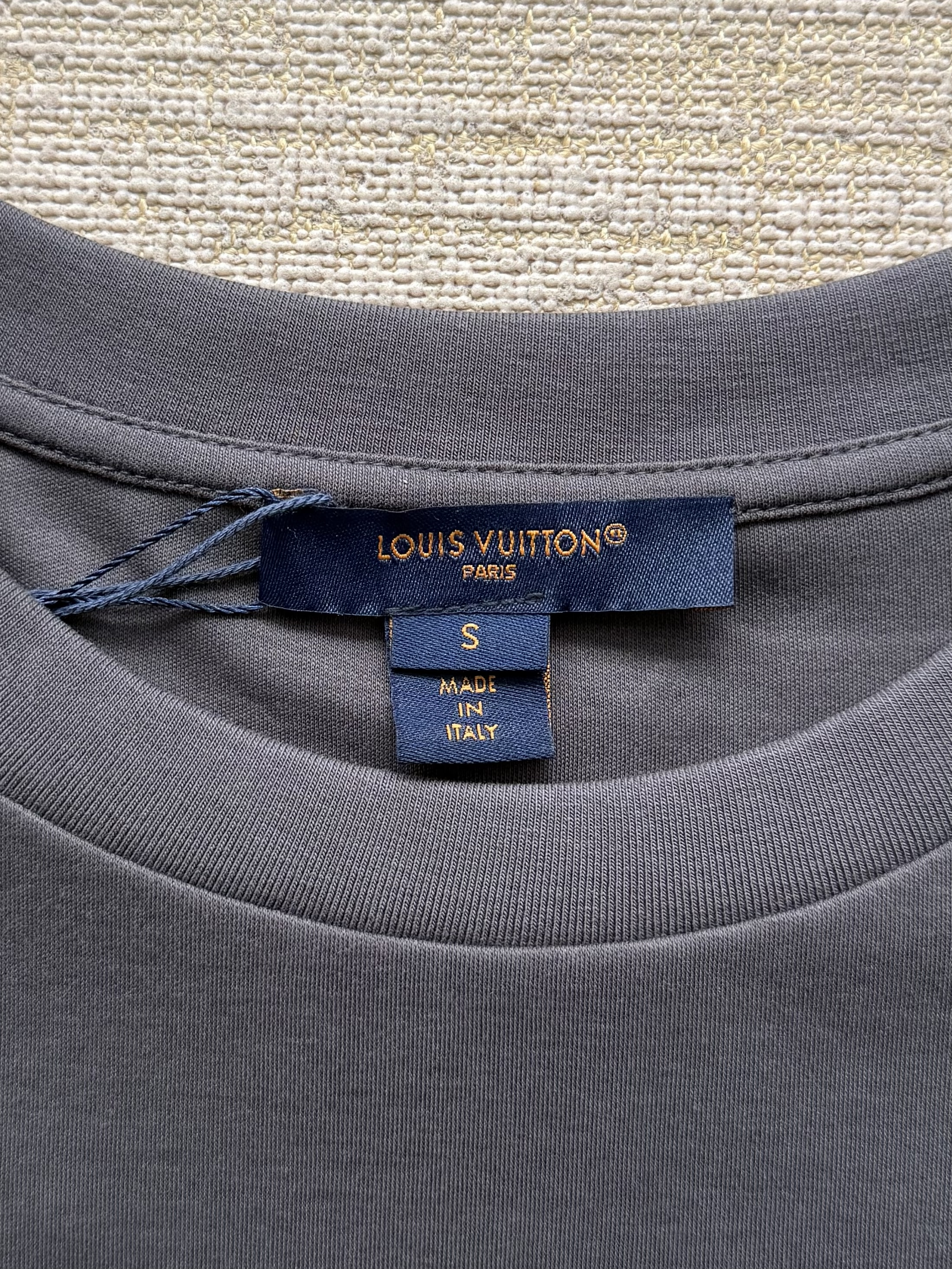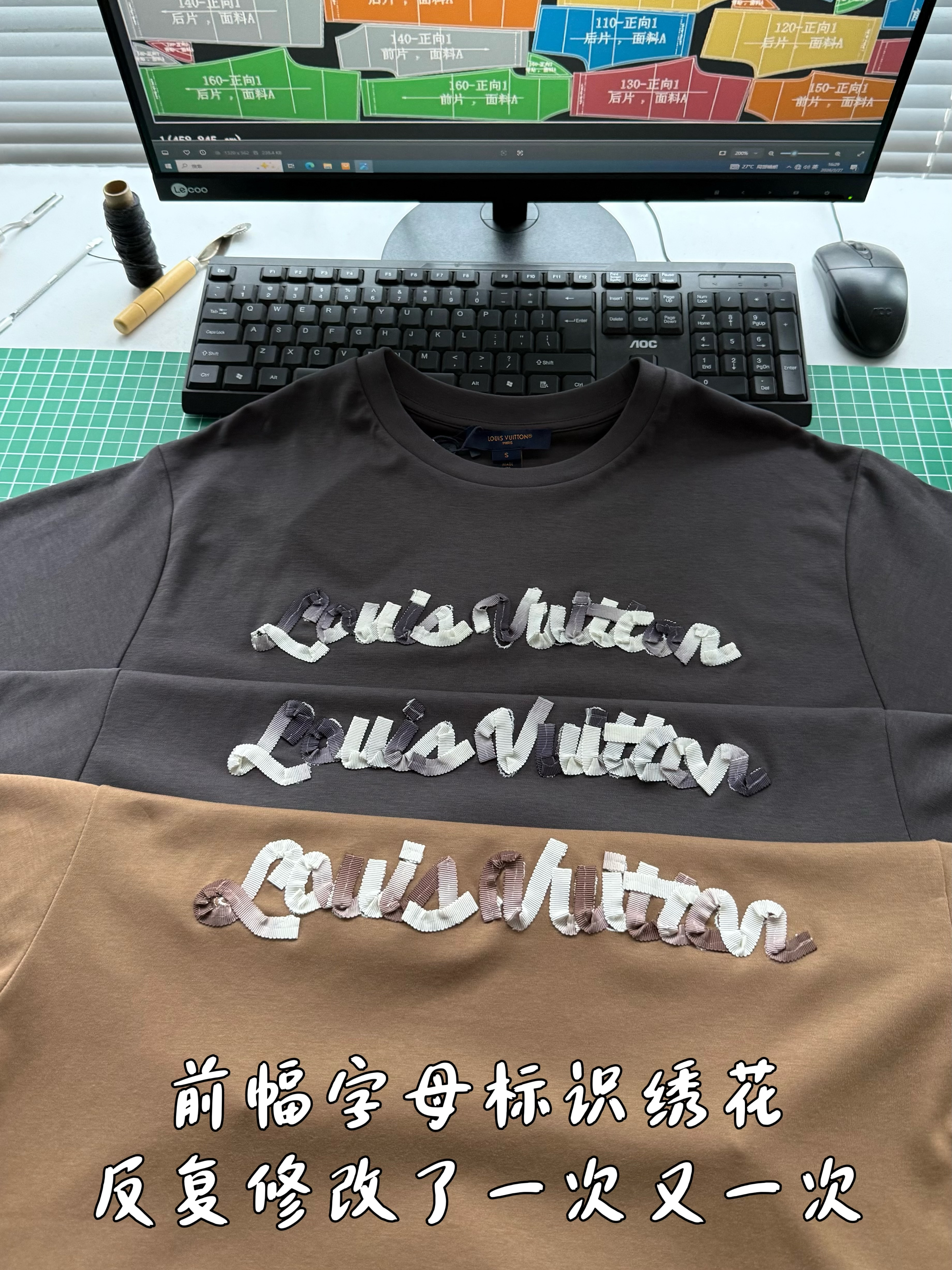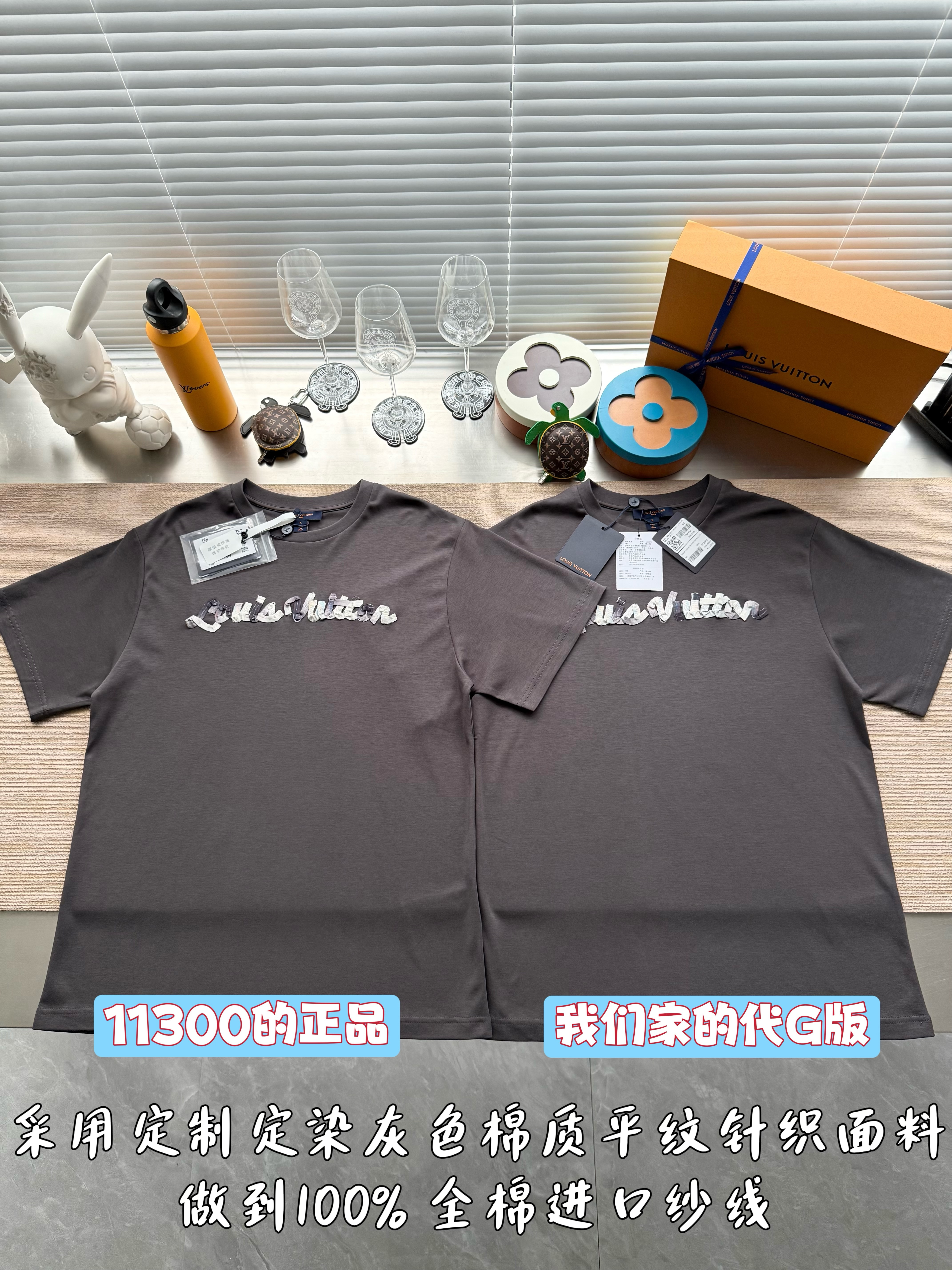 整件衣服11300购买ZP拆解打造,采用定制灰色棉质平纹针织面料,做到100%全棉进口纱线,意大利制造,前幅饰以LV刺绣字母标识提花,定织标志性罗纹领口,超紧密度局部编织,袖口 下摆双层锁边高密度走线,