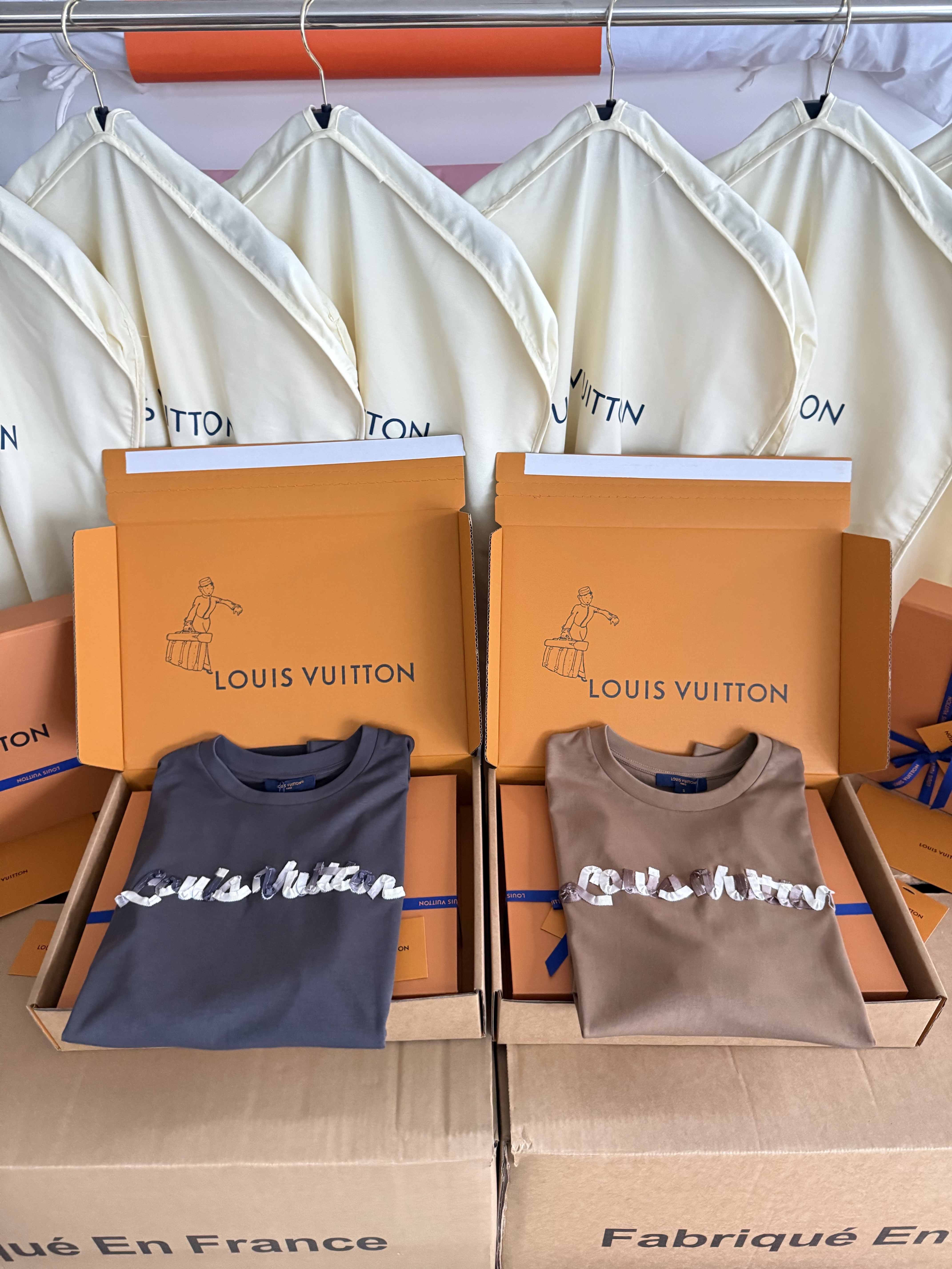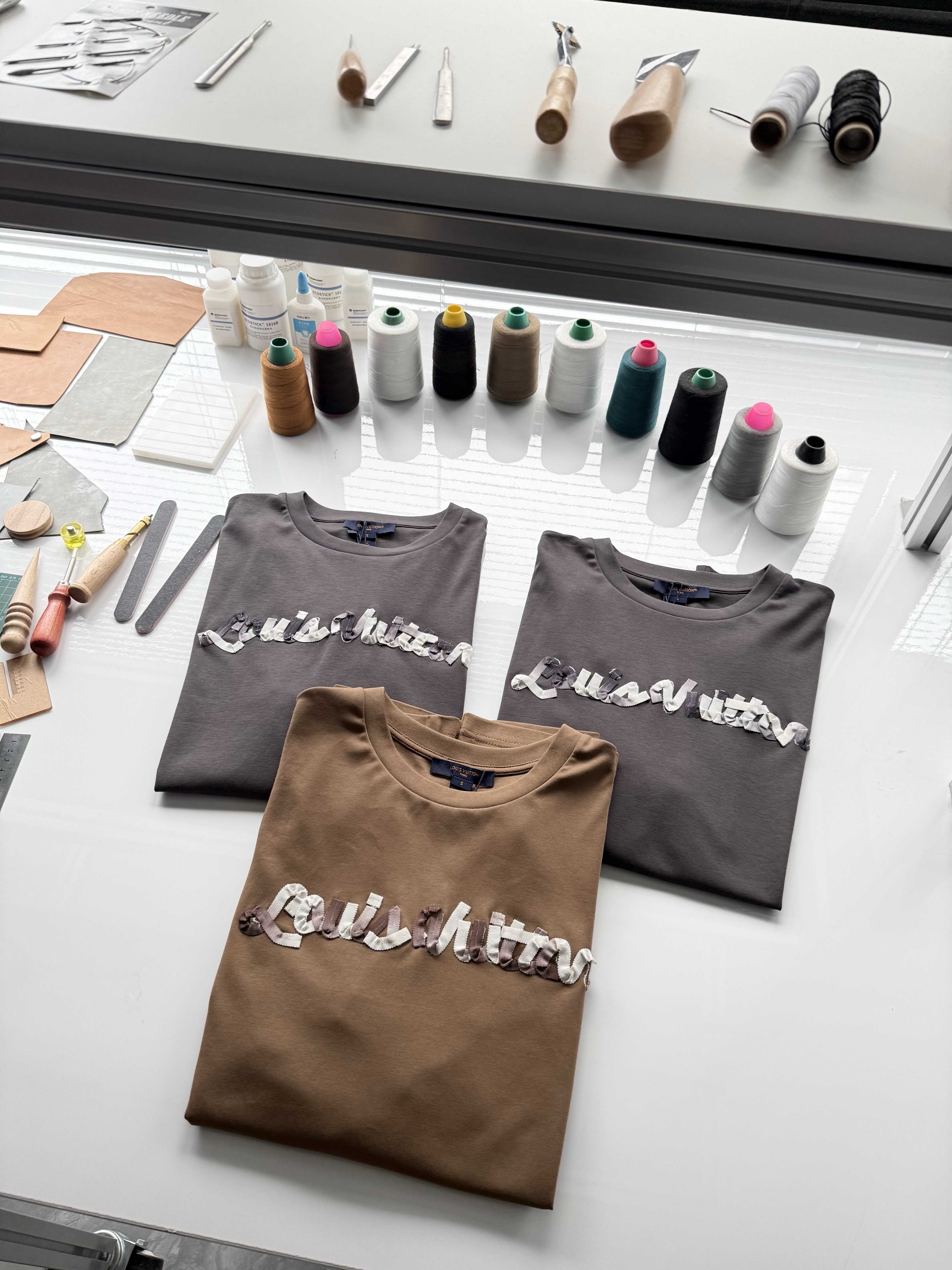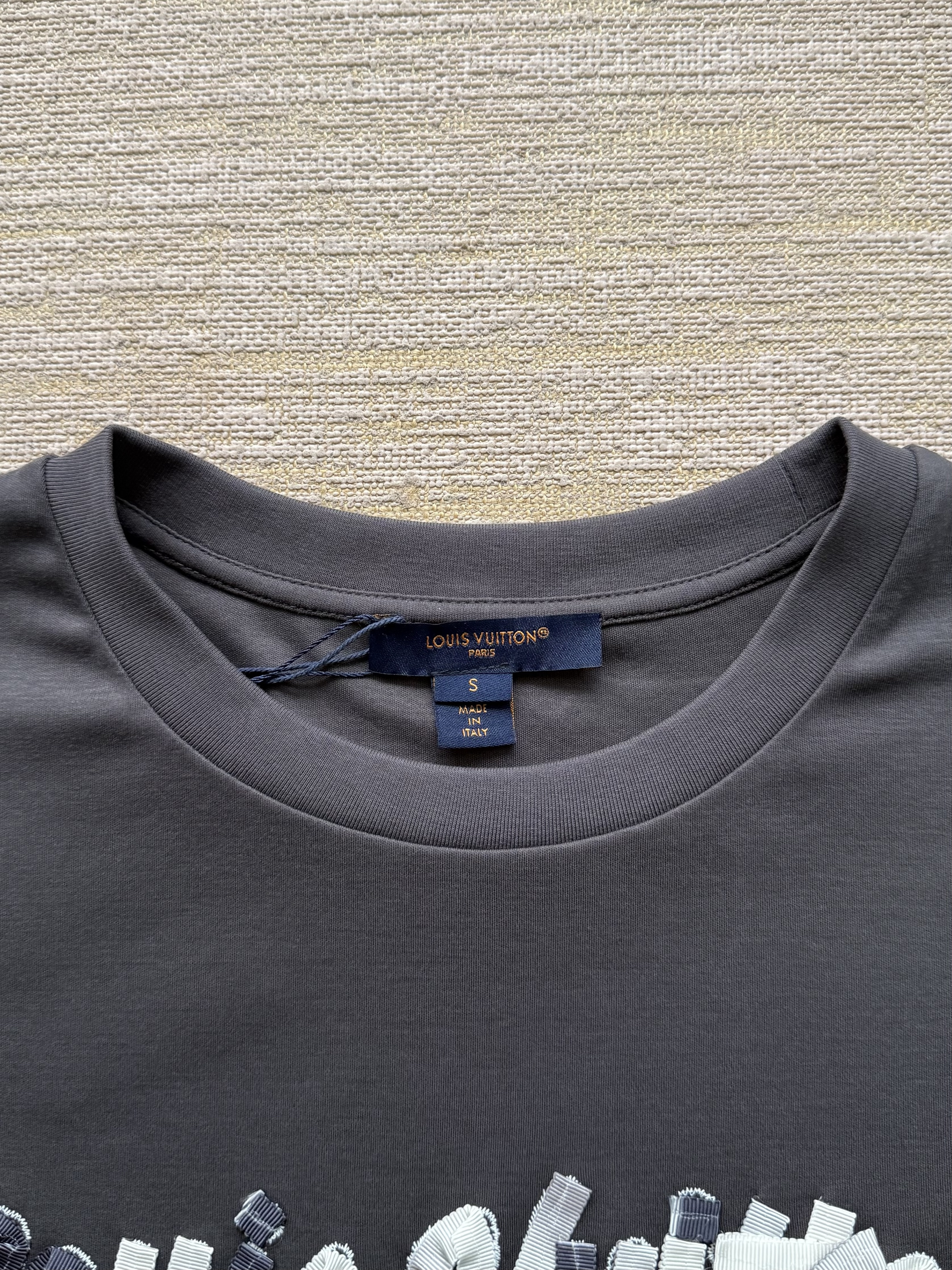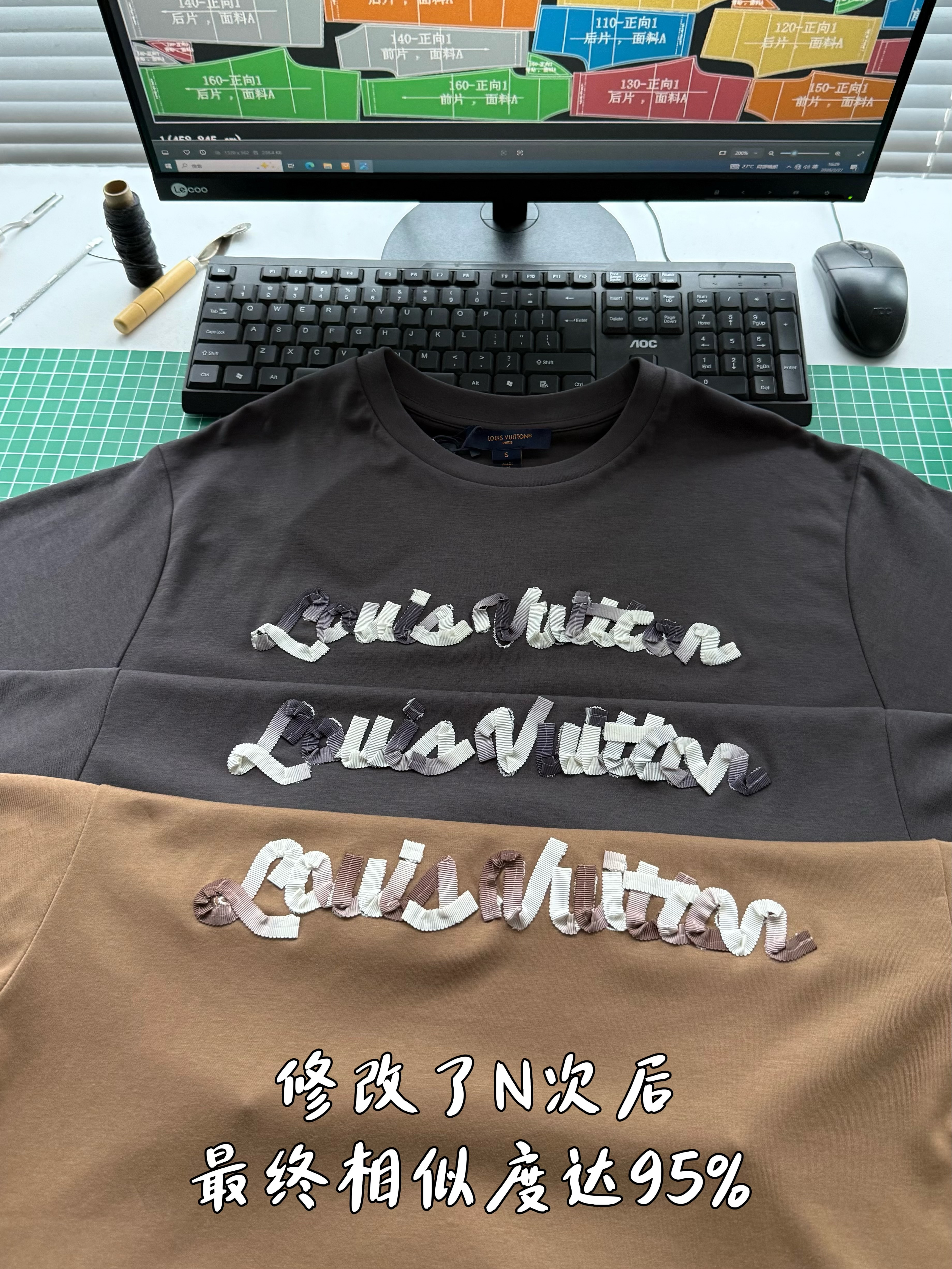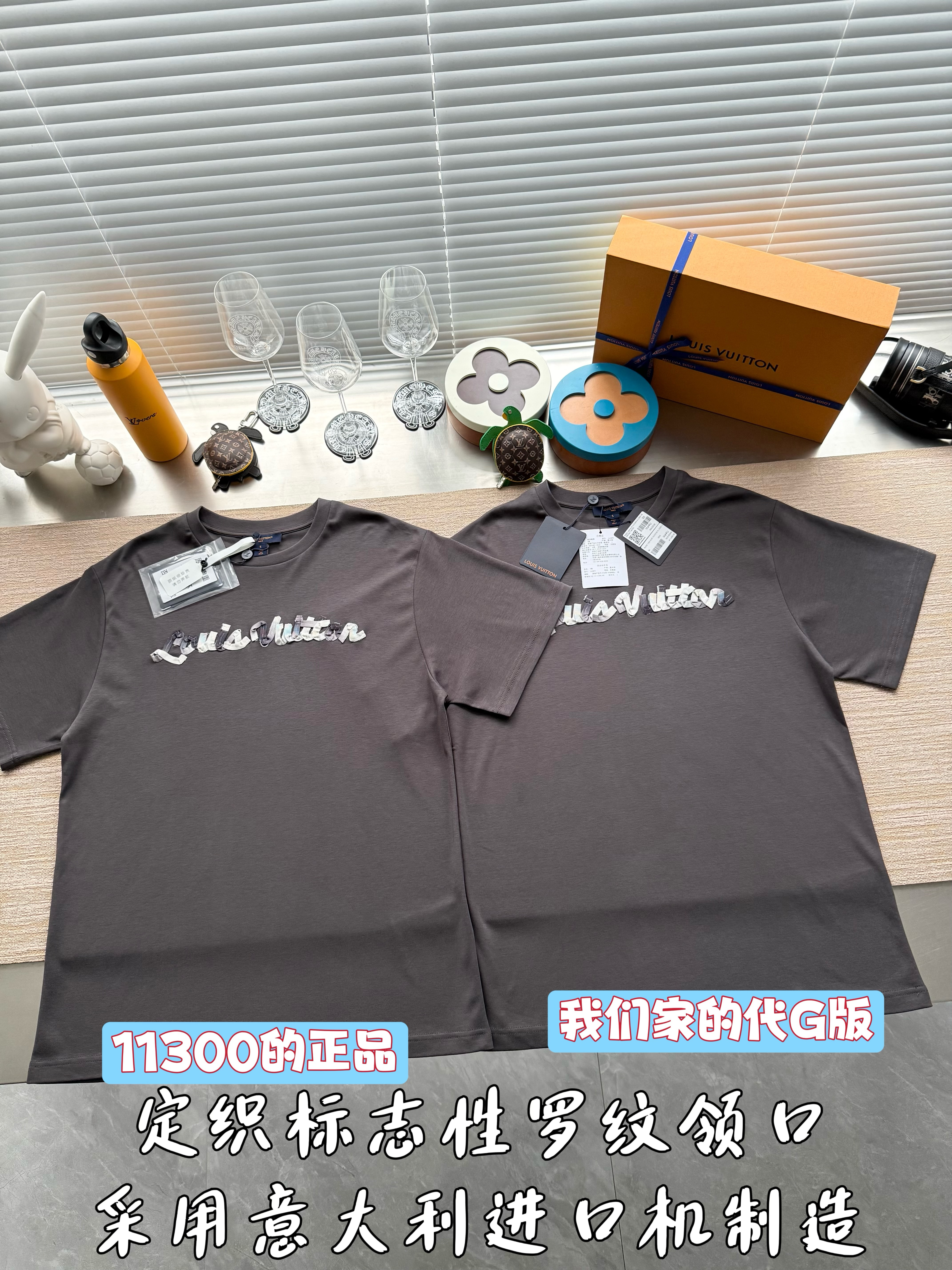 整件衣服11300购买ZP拆解打造,采用定制灰色棉质平纹针织面料,做到100%全棉进口纱线,意大利制造,前幅饰以LV刺绣字母标识提花,定织标志性罗纹领口,超紧密度局部编织,袖口 下摆双层锁边高密度走线,