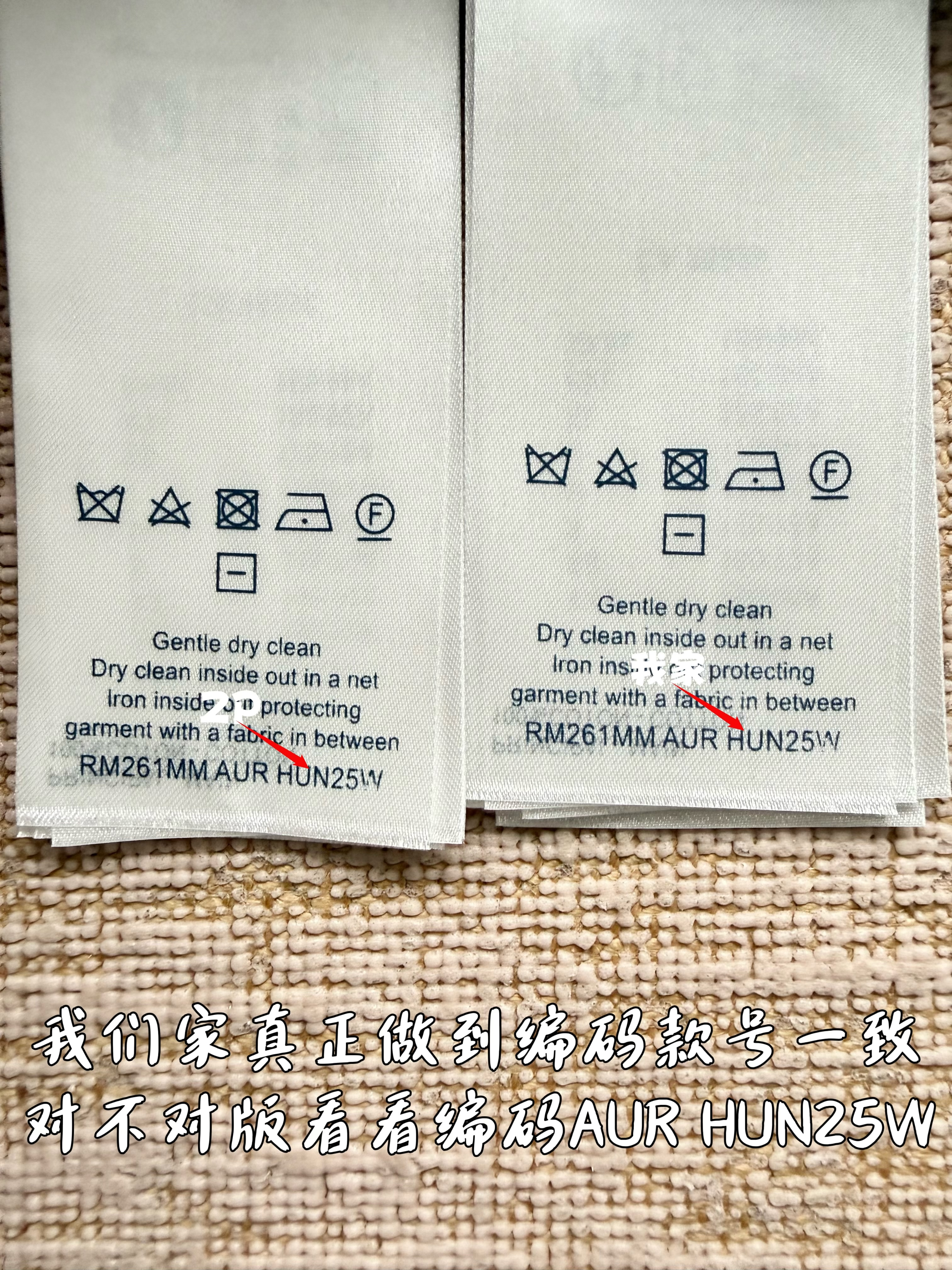 印刷合格证货号1AJHFU 唯一对版✅ 洗水麦编码对应吊牌编码AUR HUN25W 合格证货号 吊牌编码 洗水麦编码做到跟原版一致‼️