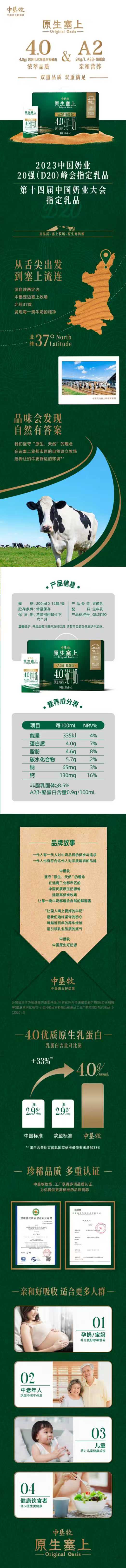 中垦牧原生塞上4.0A2β酪蛋白纯牛奶 商品图3