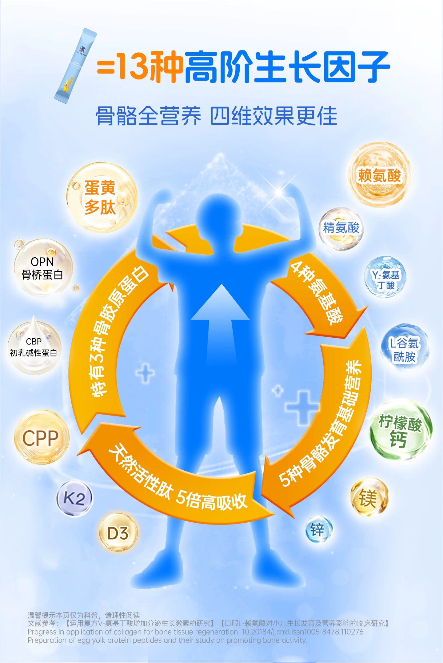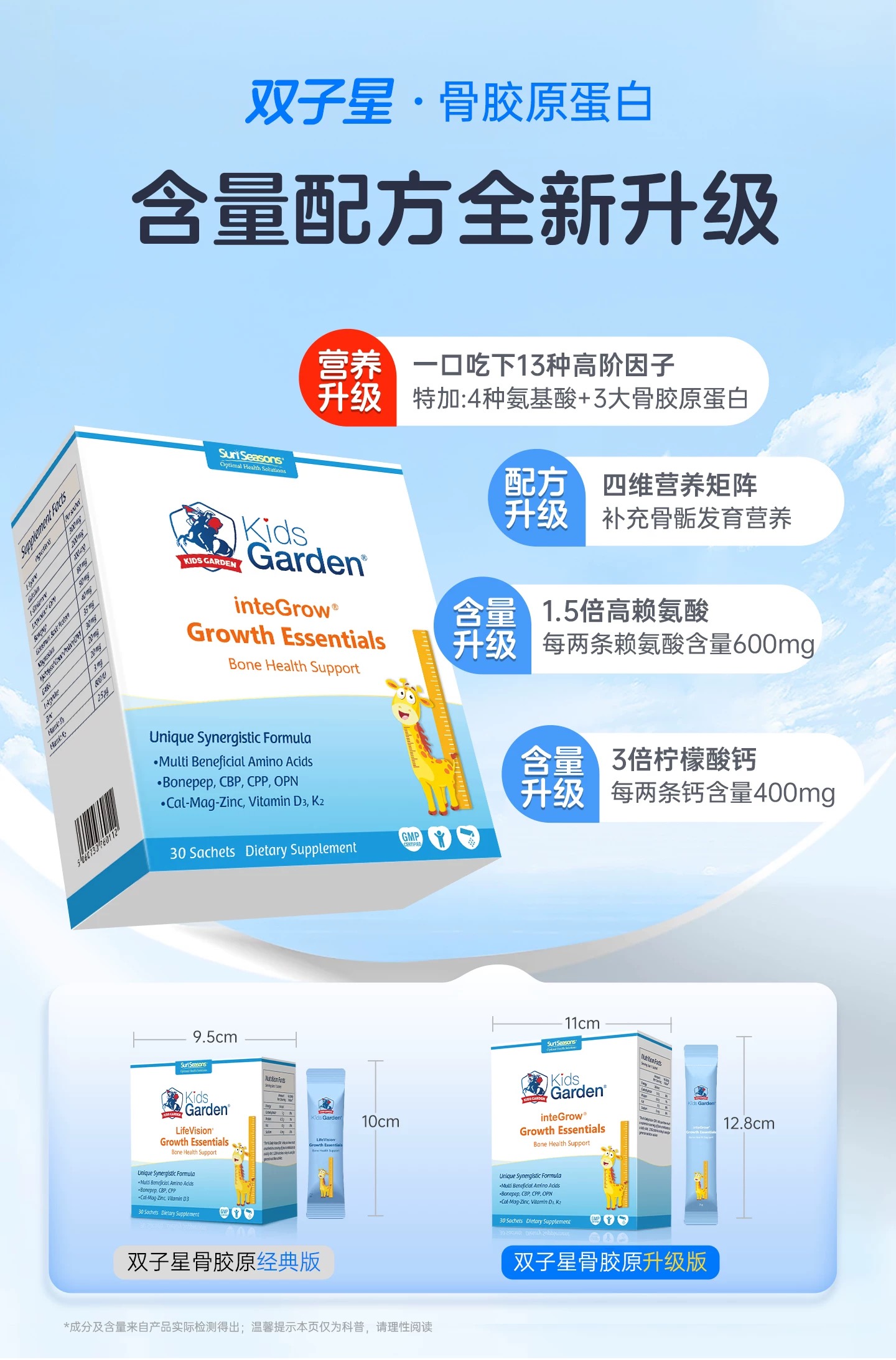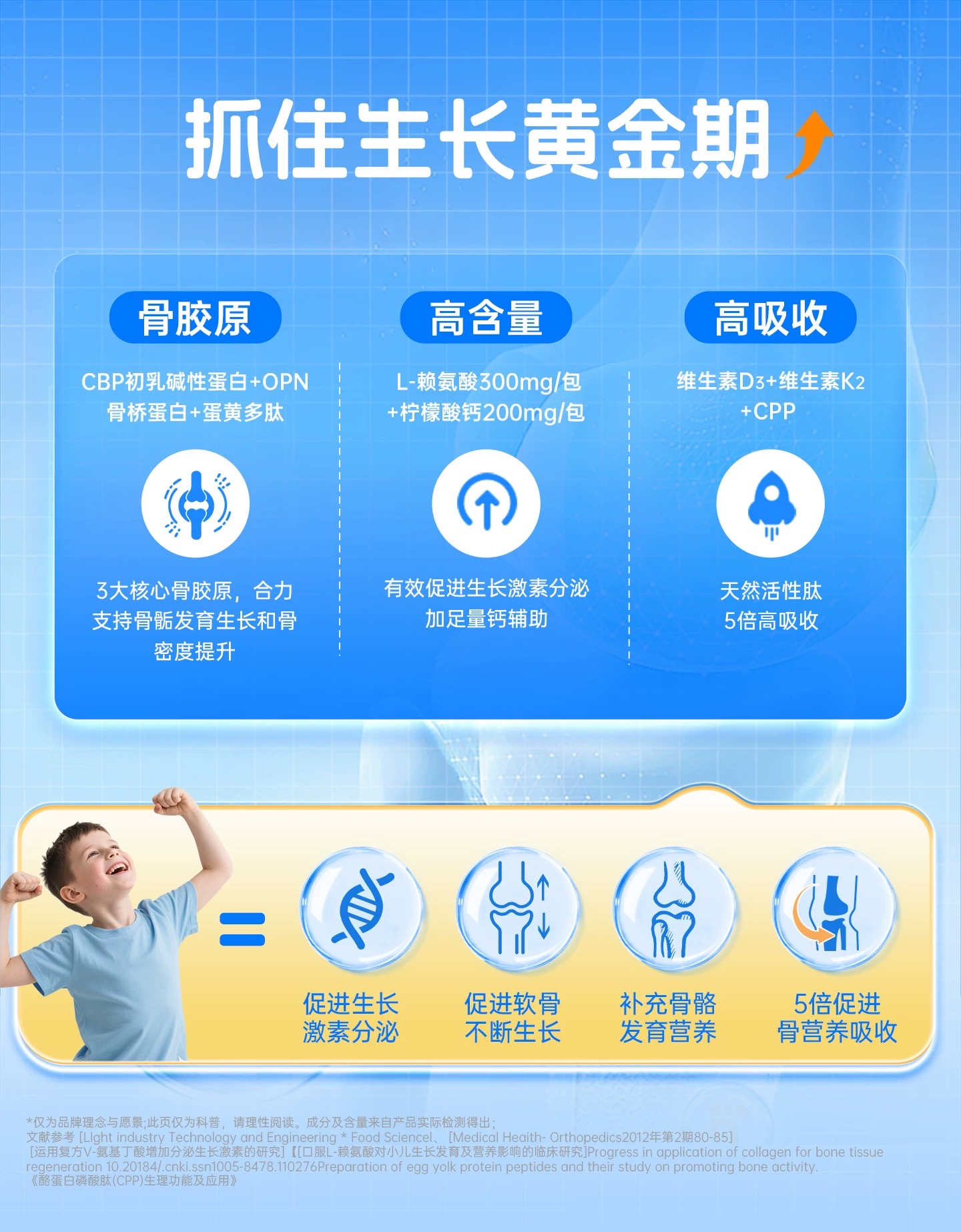 【买三赠一】(临期26年11月到期)兰骑士步步高升小蓝条青少年生长儿童宝宝钙镁锌VD3补钙赖氨酸蓝30条/盒