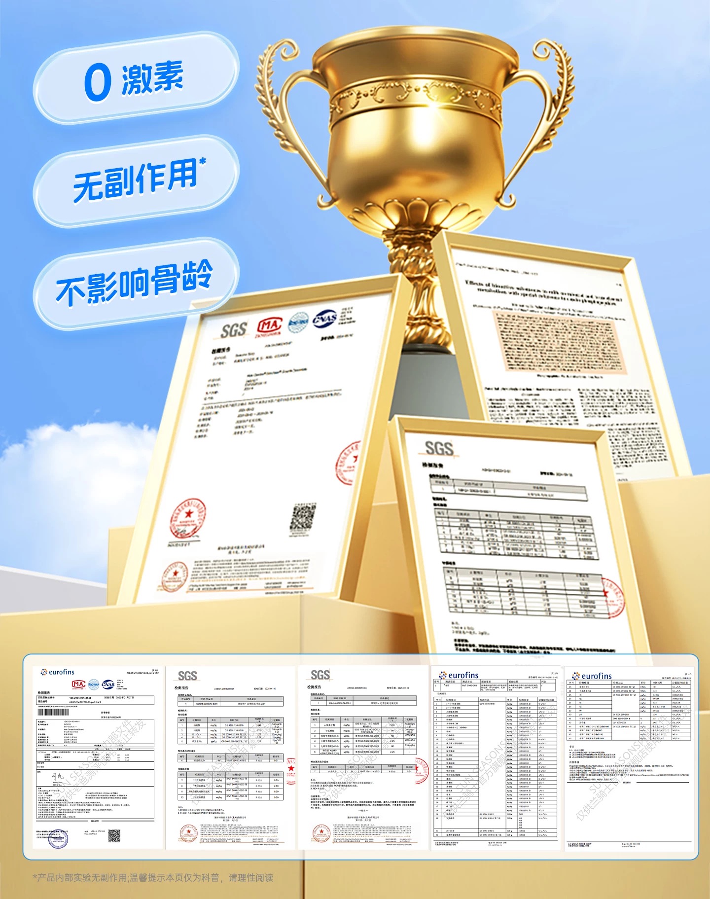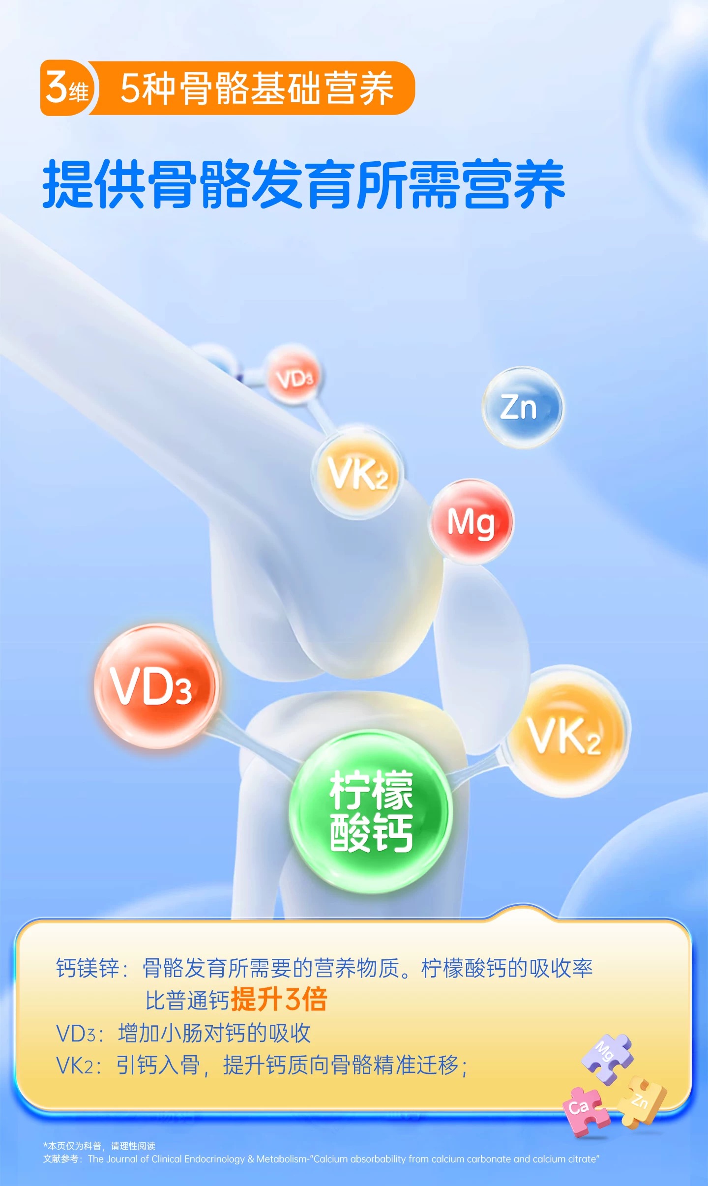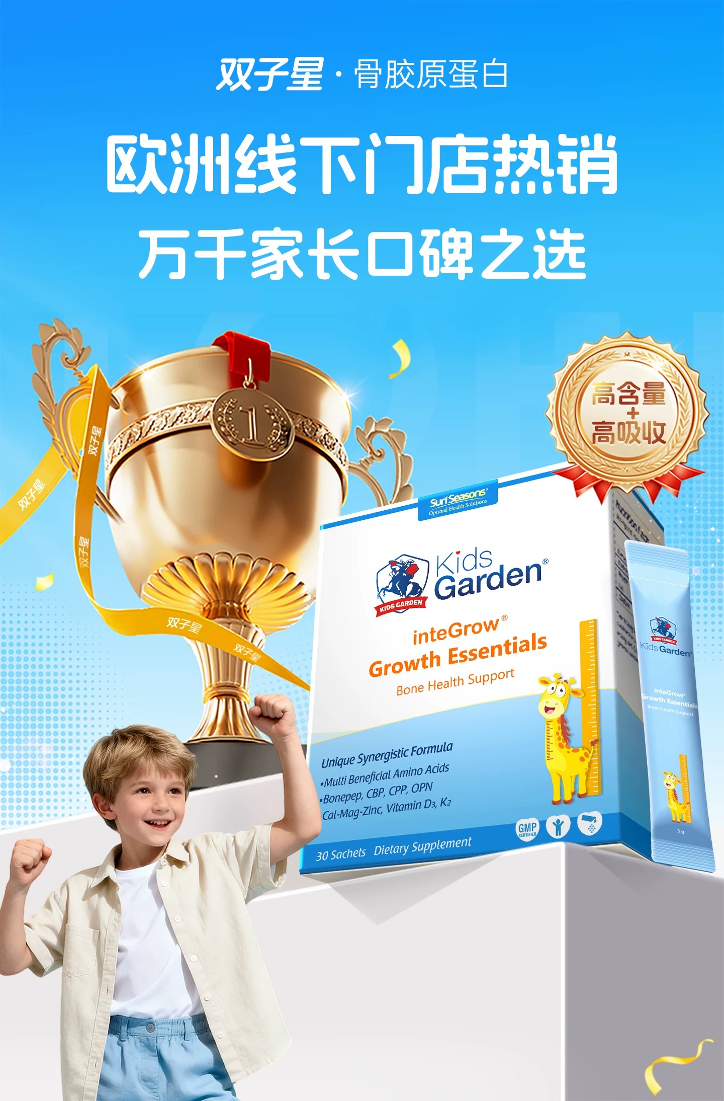 【买三赠一】(临期26年11月到期)兰骑士步步高升小蓝条青少年生长儿童宝宝钙镁锌VD3补钙赖氨酸蓝30条/盒