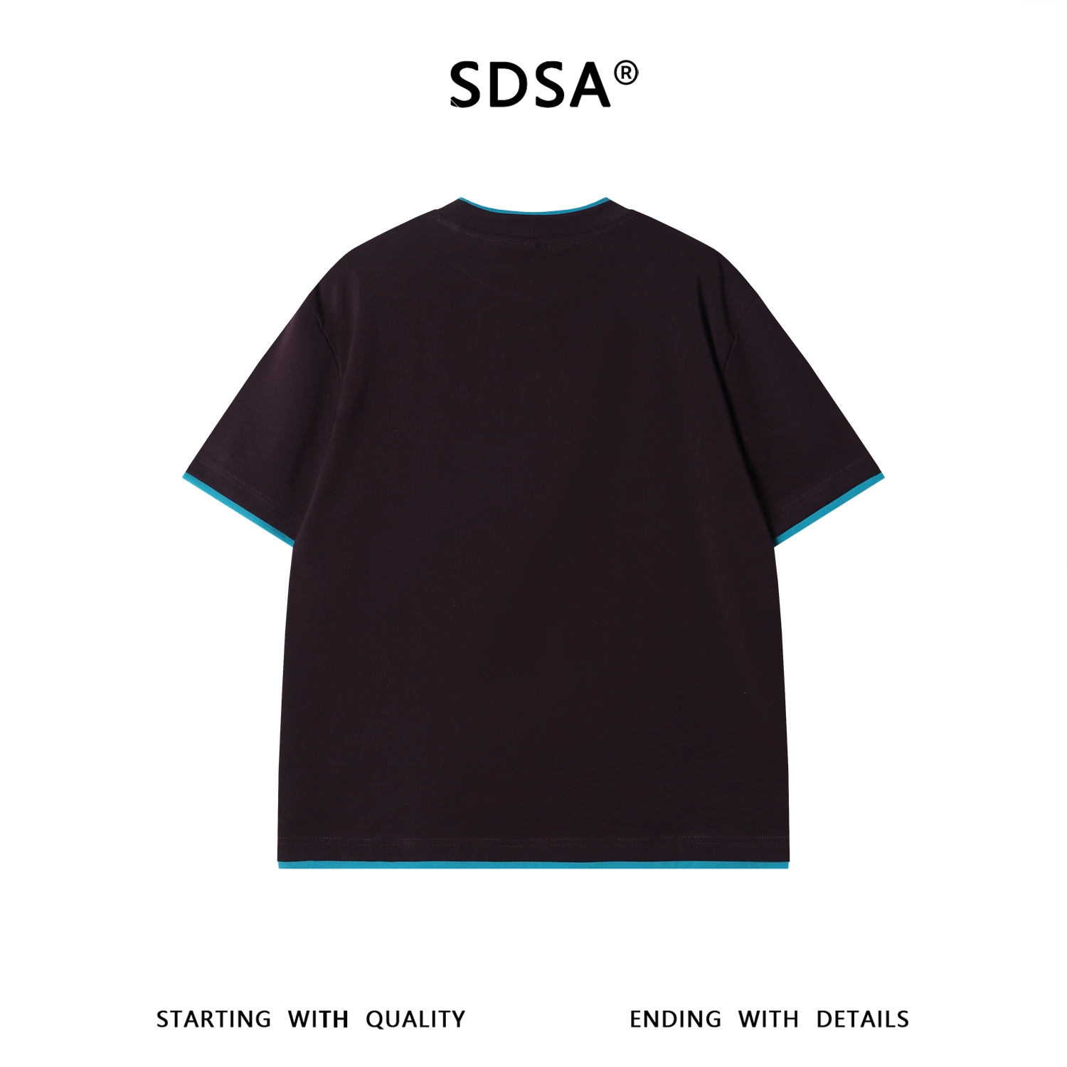 SDSA男装2026新款高贵轻奢潮牌撞色拼接假两件短袖T恤百搭时尚