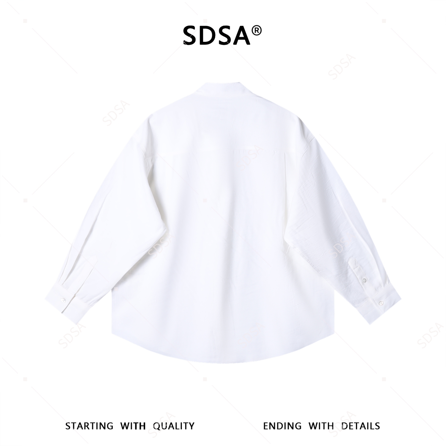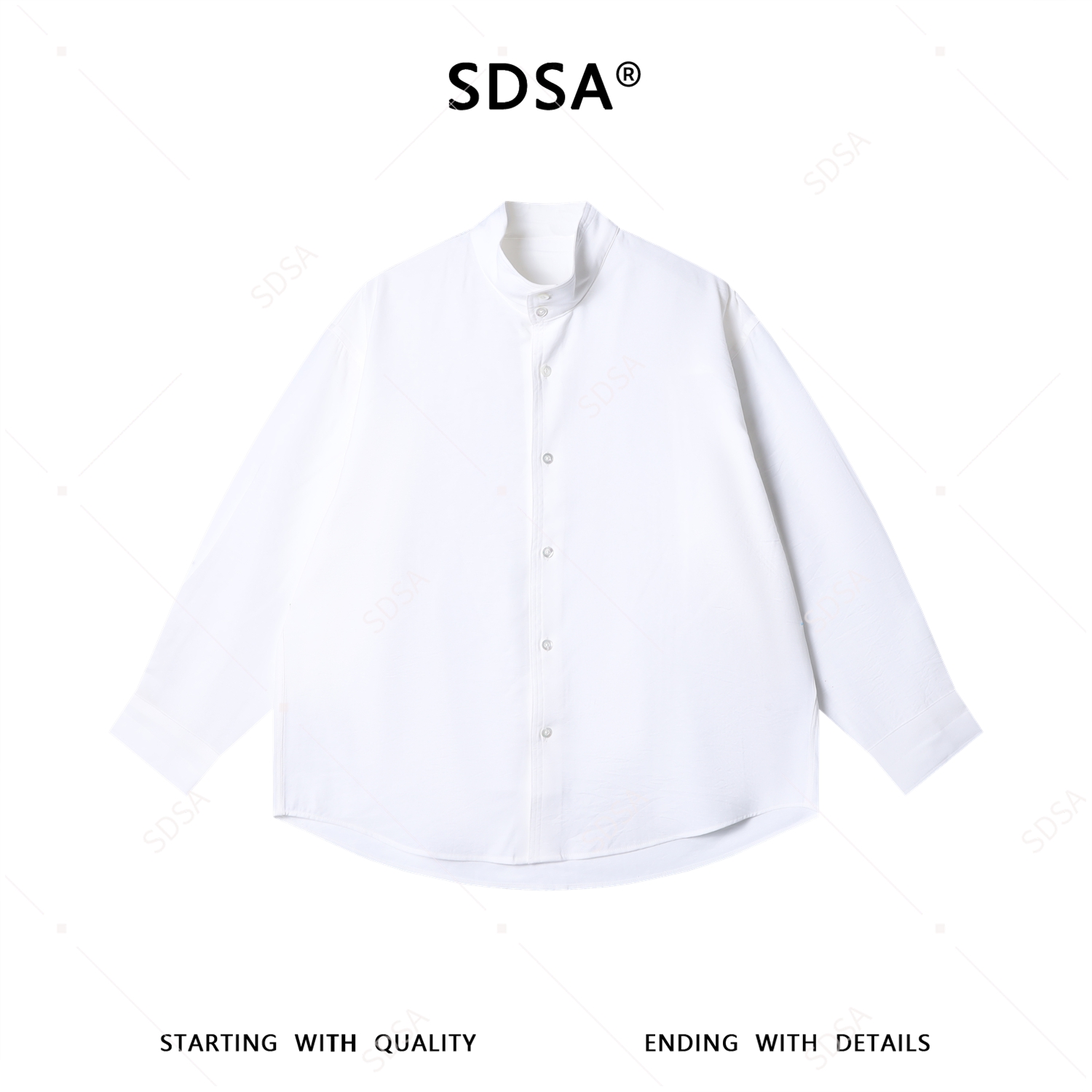 SDSA男装2026新款高贵轻奢新中式复古纯色纽扣立领衬衫百搭简约