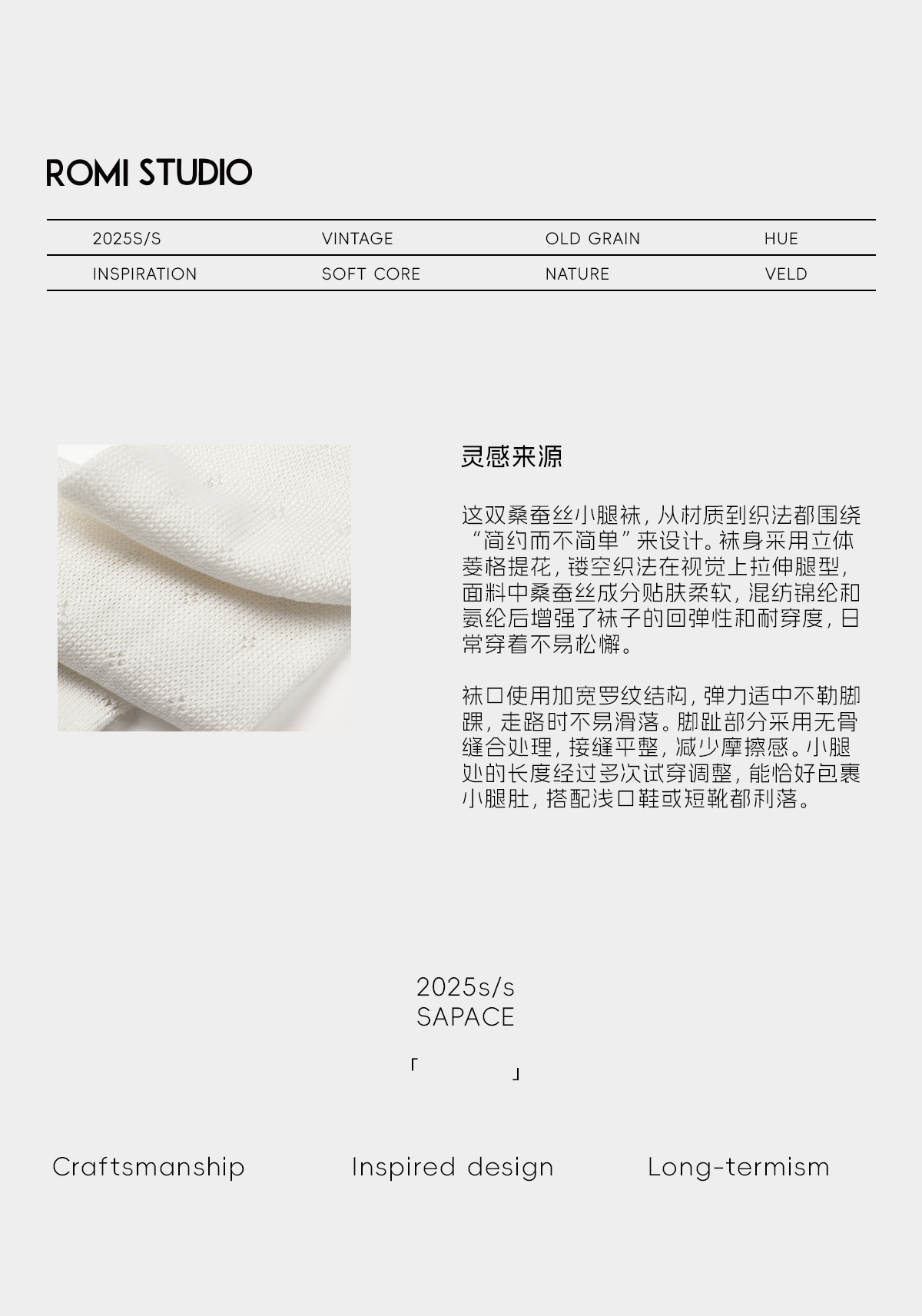 ROMI STUDIO“云朵袜”桑蚕丝混纺针织微弹卷边小腿袜 RWDSP02221