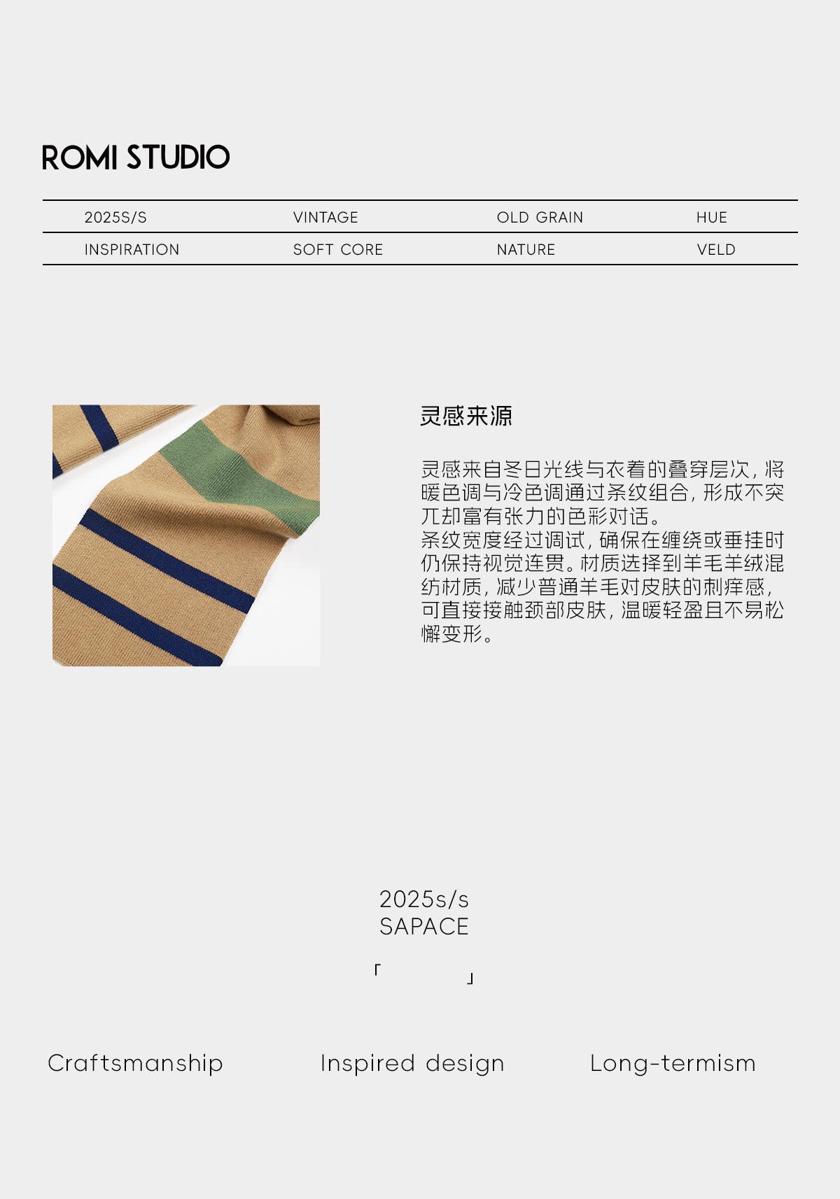 ROMI STUDIO"冬日和煦"羊绒羊毛混纺撞色条纹围巾围脖 RWDSPT1616