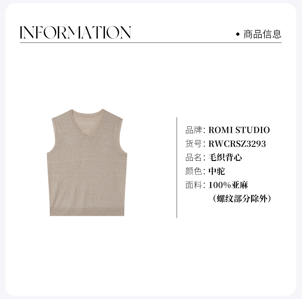 ROMI STUDIO“质感亚麻”100%欧洲进口亚麻V领针织背心 RWCRSZ3293