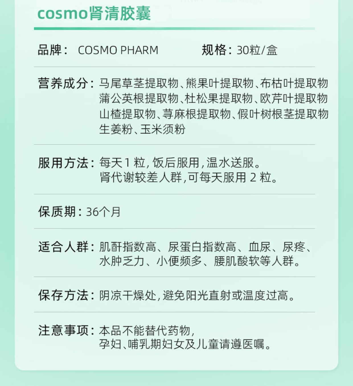 Cosmo肾清胶囊护肾降肾肌酐高尿蛋白iga