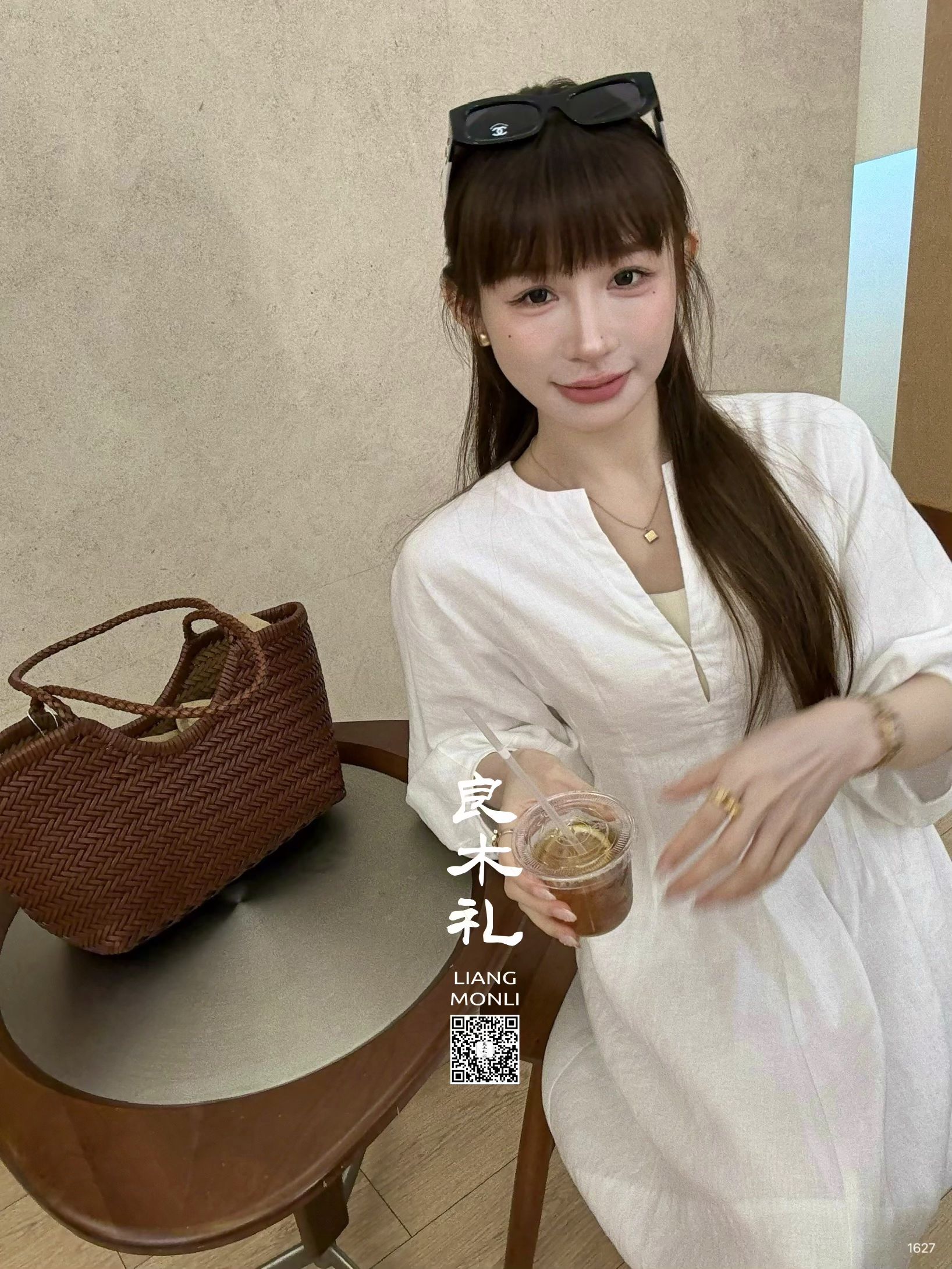 【预售7天】良木礼V领收腰白裙(1627)